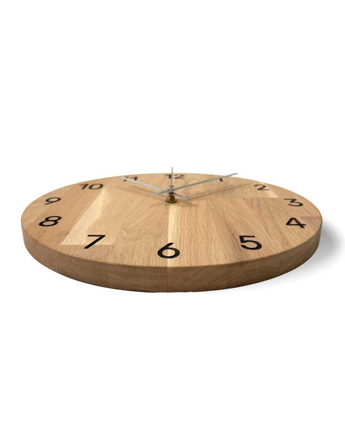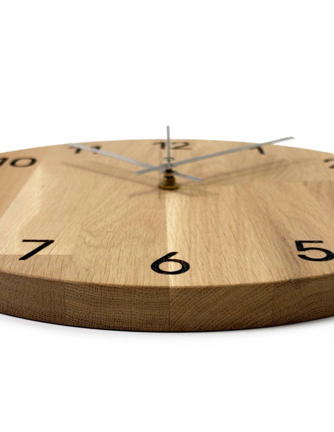 Každé hodiny vznikajú z masívnych dubových panelov, ktoré najprv presne vyrežeme do požadovaného tvaru a veľkosti pomocou CNC technológie.