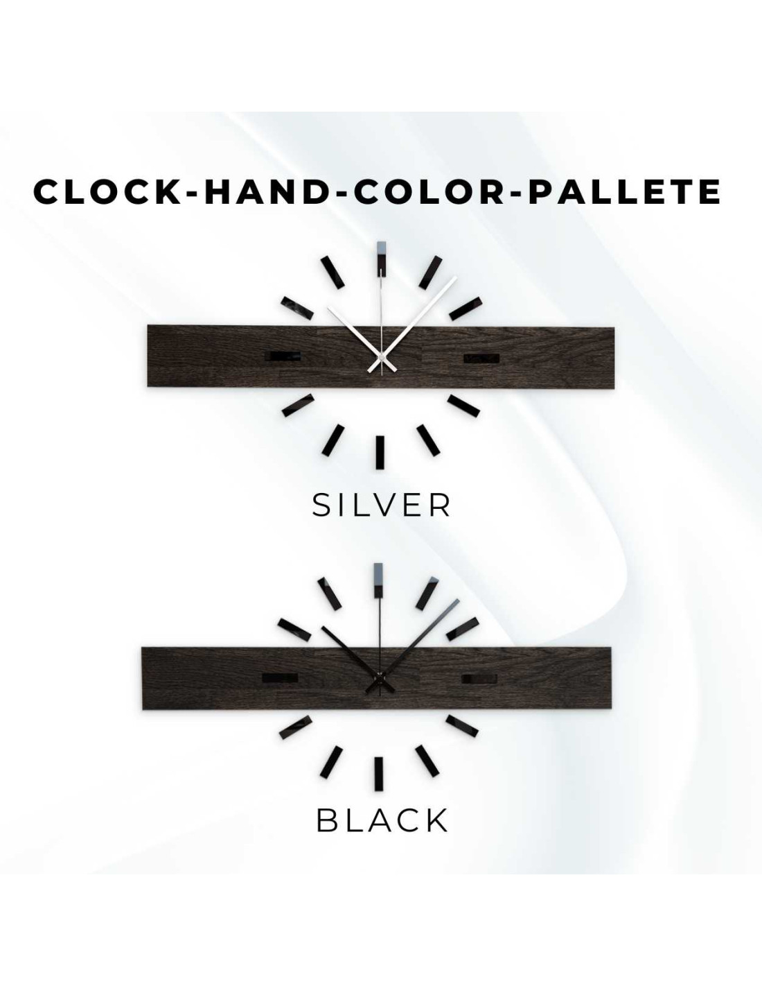 • Ručičky hodín: kovové, strieborné/čierne – minútová ručička: 11,5 cm (4,53 palca), hodinová ručička: 15,0 cm (5,91 palca), sekundová ručička: 10,09 cm (3,97 palca)