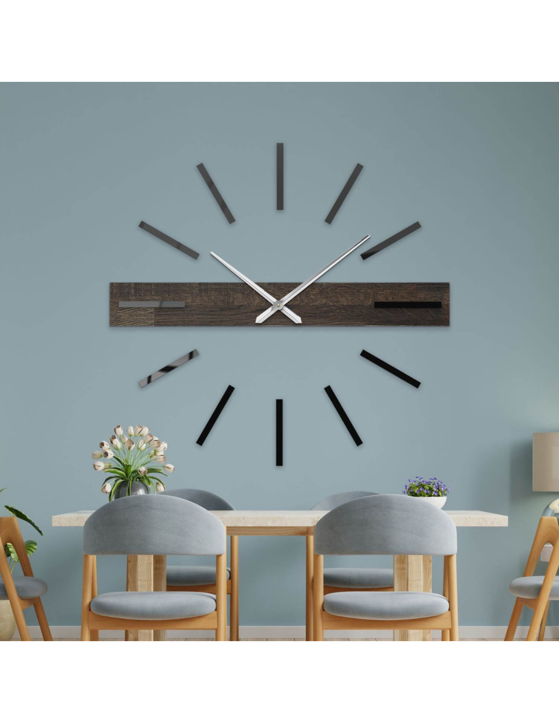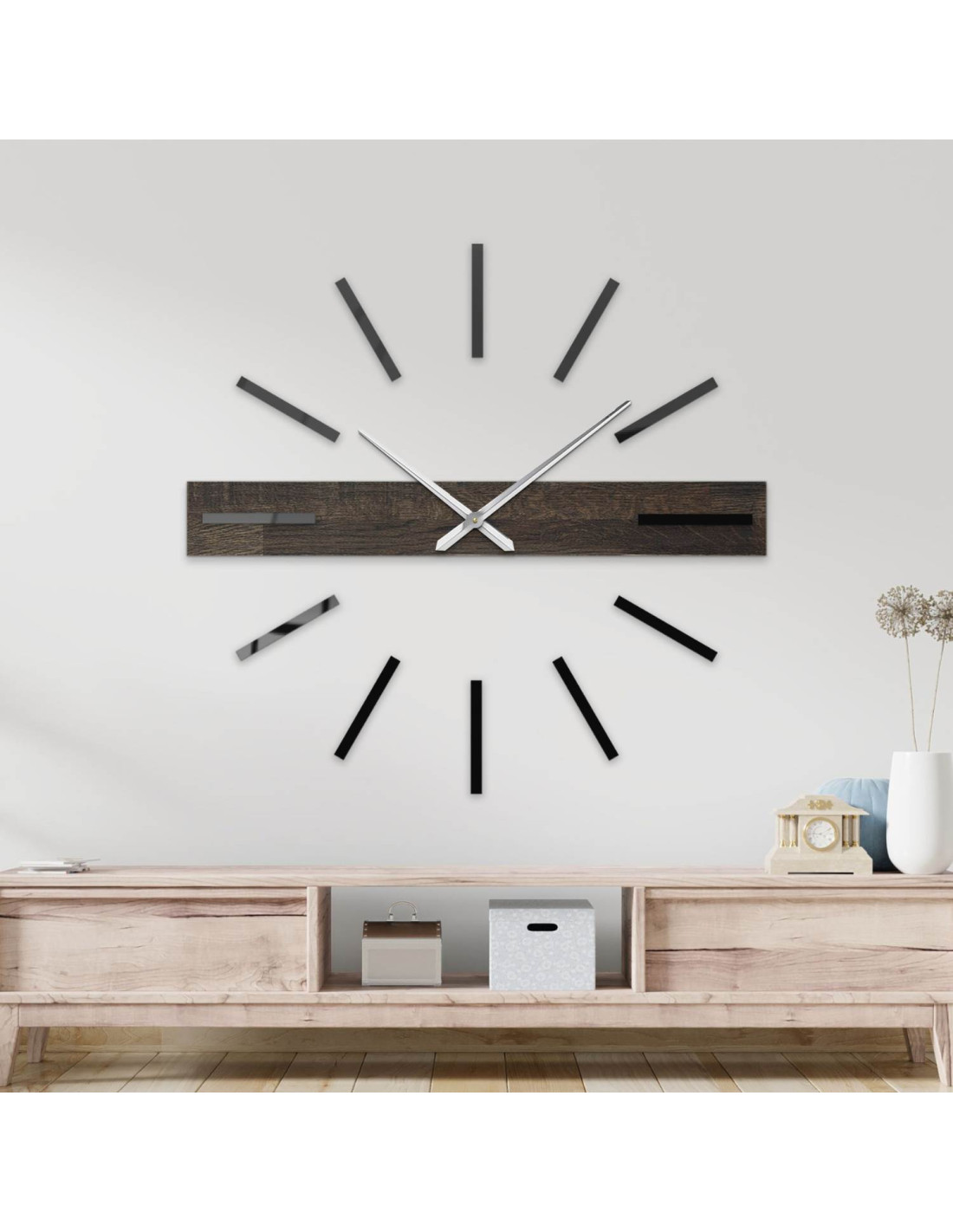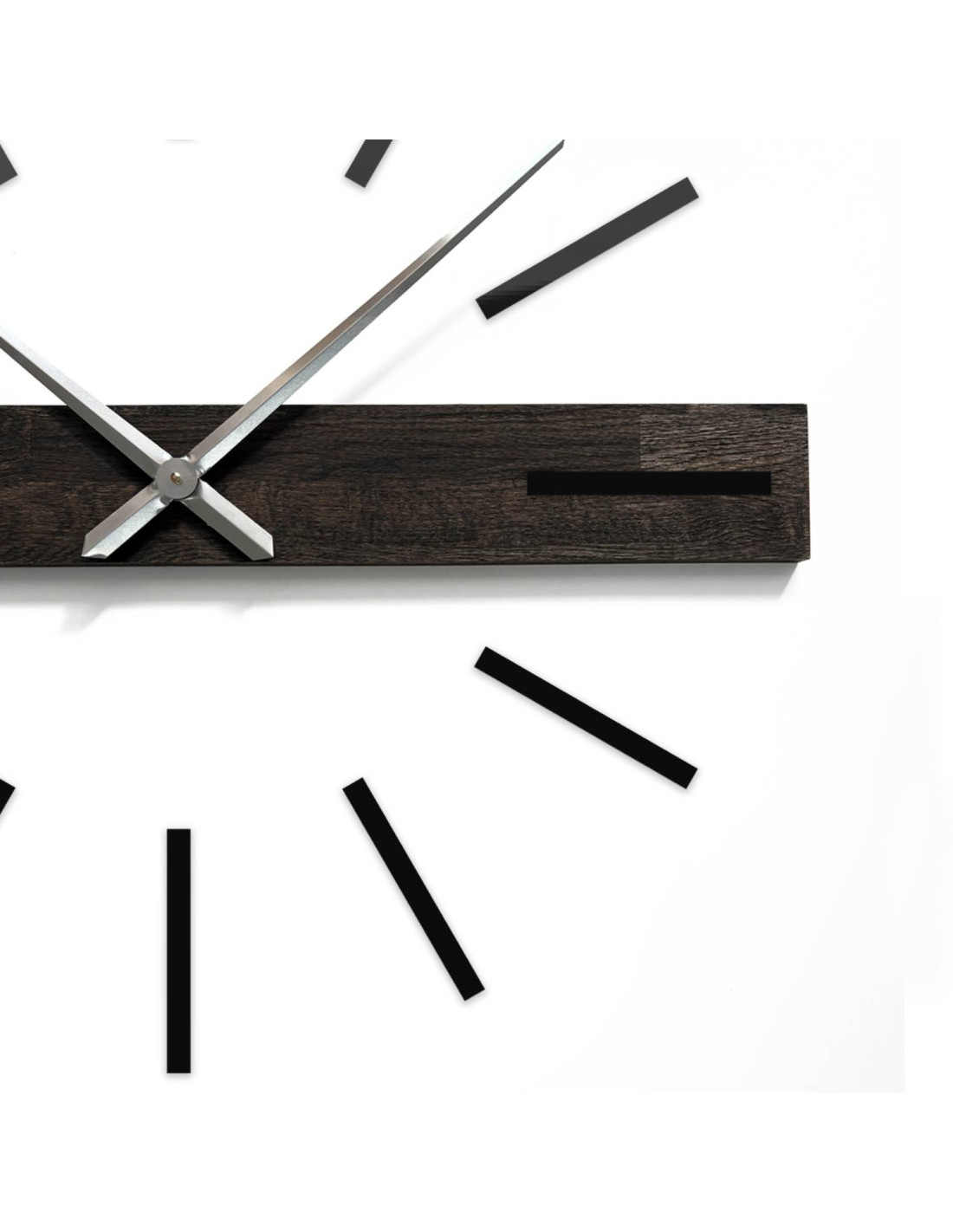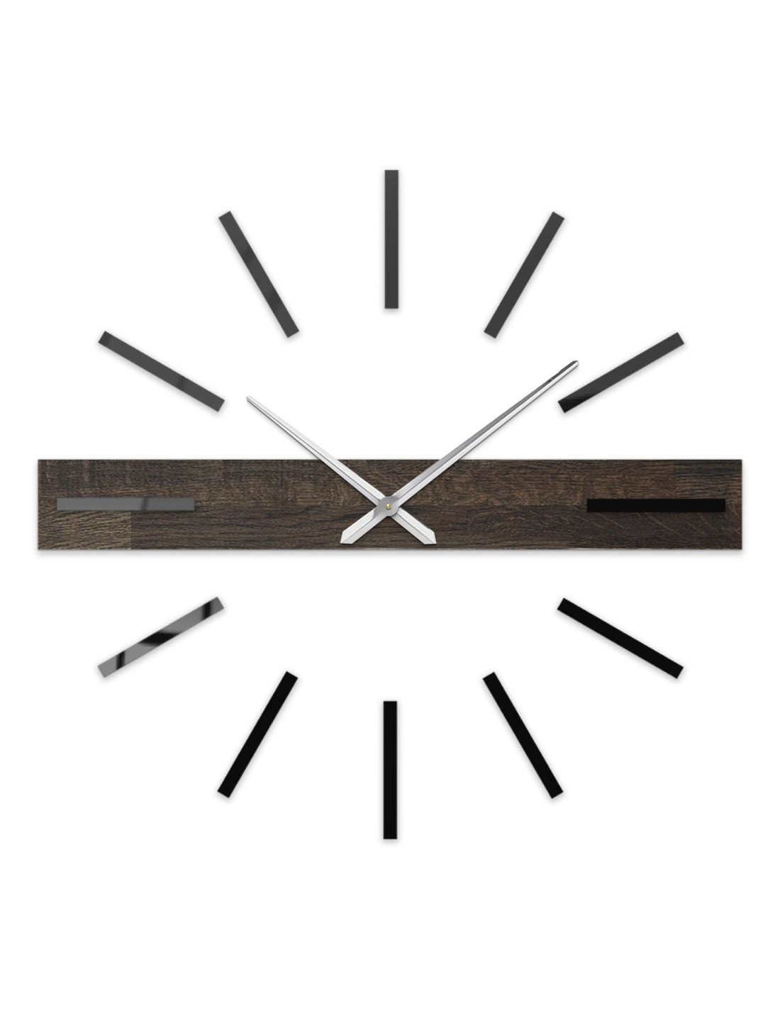 Prírodný a elegantný dizajn – kombinácia dubového dreva, lesklých čísiel z čierneho plexiskla a kovových ručičiek vytvára moderný a nadčasový vzhľad.
