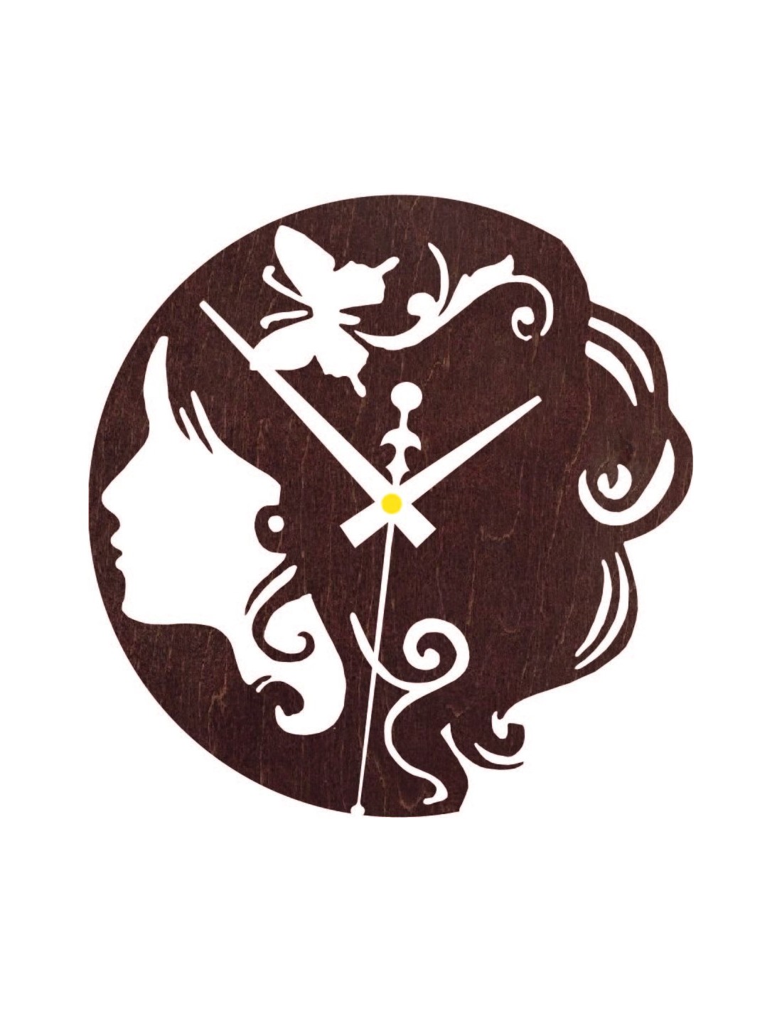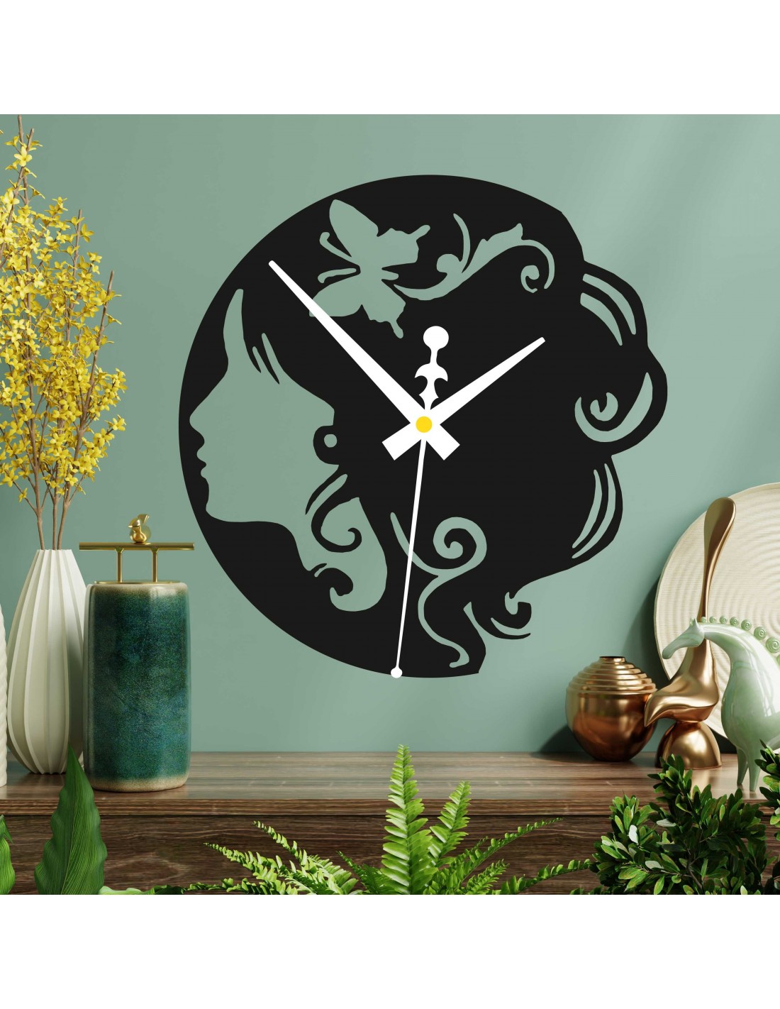 Drevené hodiny - dáma s motýľom vo vlasoch čierne aj farebné | SENTOP PR0399