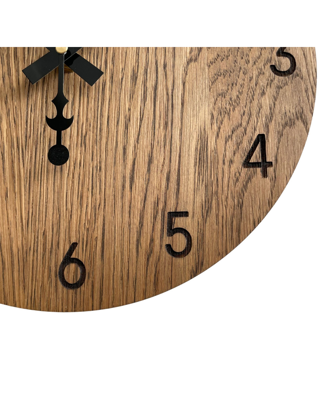 Štýlové drevené hodiny do obývačky, ktoré spájajú precízne spracovanie, tichý chod a prírodnú krásu dubového dreva.