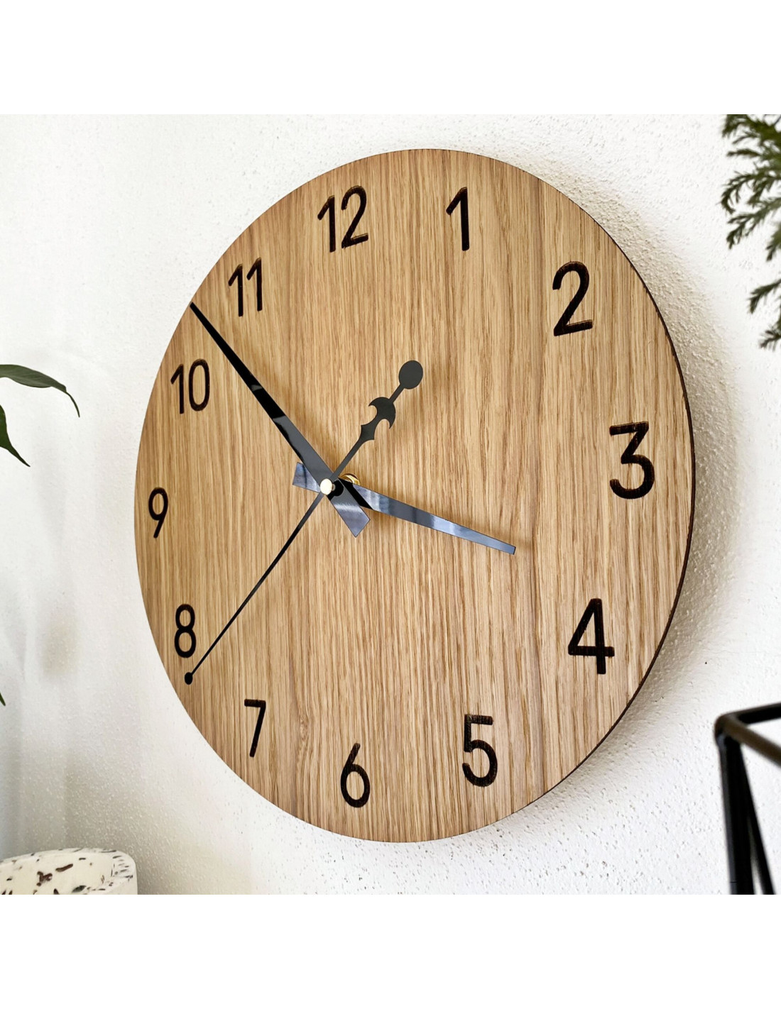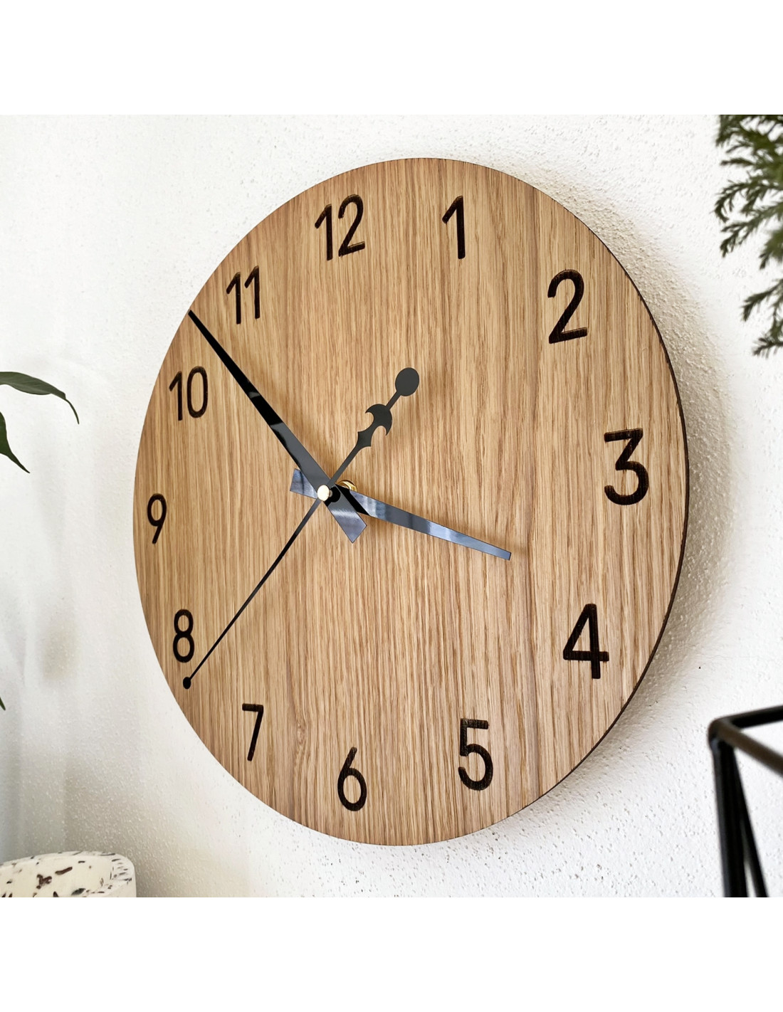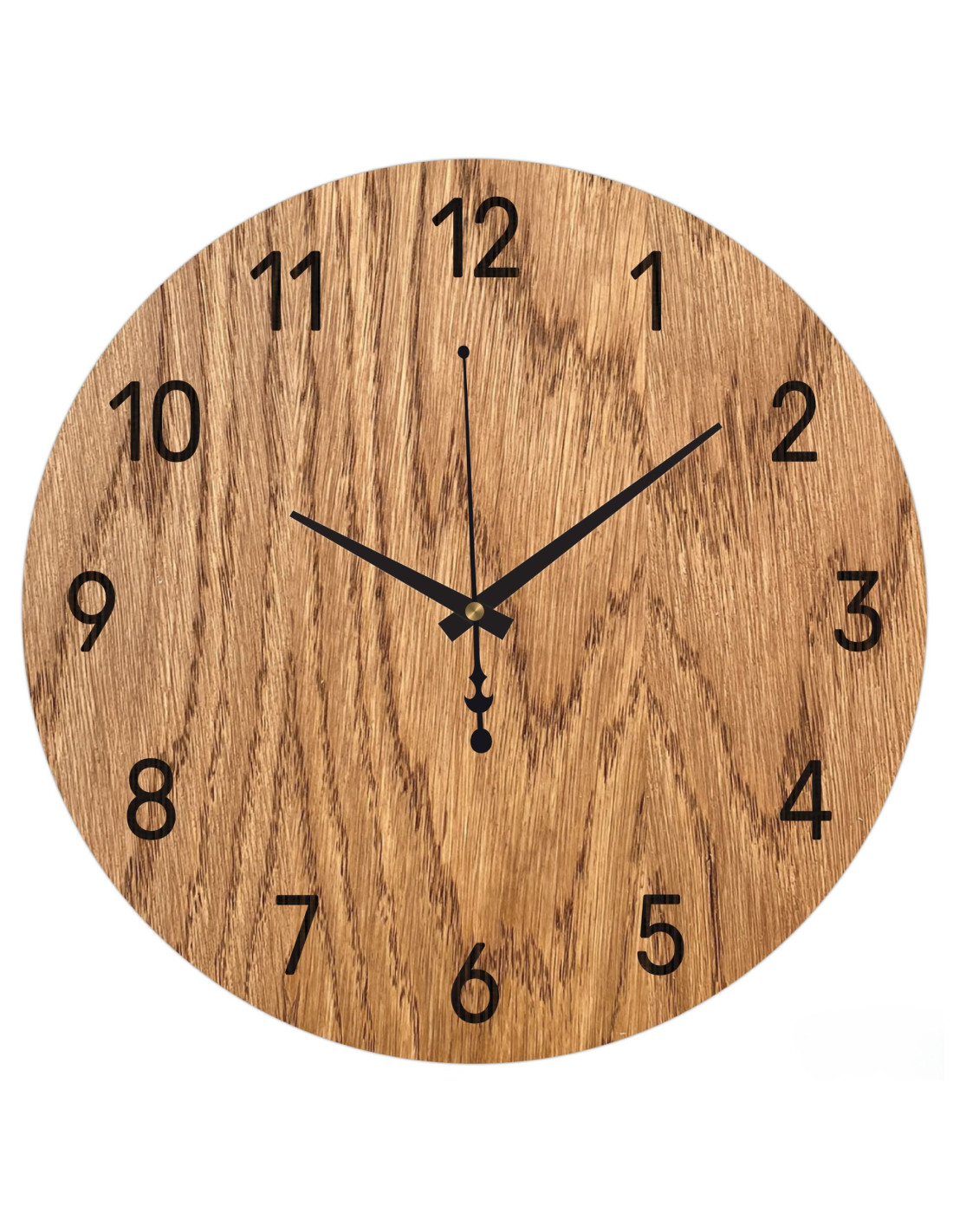 Prírodná krása dubového dreva v spojení s elegantnými čiernymi ručičkami vytvára decentný a moderný vzhľad. Hodiny dokonale ladia s rustikálnymi aj minimalistickými interiérmi a prinášajú do priestoru harmonický vizuálny prvok.