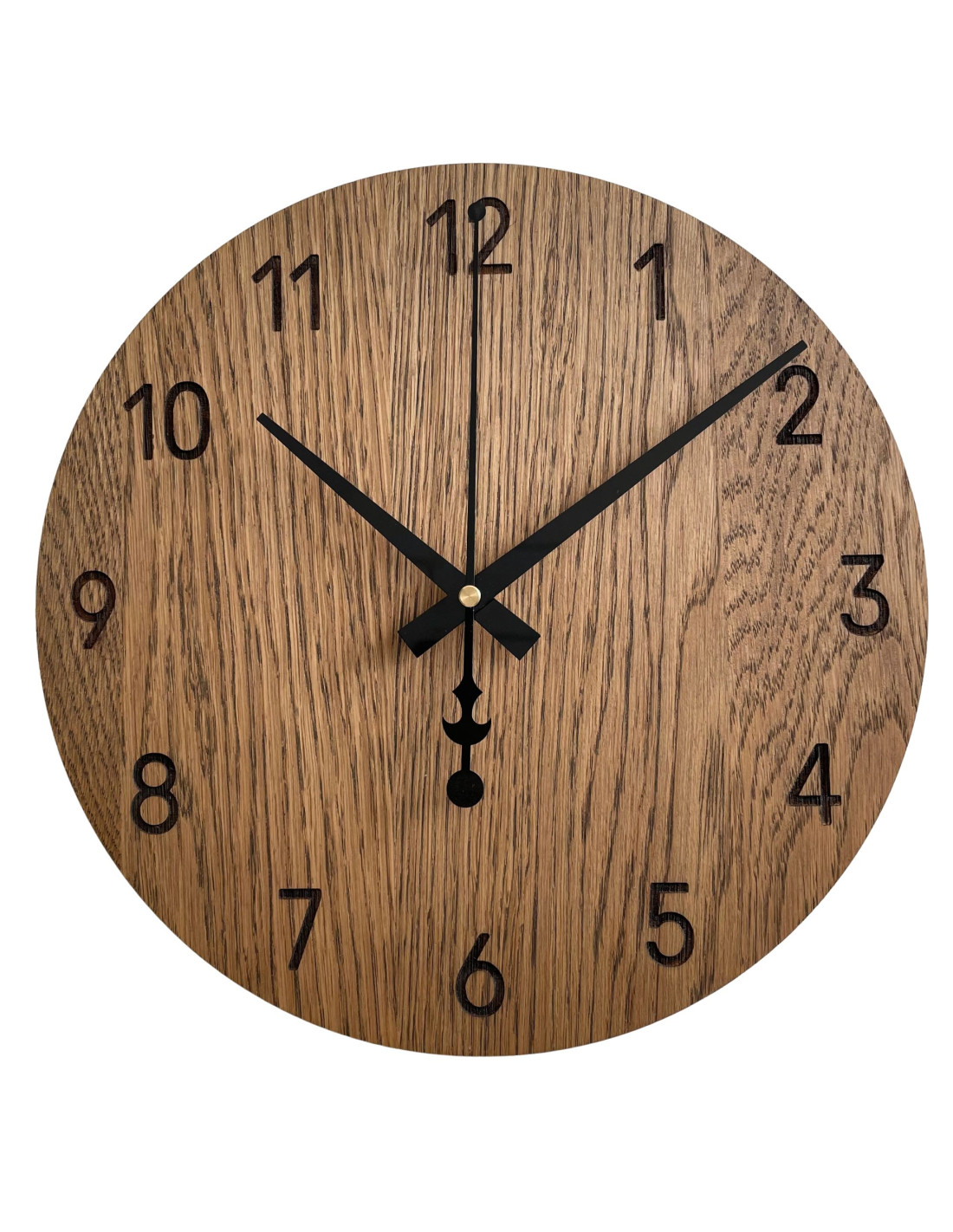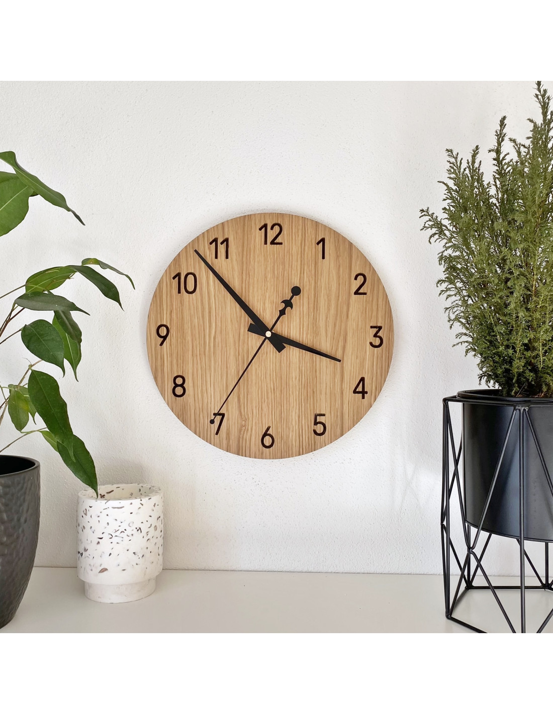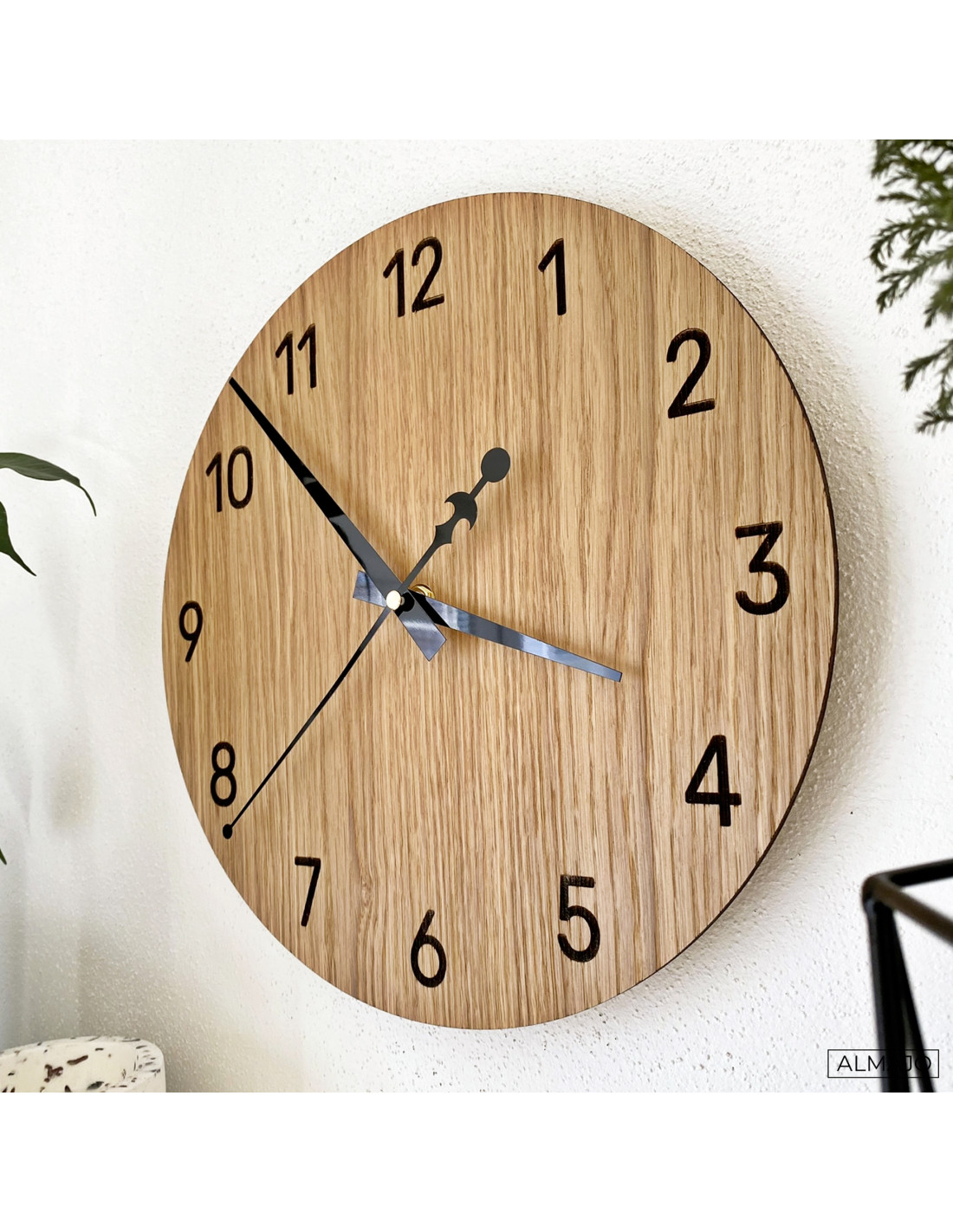 Prírodná krása dubového dreva v spojení s elegantnými čiernymi ručičkami vytvára decentný a moderný vzhľad. Hodiny dokonale ladia s rustikálnymi aj minimalistickými interiérmi a prinášajú do priestoru harmonický vizuálny prvok.