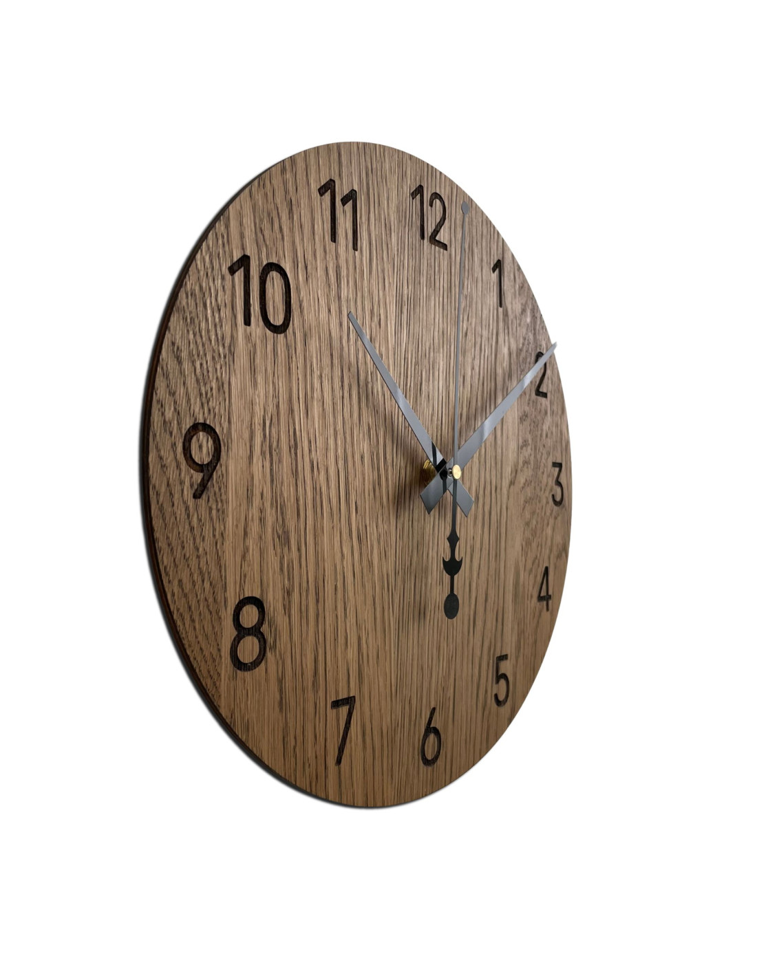 Moderné nástenné hodiny z pravého dubového dreva prinášajú spojenie remeselnej kvality, ticha a nadčasovej estetiky.