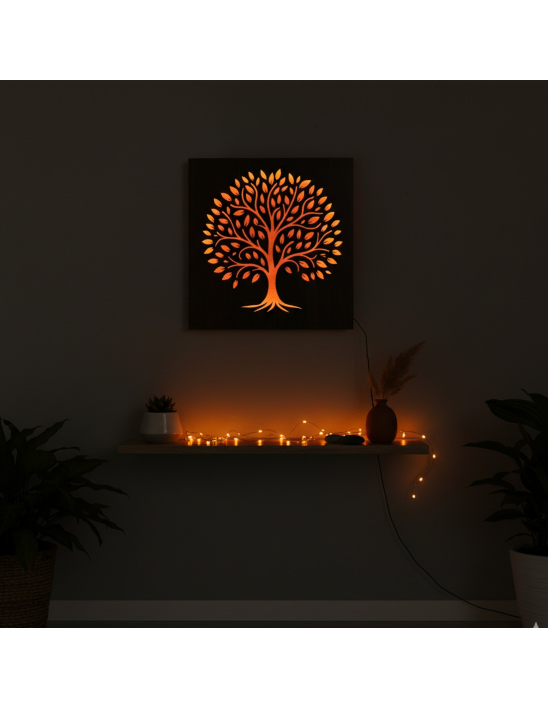 Tento drevený obraz s jemným, neoslňujúcim LED svetlom vytvára útulnú a relaxačnú atmosféru a zároveň slúži ako štýlový a vizuálne pôsobivý prvok.