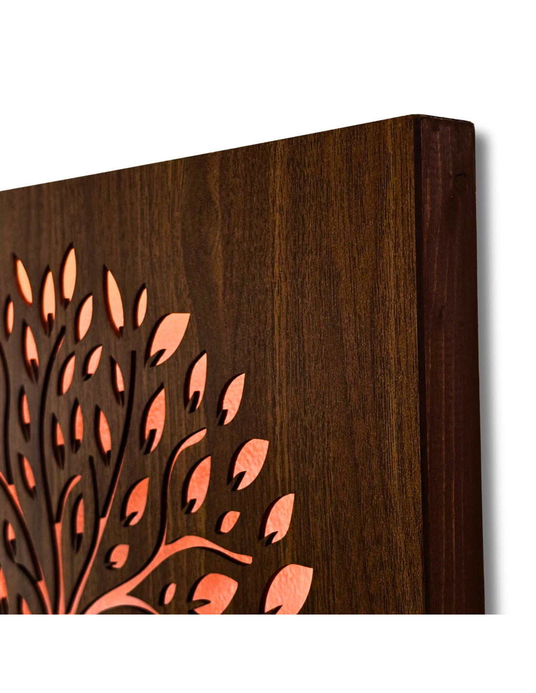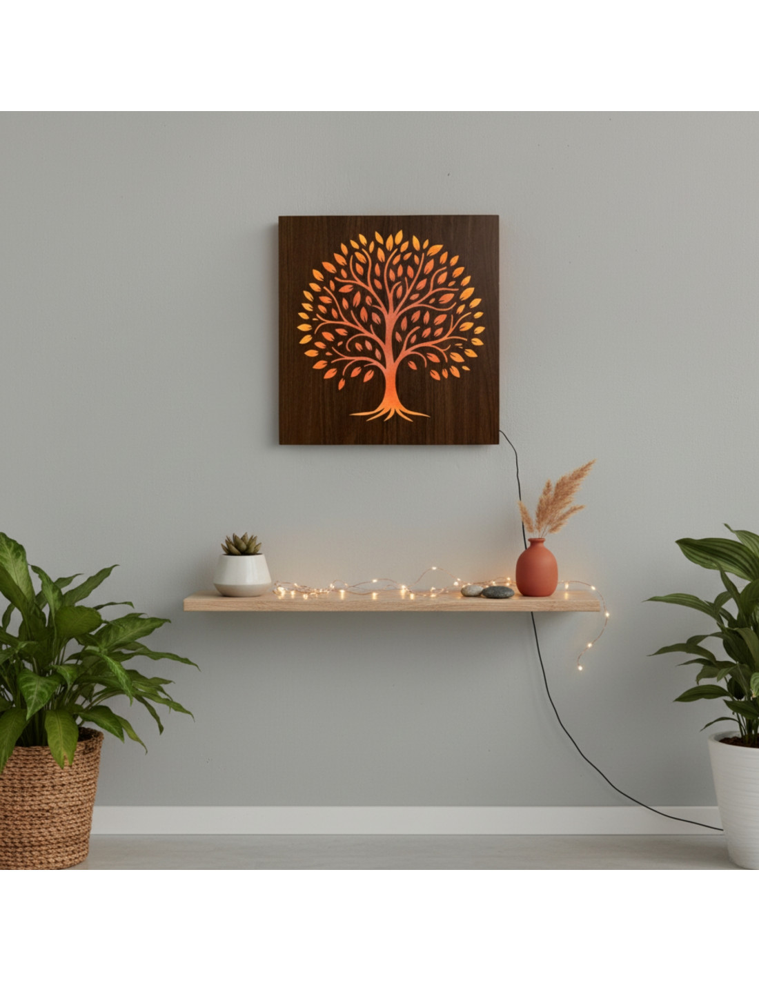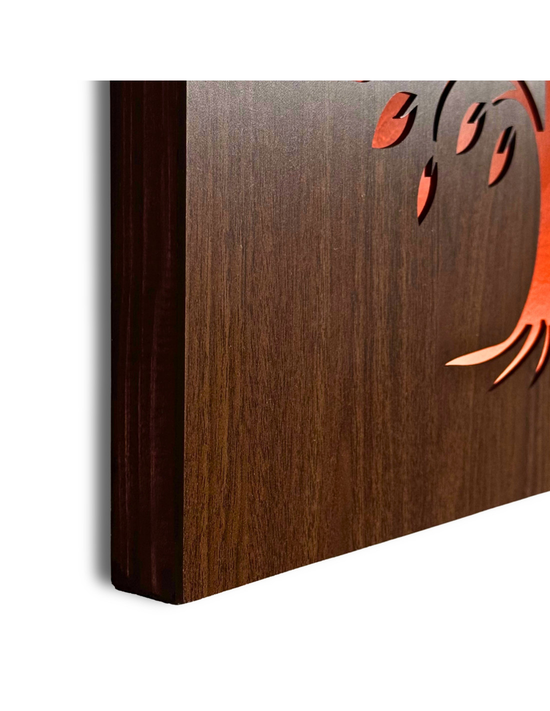 Tento drevený LED svetelný obraz spája prírodný dizajn s modernou technológiou a vytvára pôsobivý svetelný efekt, ktorý upúta pozornosť a zútulní každý interiér.