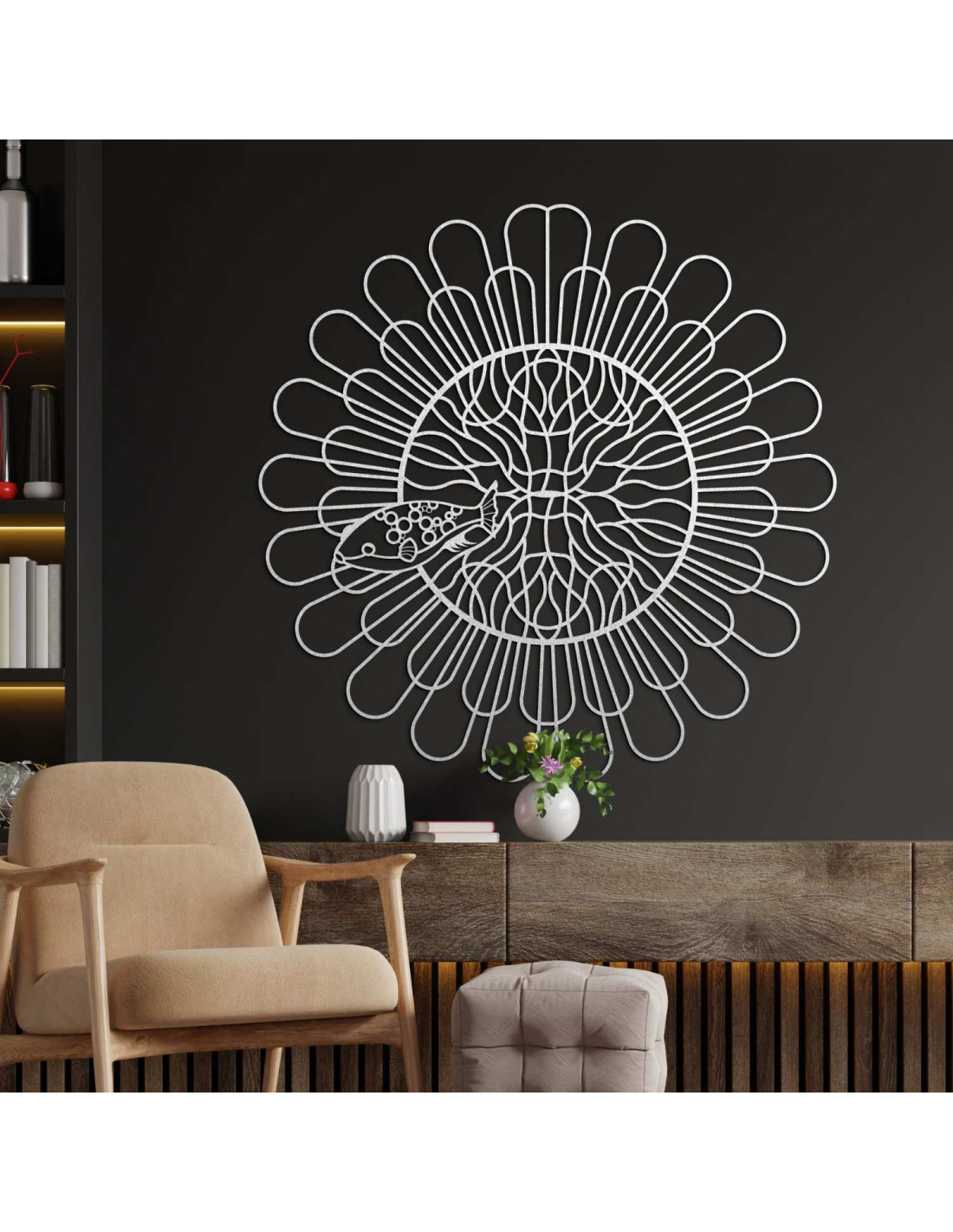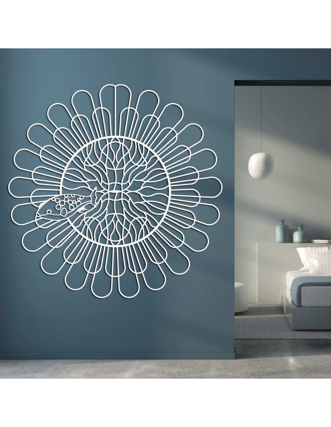 Detailný laserový výrez mandaly s rybou ako moderná 3D dekorácia