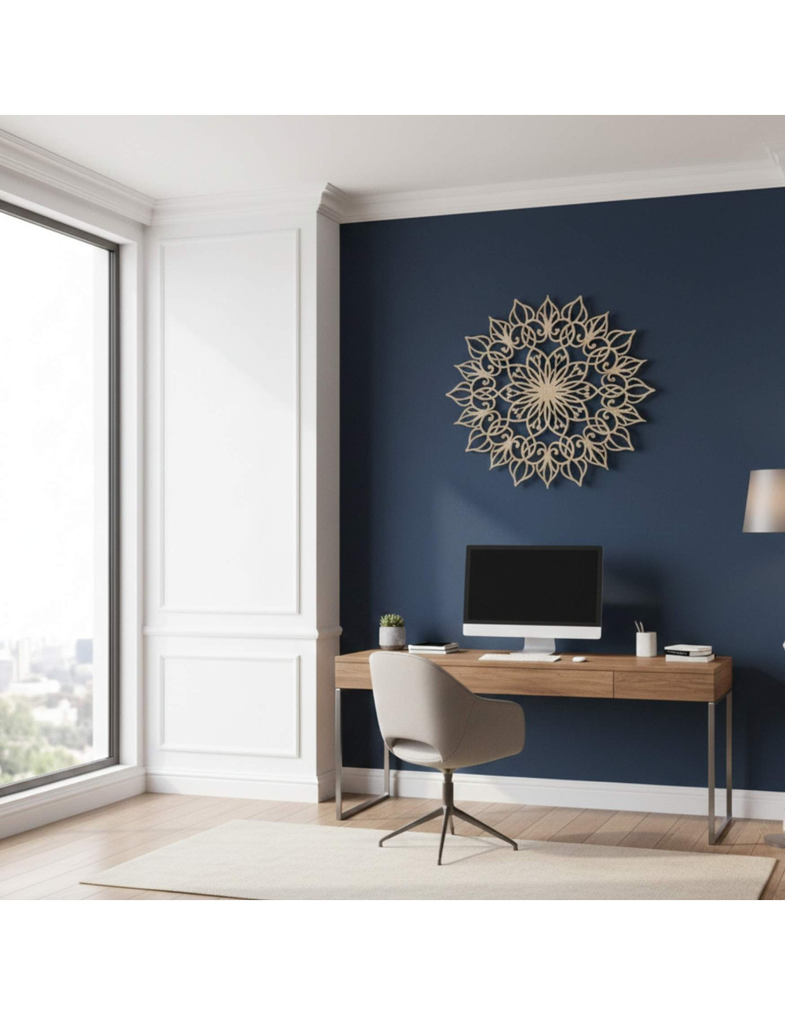 Mandala pôsobí harmonicky a vytvára pokojnú, vyváženú atmosféru, ideálnu pre moderný aj minimalistický priestor.