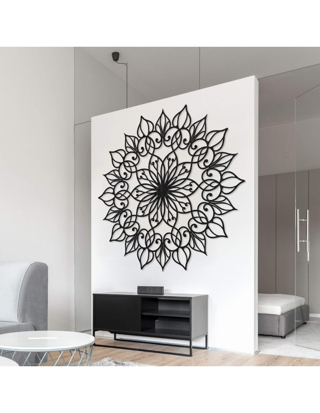 Mandala pôsobí harmonicky a vytvára pokojnú, vyváženú atmosféru, ideálnu pre moderný aj minimalistický priestor.