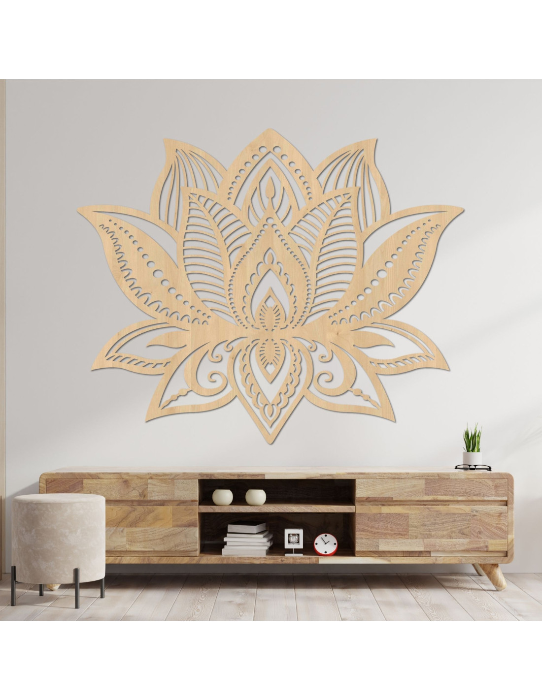 Drevená dekorácia lotosového kvetu spája estetickú eleganciu s duchovnou hĺbkou.