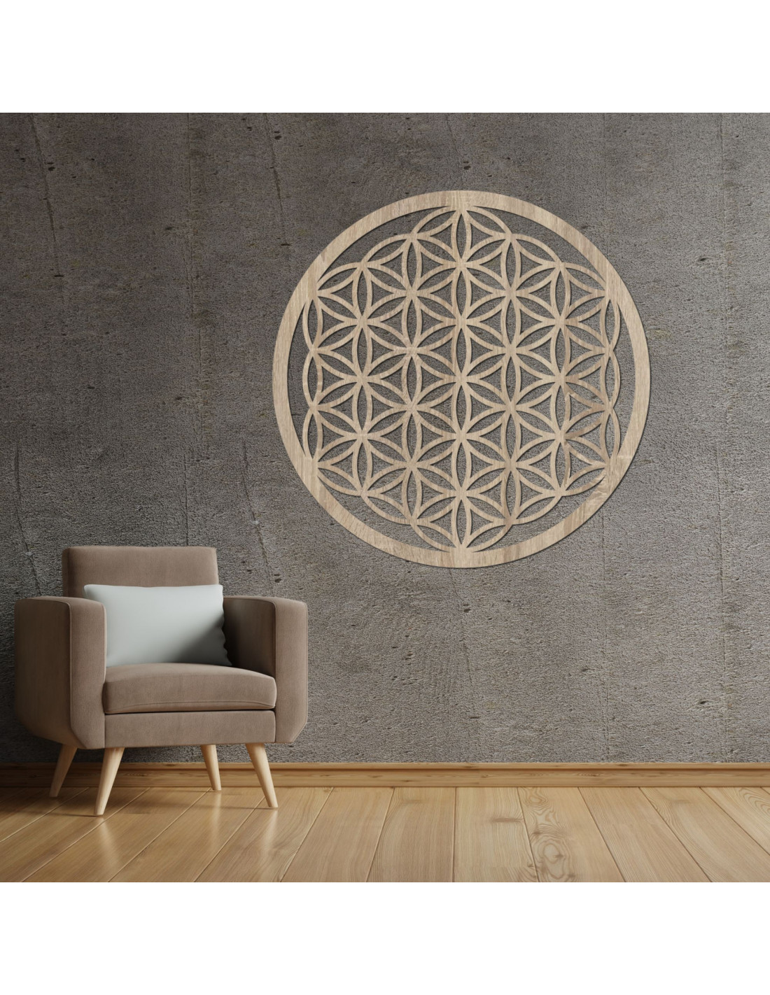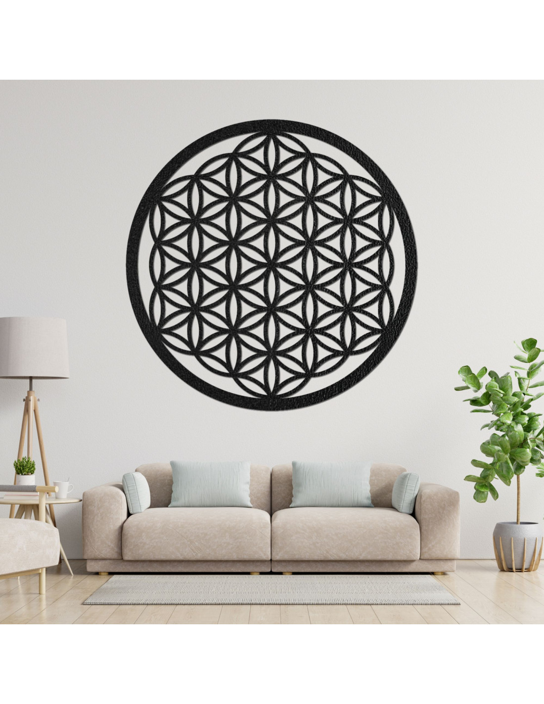 Dizajn tejto mandaly je inšpirovaný prastarým symbolom života, ktorý sa vyskytuje v rôznych kultúrach a predstavuje základné princípy vesmíru a života a verí sa, že má schopnosť zlepšovať energiu priestoru a podporovať vnútorný pokoj.Kvet života je symbol, ktorý predstavuje harmóniu, jednotu a prepojenosť všetkého, čo nás obklopuje.
