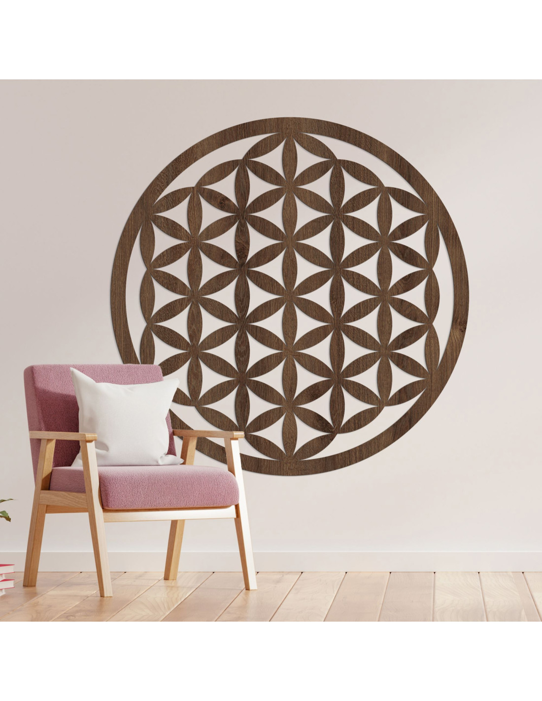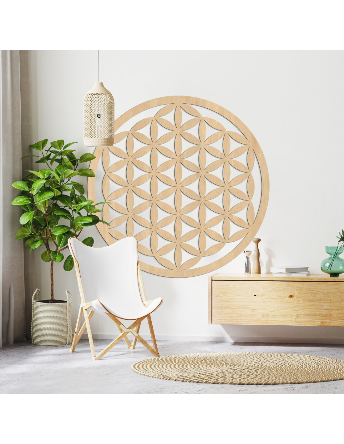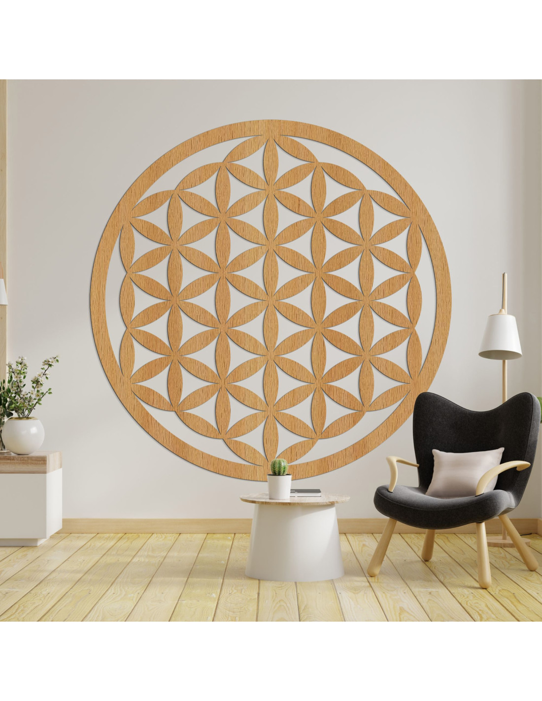 Drevená dekorácia s motívom kvetu života oživí váš priestor symbolom jednoty, harmónie a nekonečnej energie.