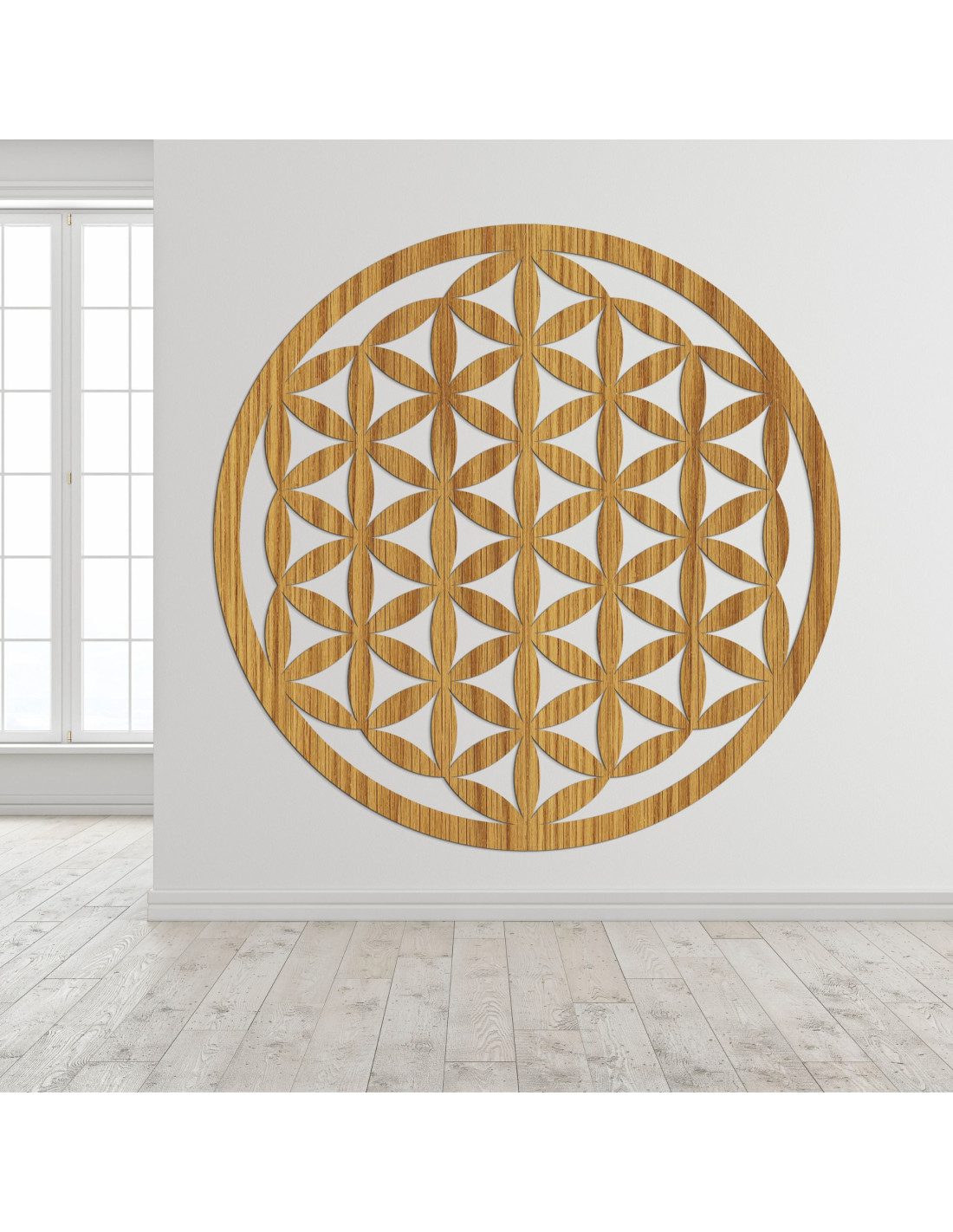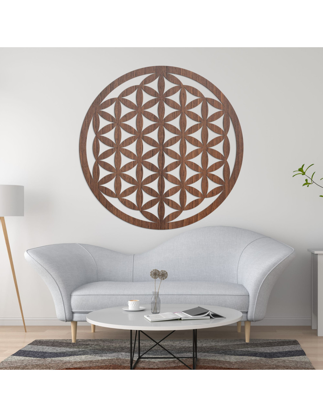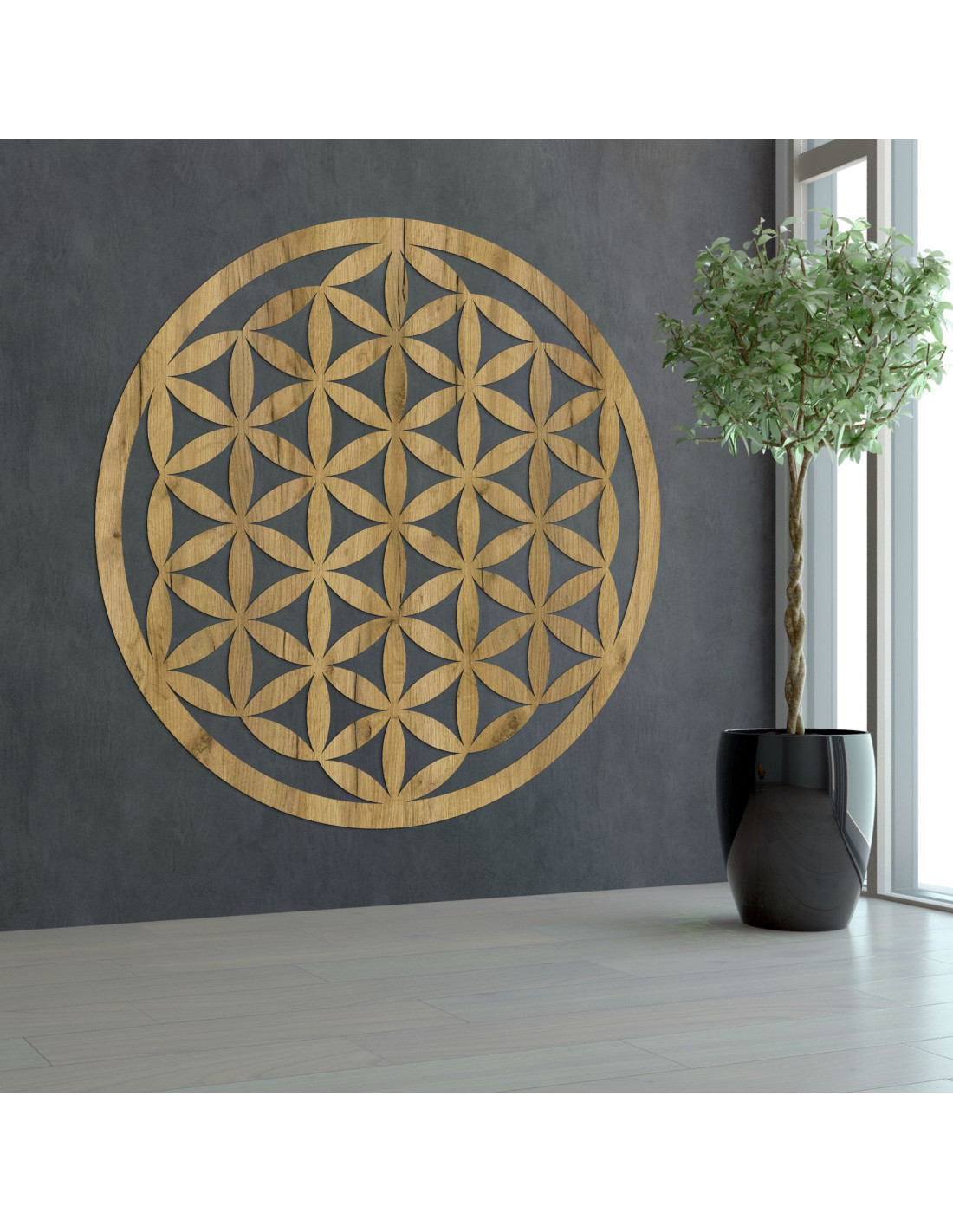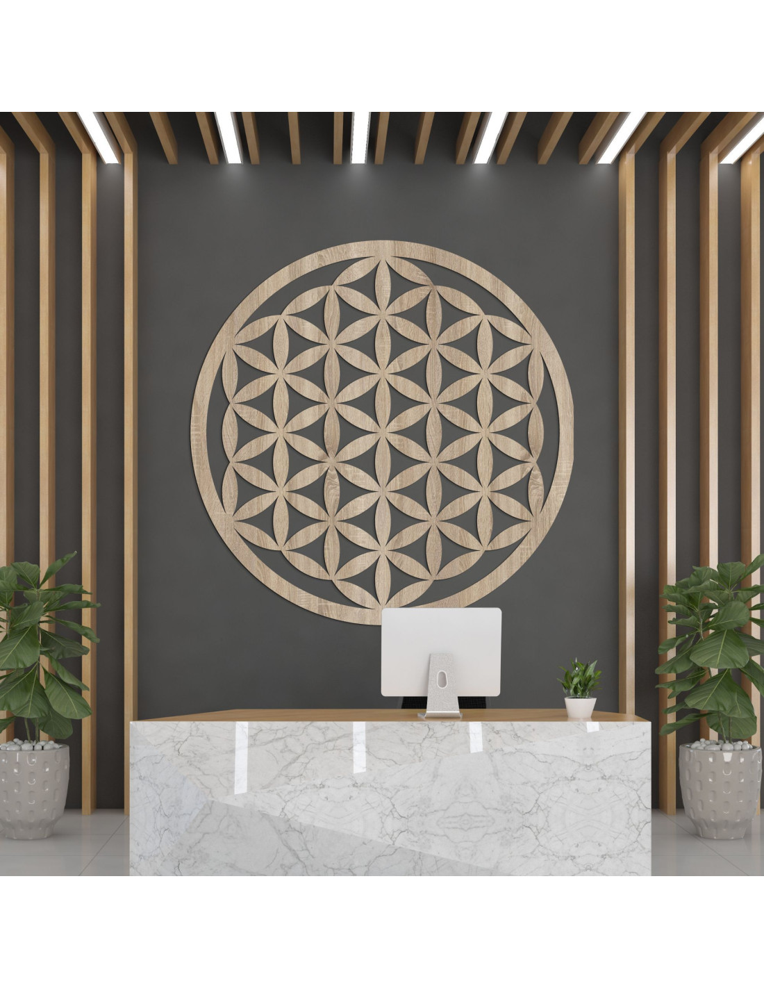 Drevená dekorácia s motívom kvetu života oživí váš priestor symbolom jednoty, harmónie a nekonečnej energie.