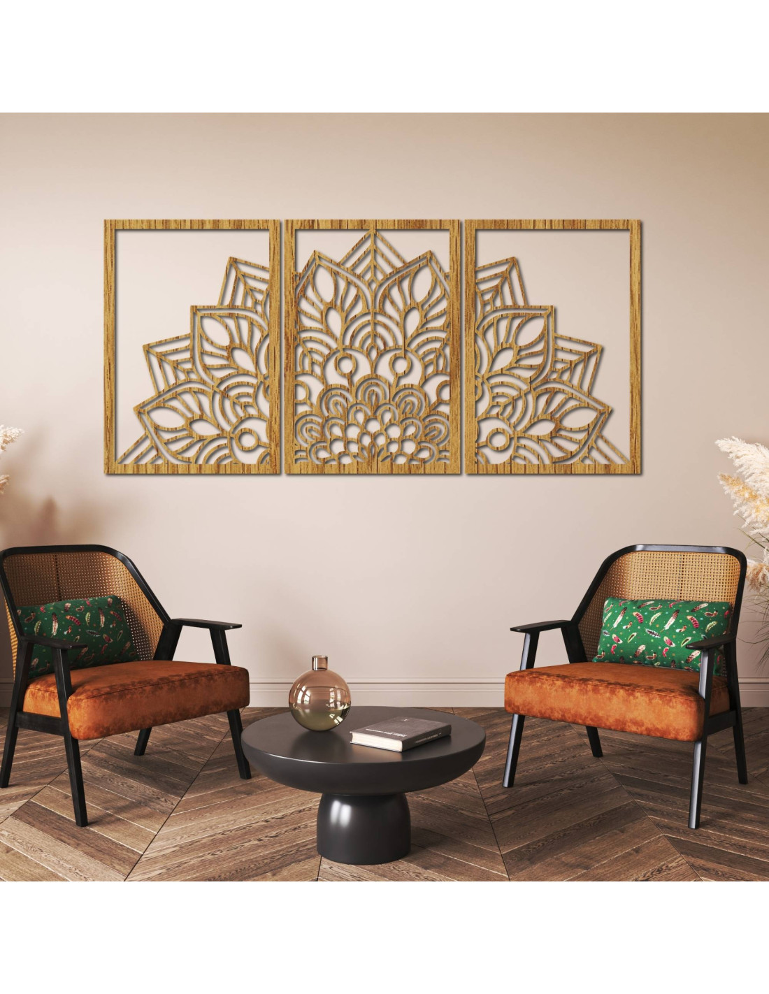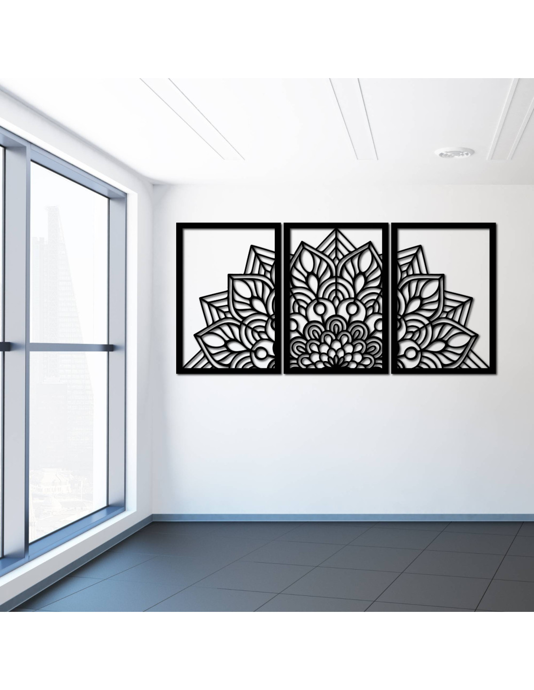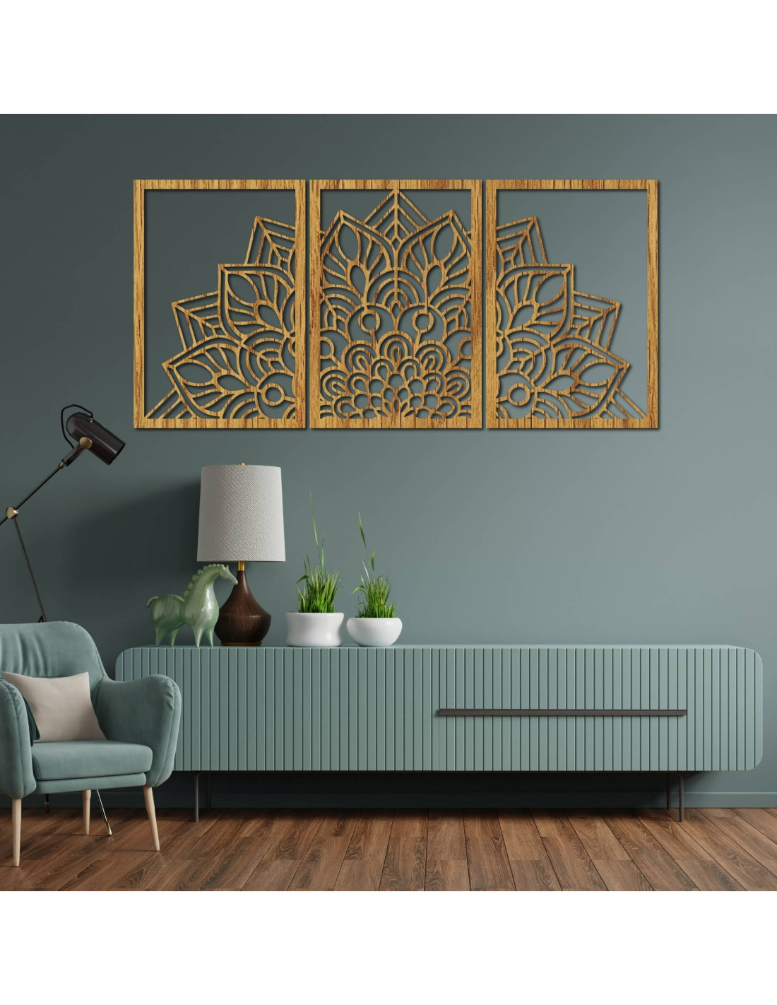 Elegantná 3-dielna mandala kvetov do vašej obývačky – moderný dizajn
