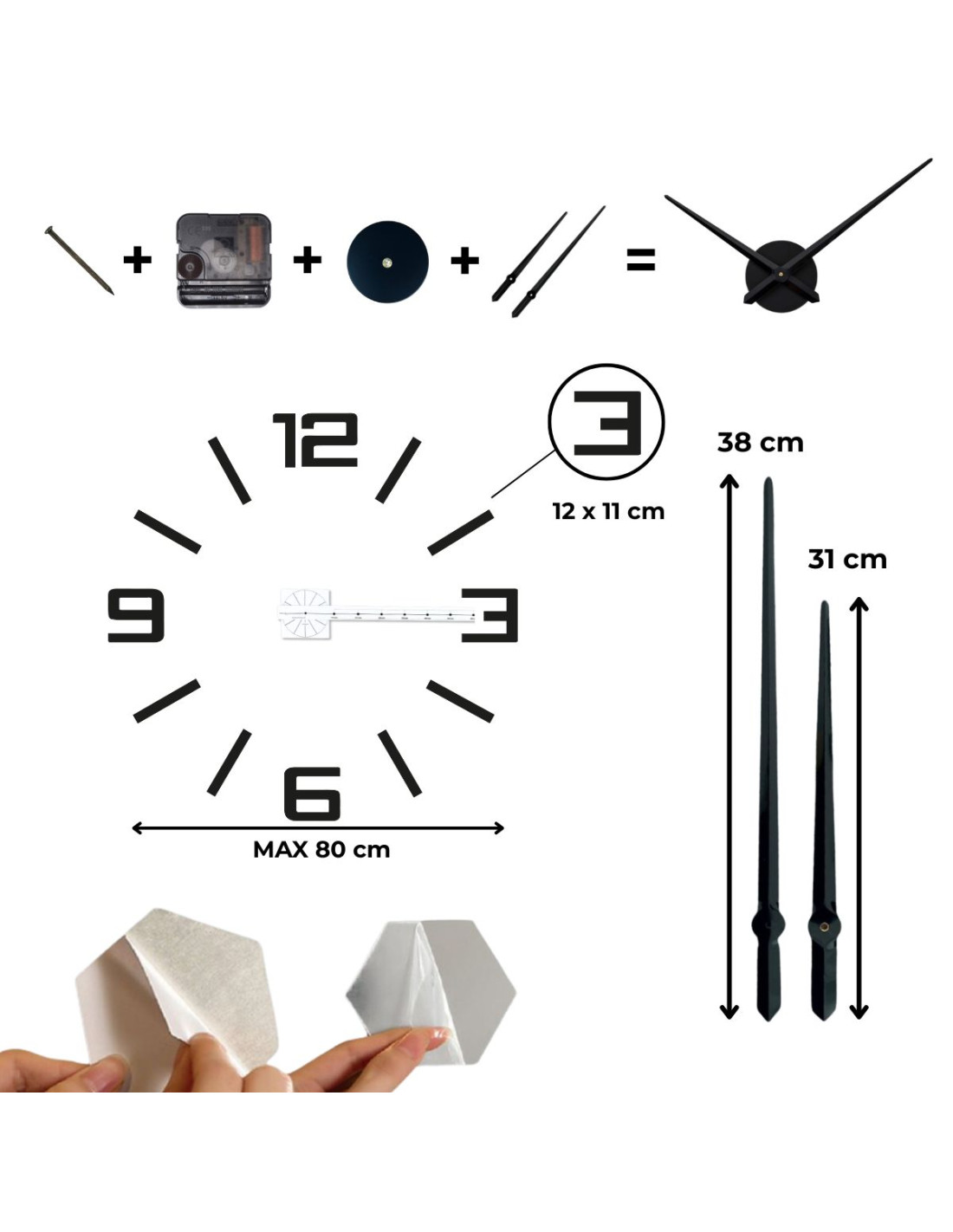 - Samolepiace číslice – ľahko ich prilepíte v presnom rozostupe bez nutnosti vŕtať.
