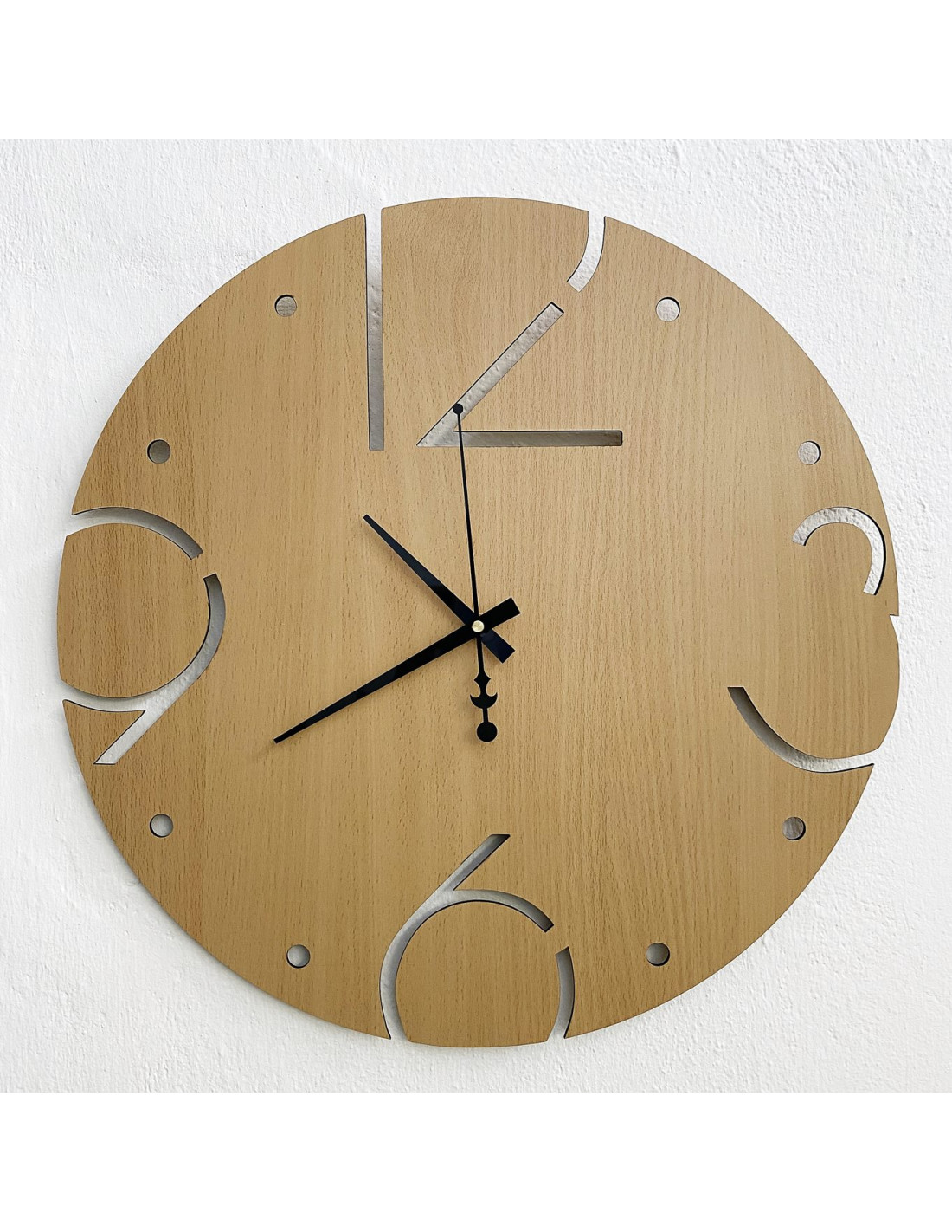 Drevené nástenné hodiny s výrezmi číslic – Dubový dekor s moderným šmrncom