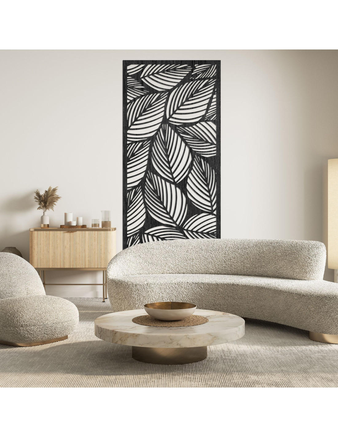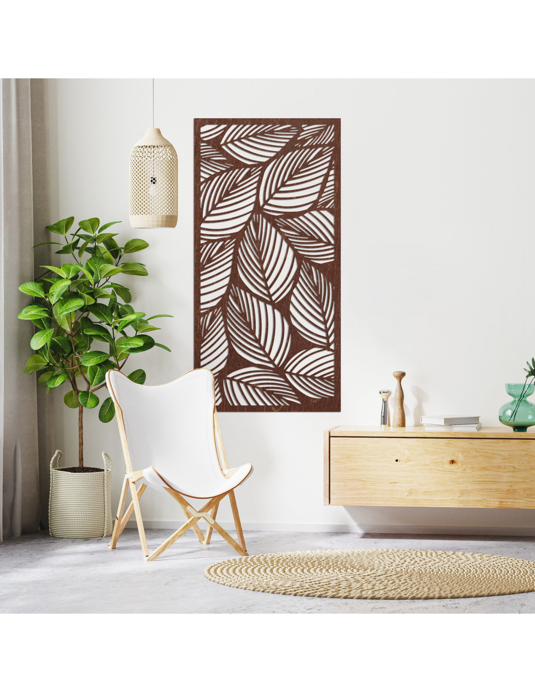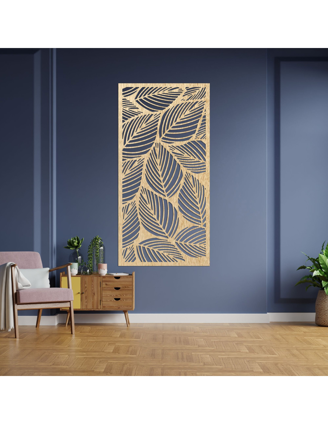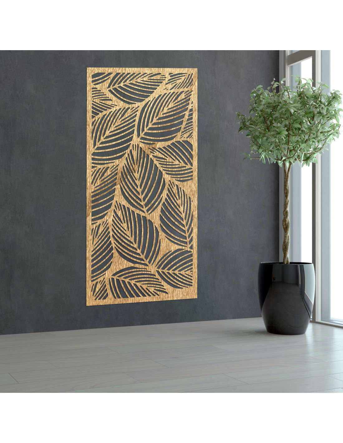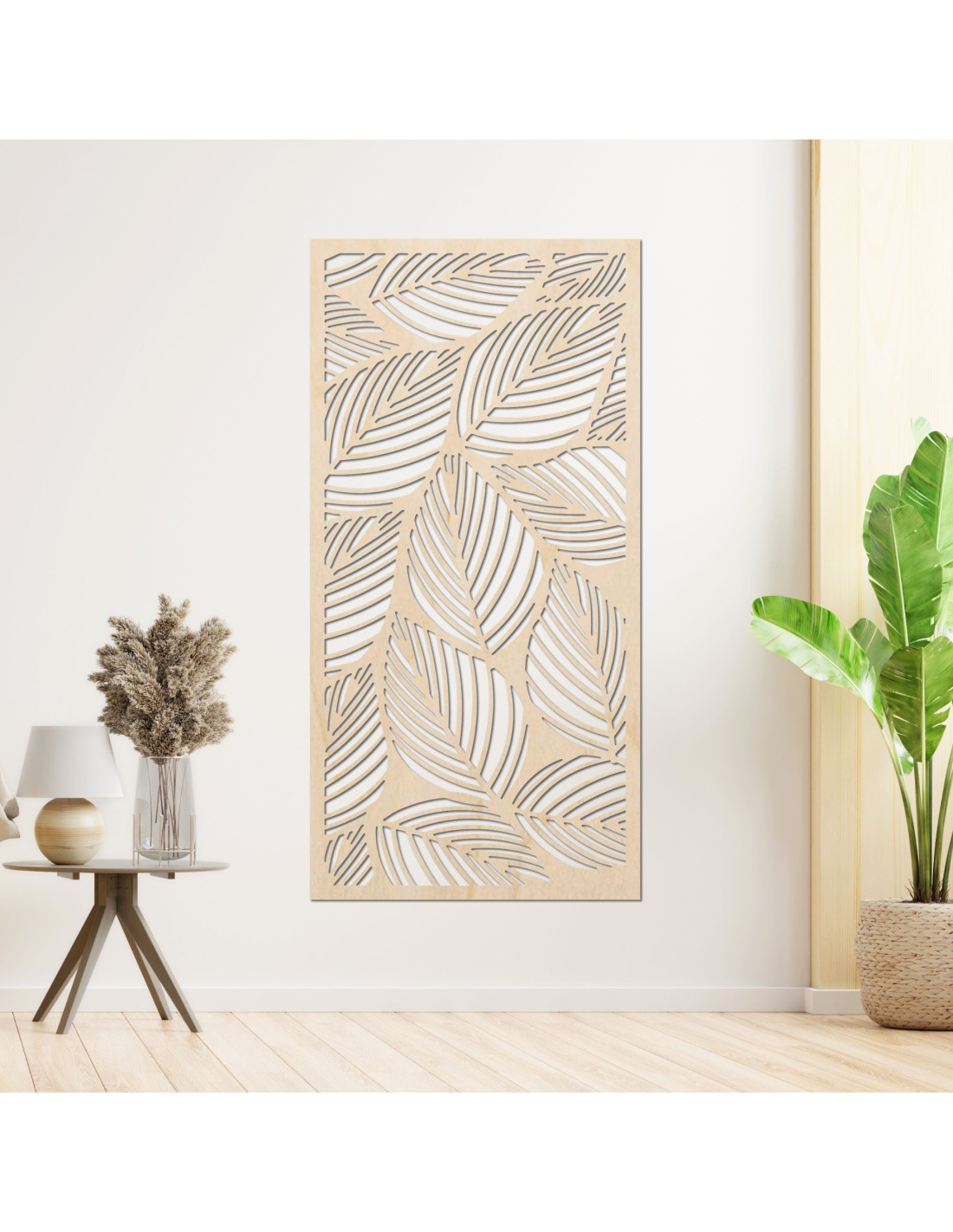 Drevená dekorácia s listovým vzorom symbolizuje rast, pokoj a spojenie s prírodou.