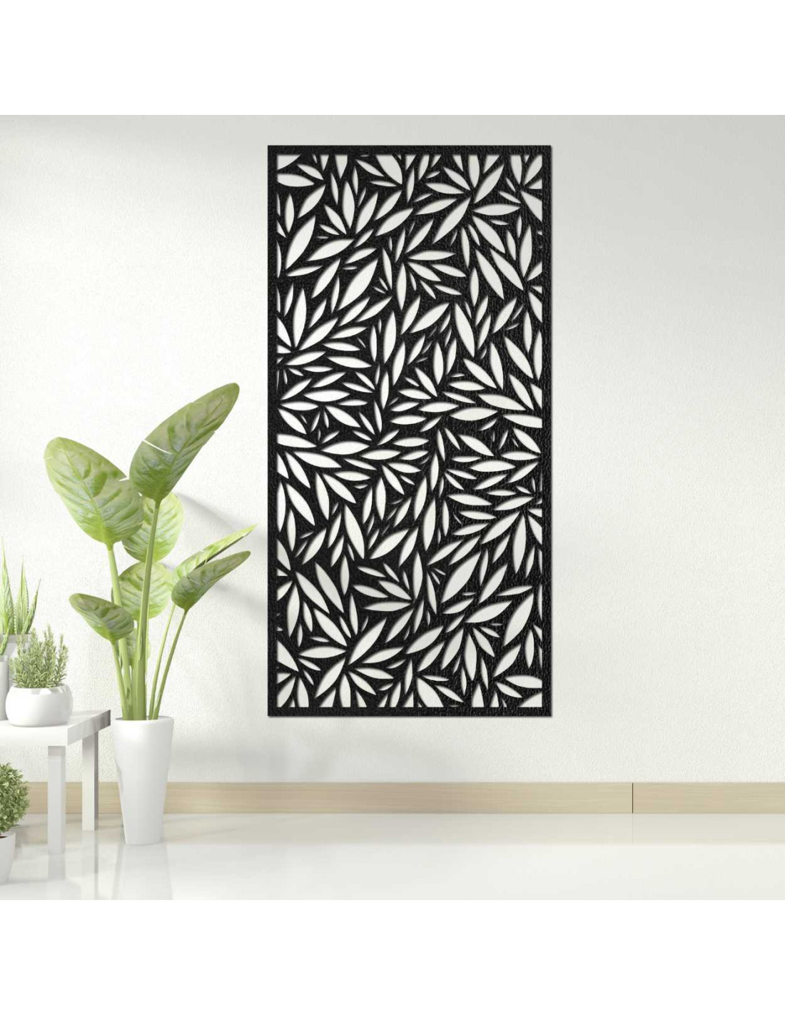 Drevený obraz s rastlinným vzorom prináša originálny dizajn s detailne vyrezanými listami.