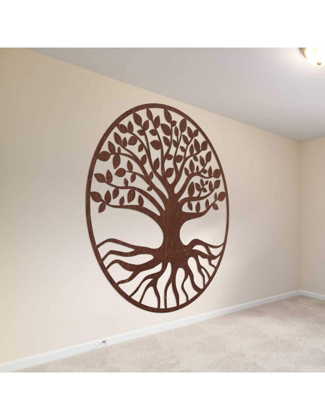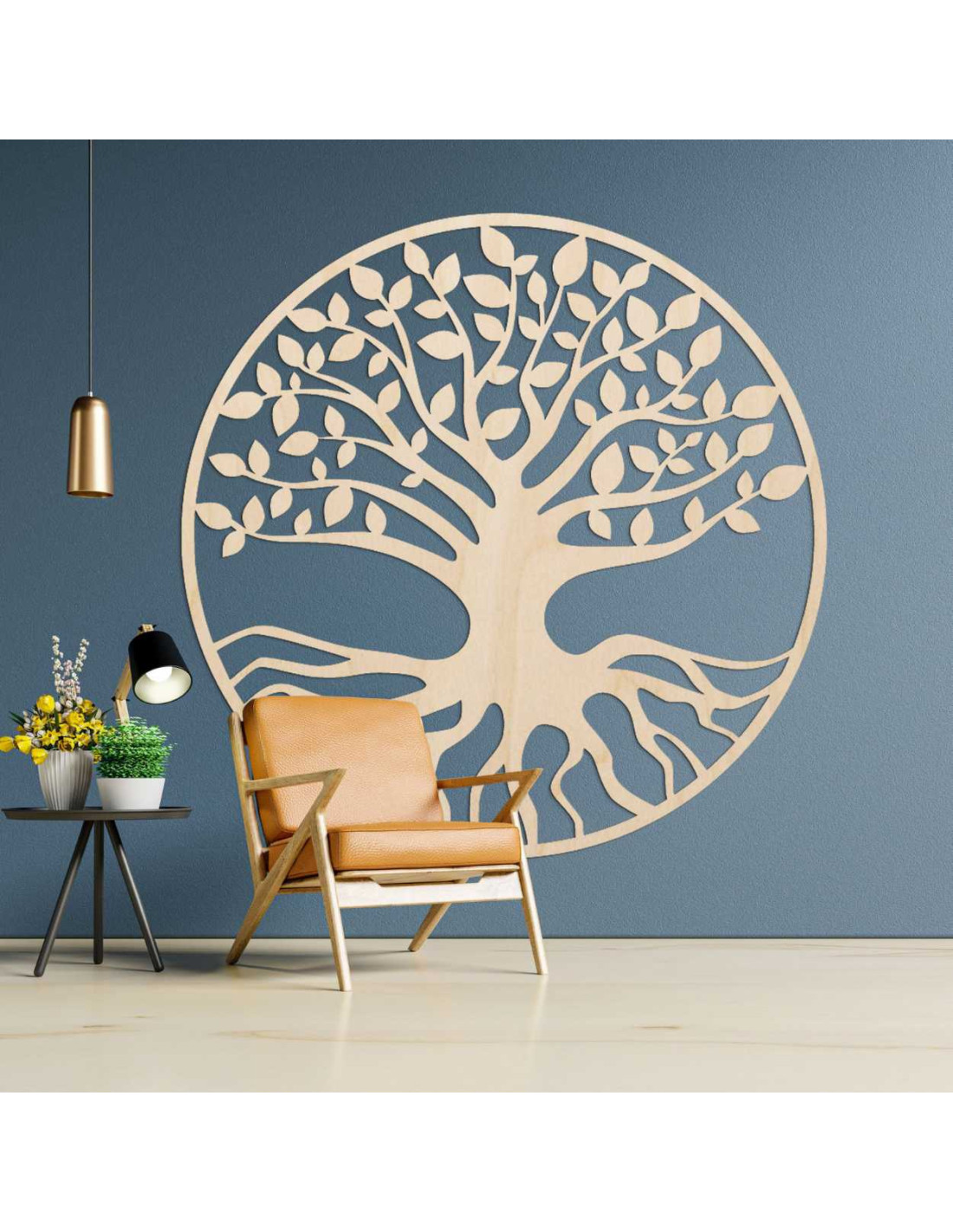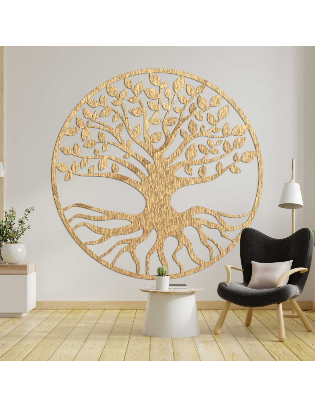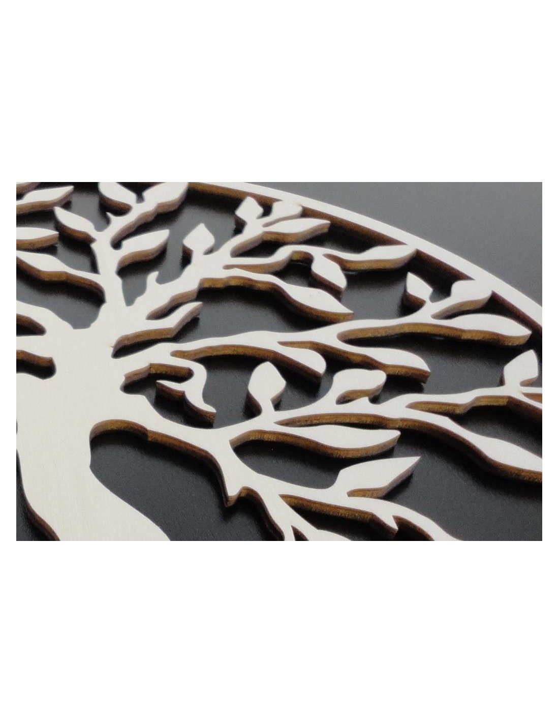 Elegantná drevená dekorácia zobrazuje symbol stromu života – spojenie rastu, sily a rovnováhy.