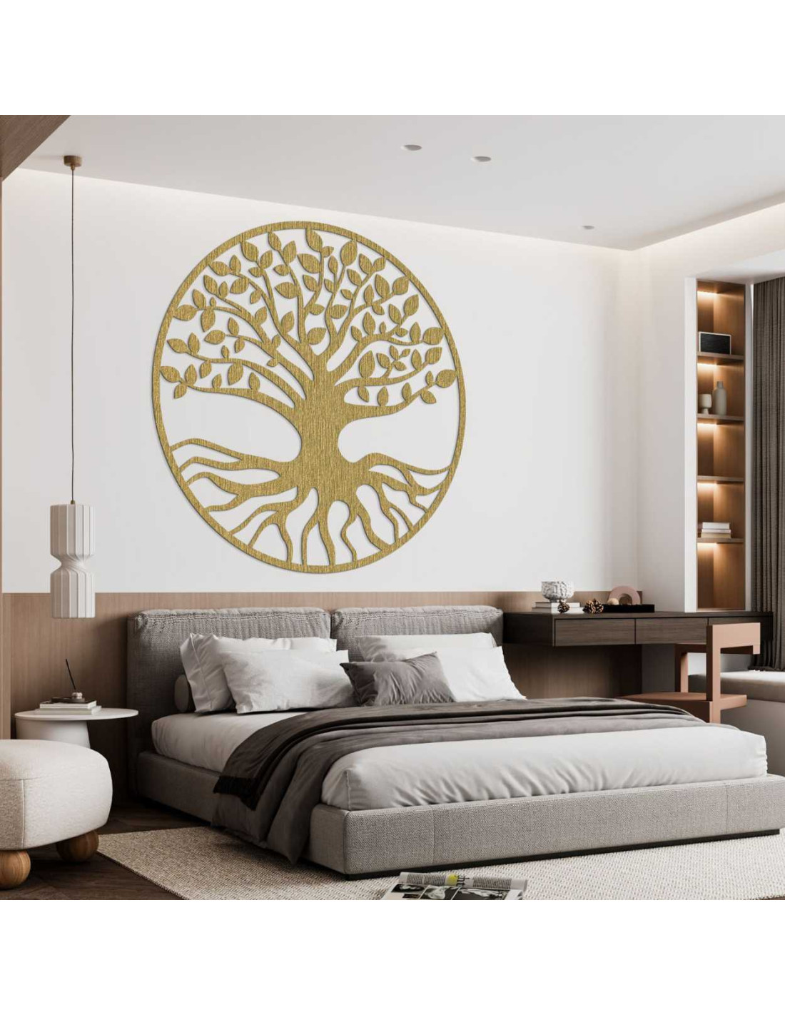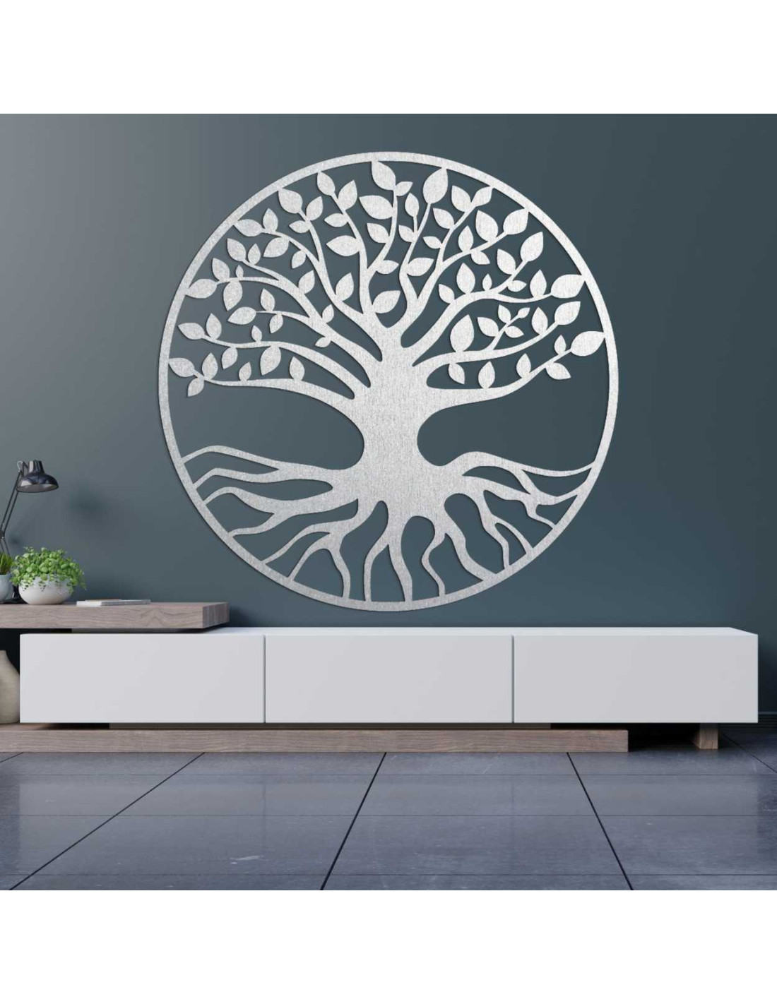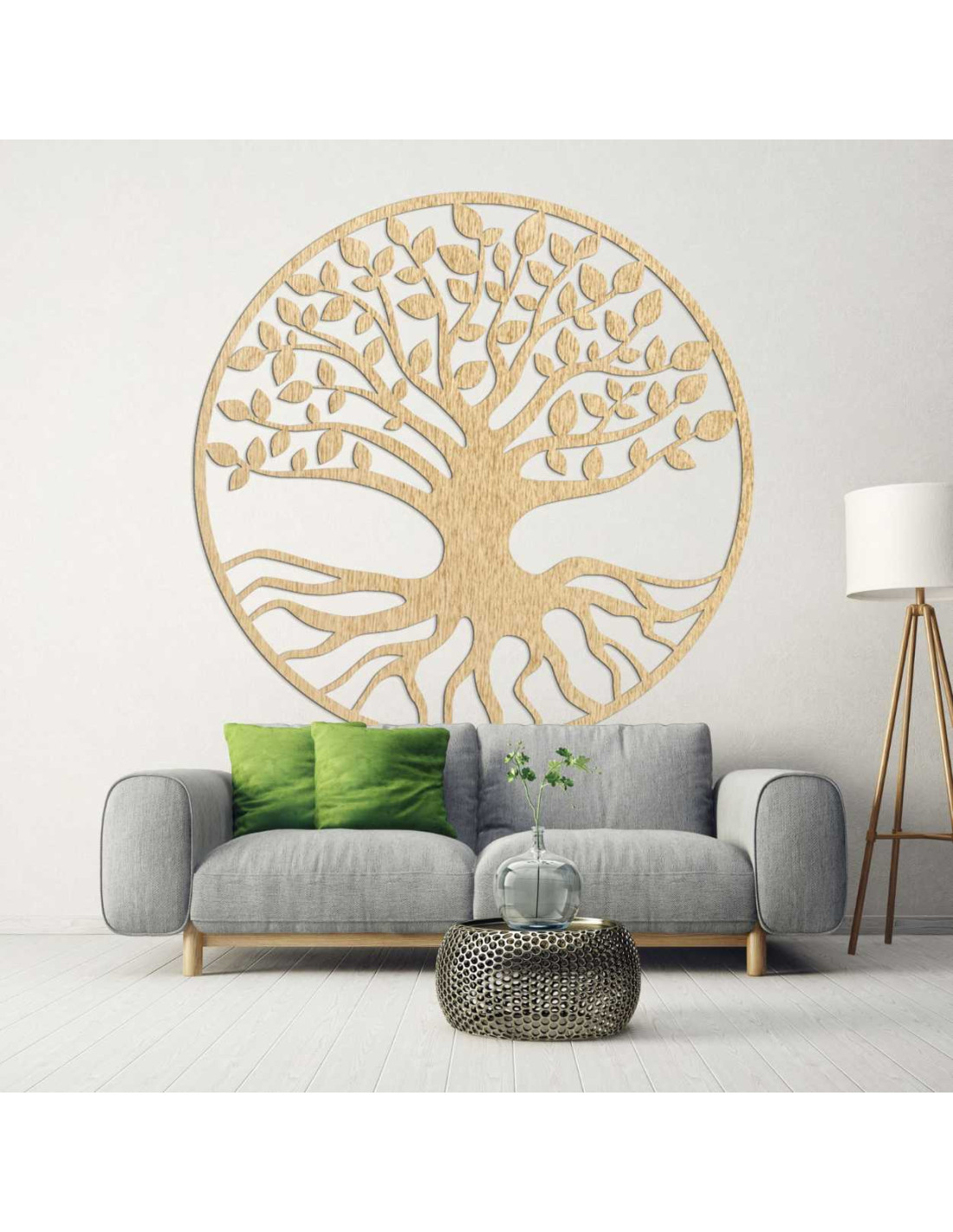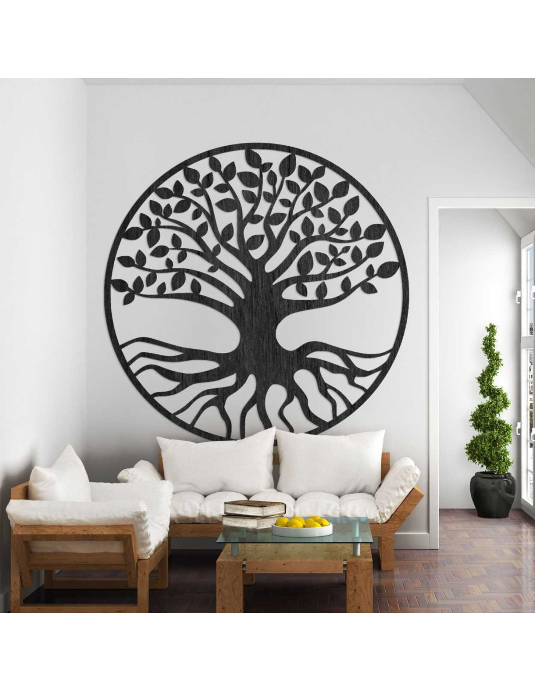 Elegantná drevená dekorácia zobrazuje symbol stromu života – spojenie rastu, sily a rovnováhy.