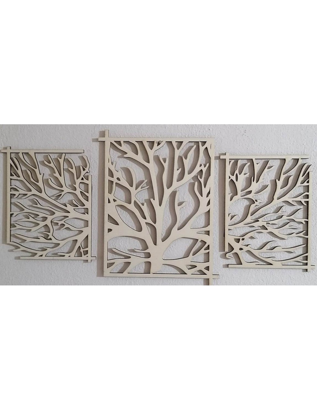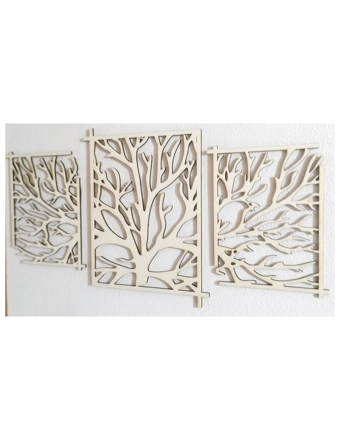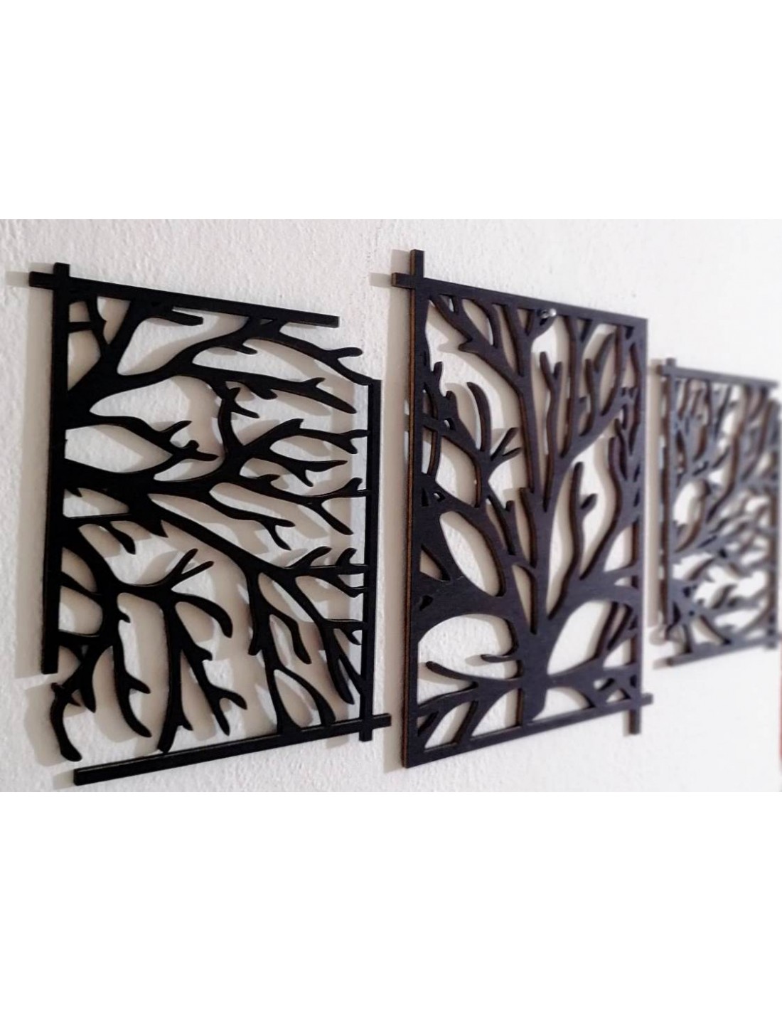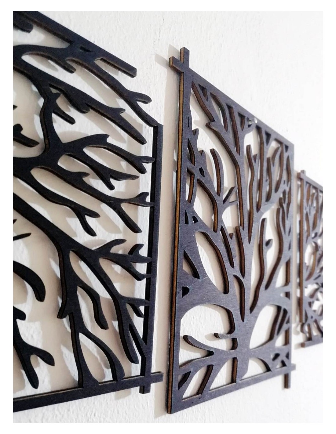 Toto zobrazenie predstavuje dekoratívne nástenné panely s dizajnom stromov. Vyrobené z materiálov s kontrastnými čiernymi a prírodnými tónmi, tieto panely prinášajú prírodný a moderný vzhľad do interiéru. Ich jedinečný vzor a detailné spracovanie dodajú priestoru špeciálny charakter, a sú ideálnym doplnkom pre obývacie izby, chodby, alebo iné miestnosti. Ak máte nejaké otázky alebo potrebujete ďalšie informácie, pokojne sa pýtajte!