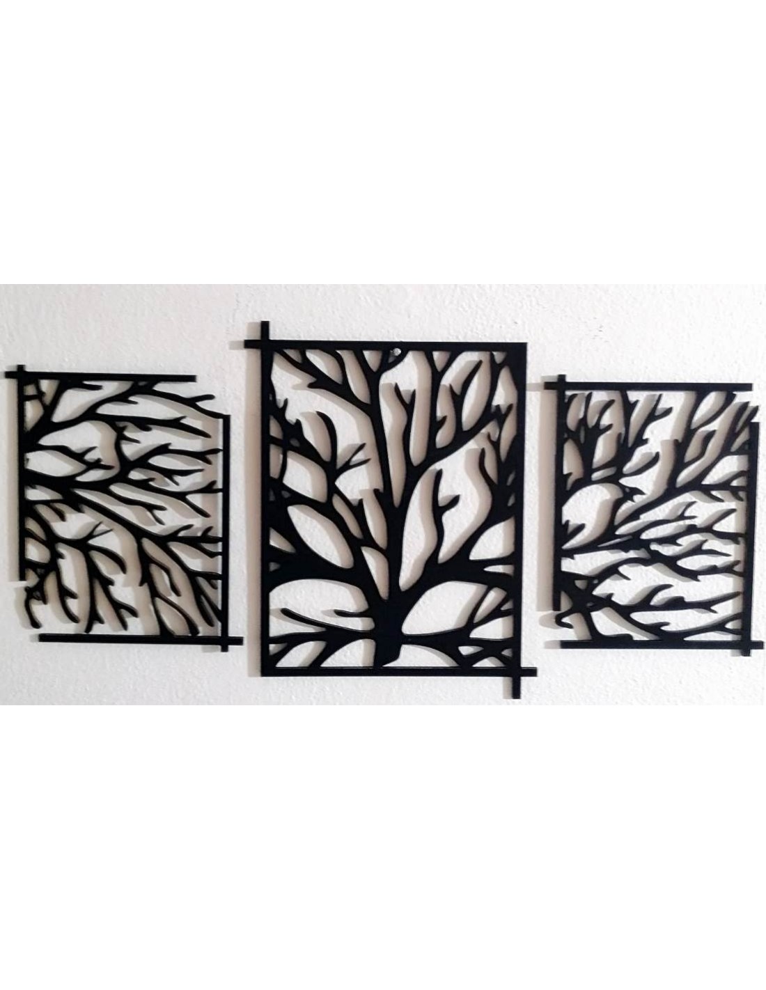 Dekoratívny nástenný panel zachytáva krásu stromov v modernom a elegantnom dizajne. Vyrobený z kvalitného materiálu s čiernym povrchom a prírodnými akcentmi, panel vytvára pôsobivý vizuálny kontrast, ktorý osvieži každý priestor. Detailný vzor vetiev a listov dodáva dielu jedinečný a organický pocit.