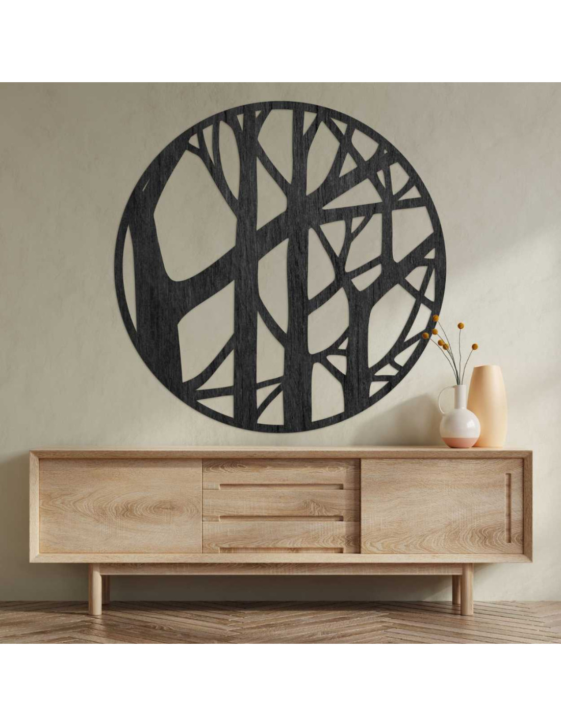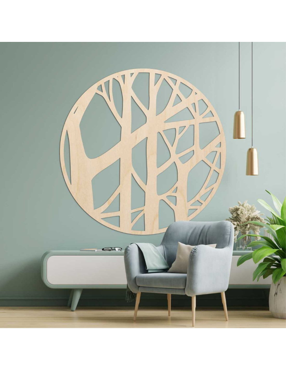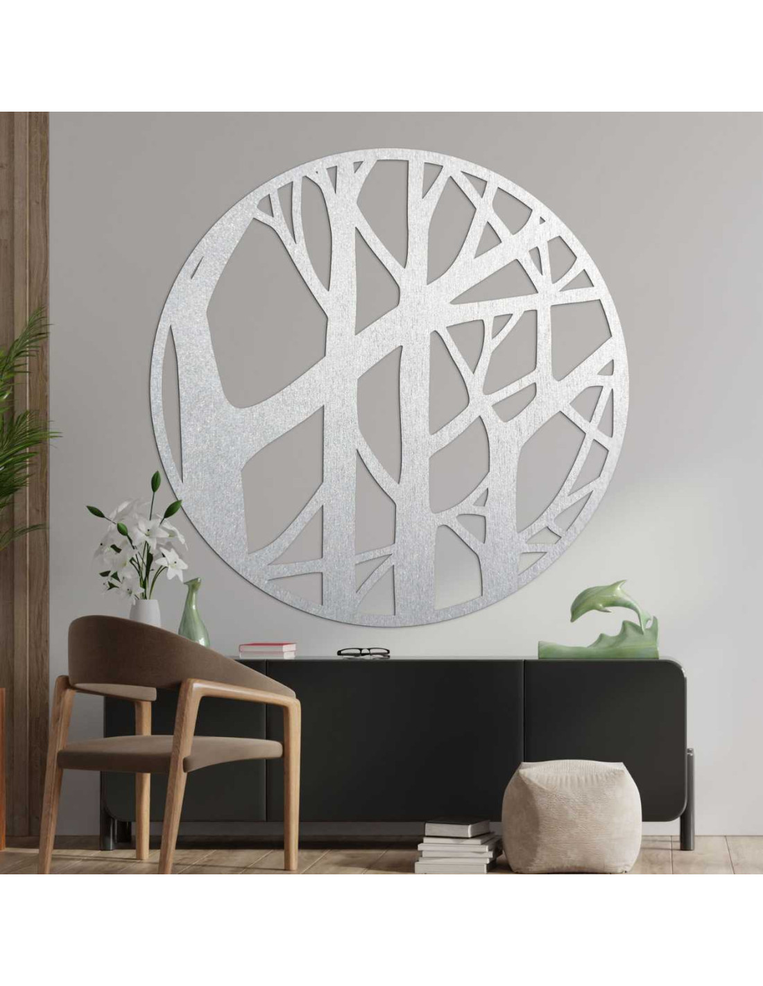 Motív stromov v kruhovom ráme pôsobí elegantne, no zároveň prirodzene a uvoľnene.
