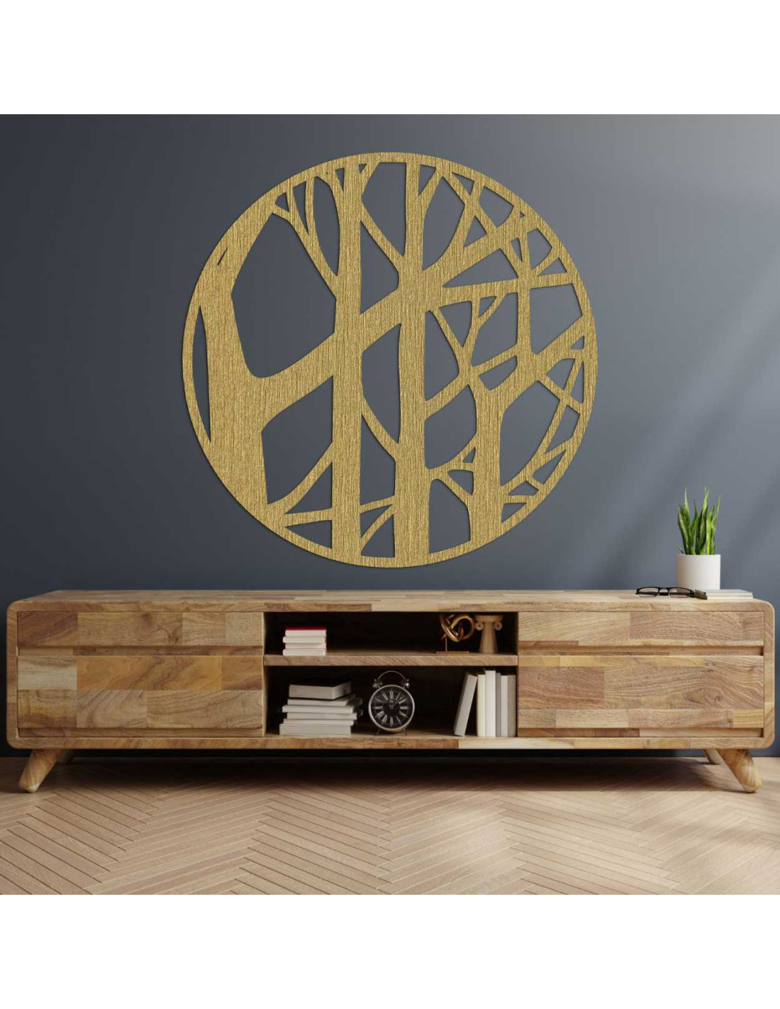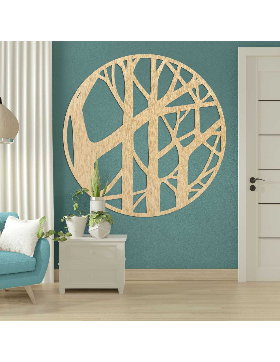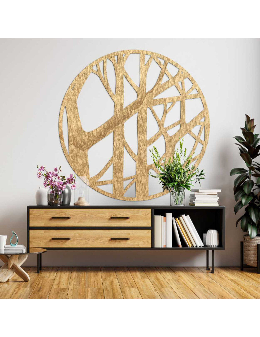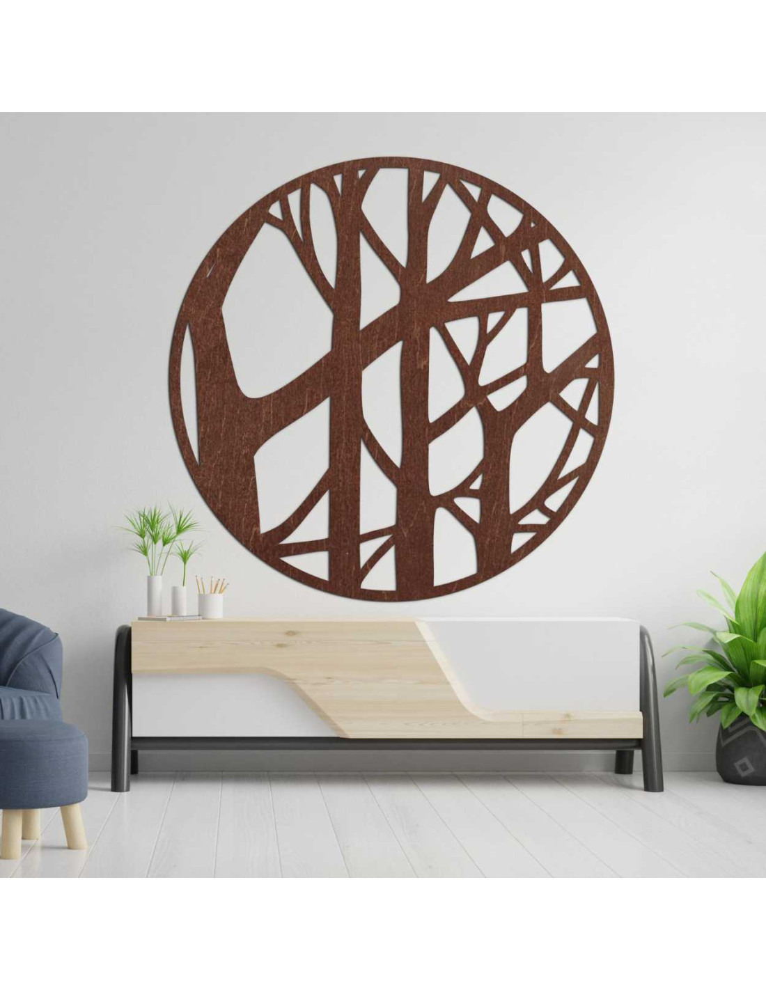Motív stromov v kruhovom ráme pôsobí elegantne, no zároveň prirodzene a uvoľnene.