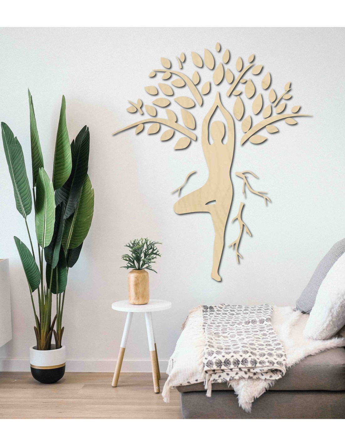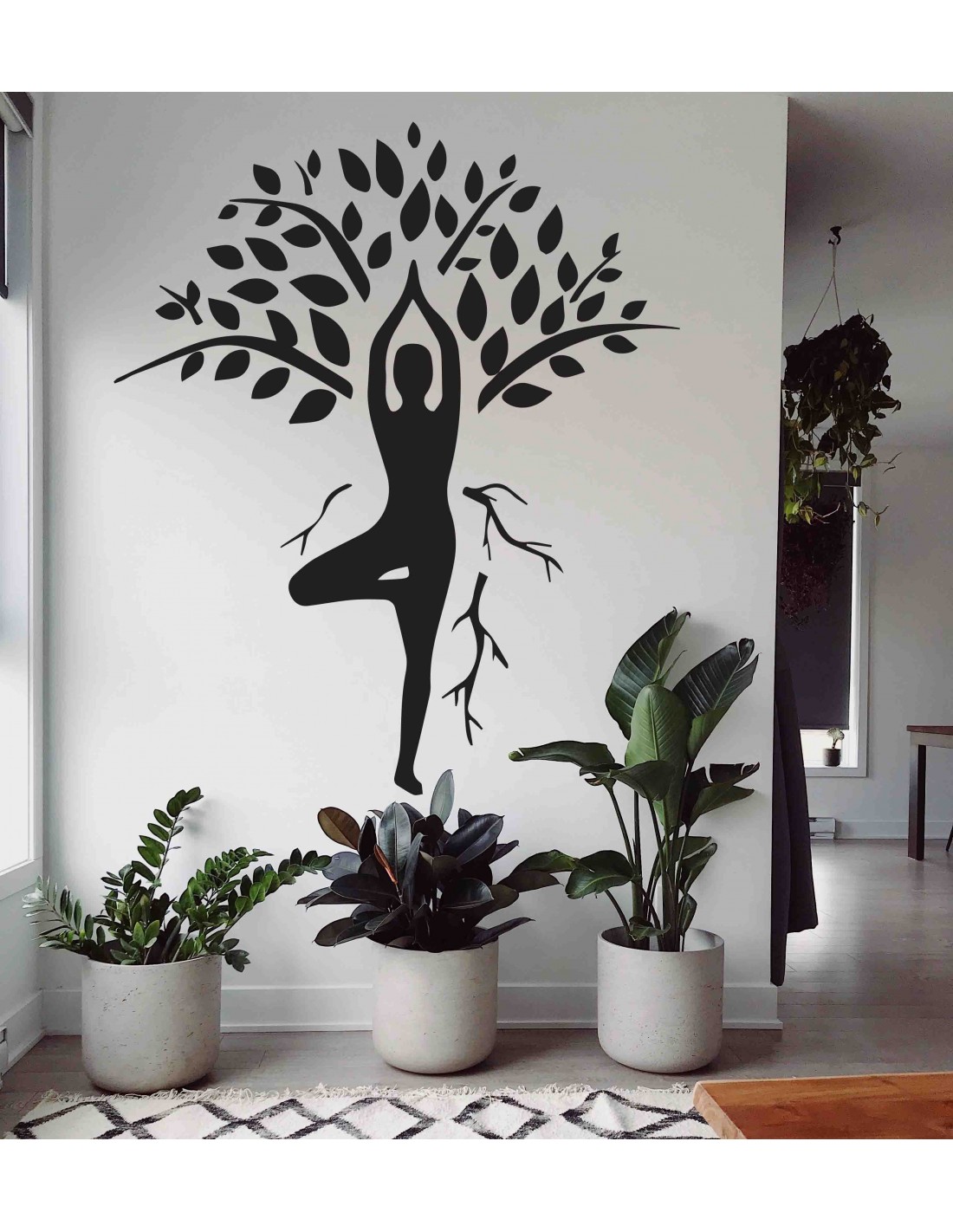 Prinášame vám umelecký obraz, ktorý symbolizuje harmóniu medzi človekom a prírodou.  Minimalistický dizajn zobrazuje siluetu jogína v pozícii Vrksásana (strom), integrovanú do stromu.  Koruna stromu sa týči nad hlavou jogína, symbolizujúc rast a rozvoj, zatiaľ čo korene pod jeho nohami predstavujú stabilitu a zakorenenie.