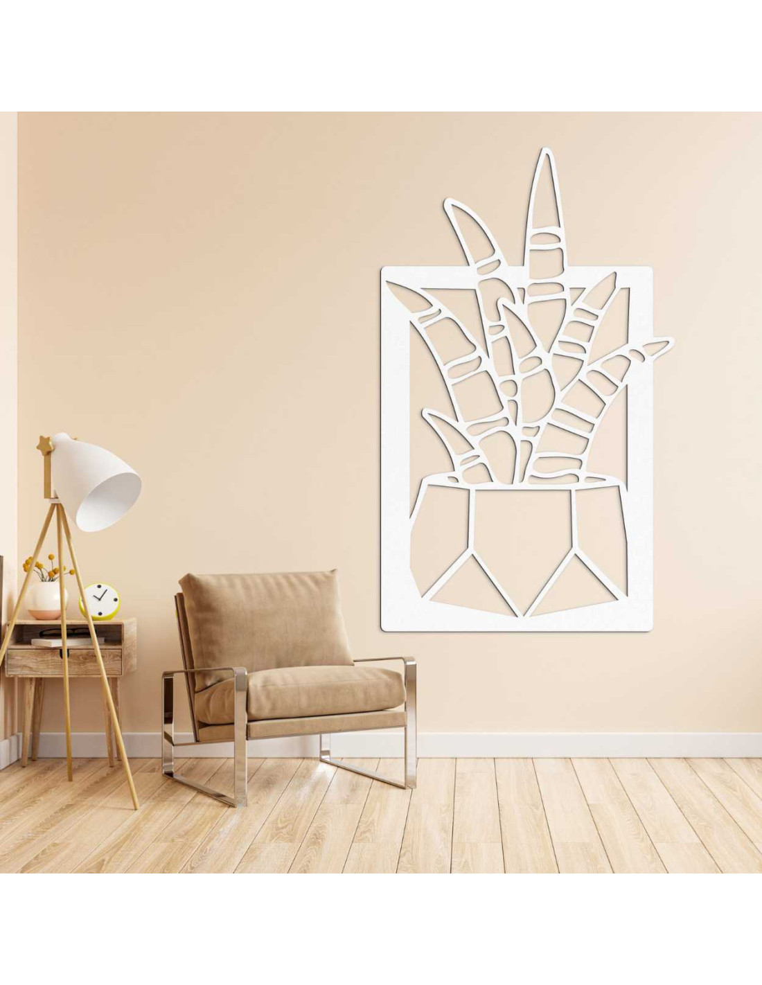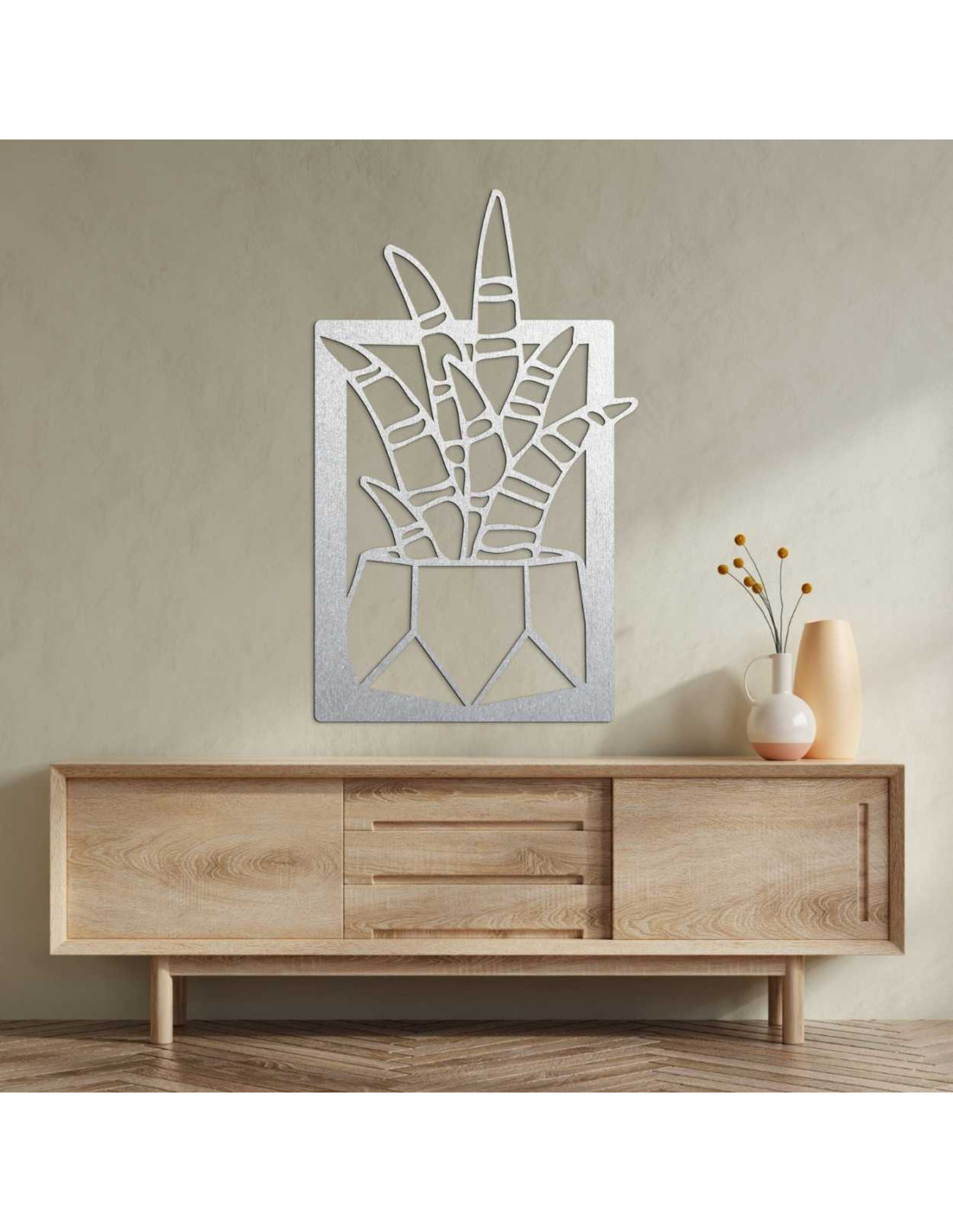 Minimalistický rám zvýrazňuje tvar a štruktúru dekorácie.