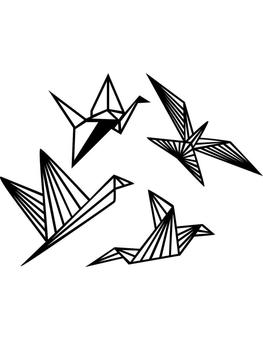 Tento elegantný obraz znázorňuje štyri vtáky v štýle origami s geometrickými líniami.