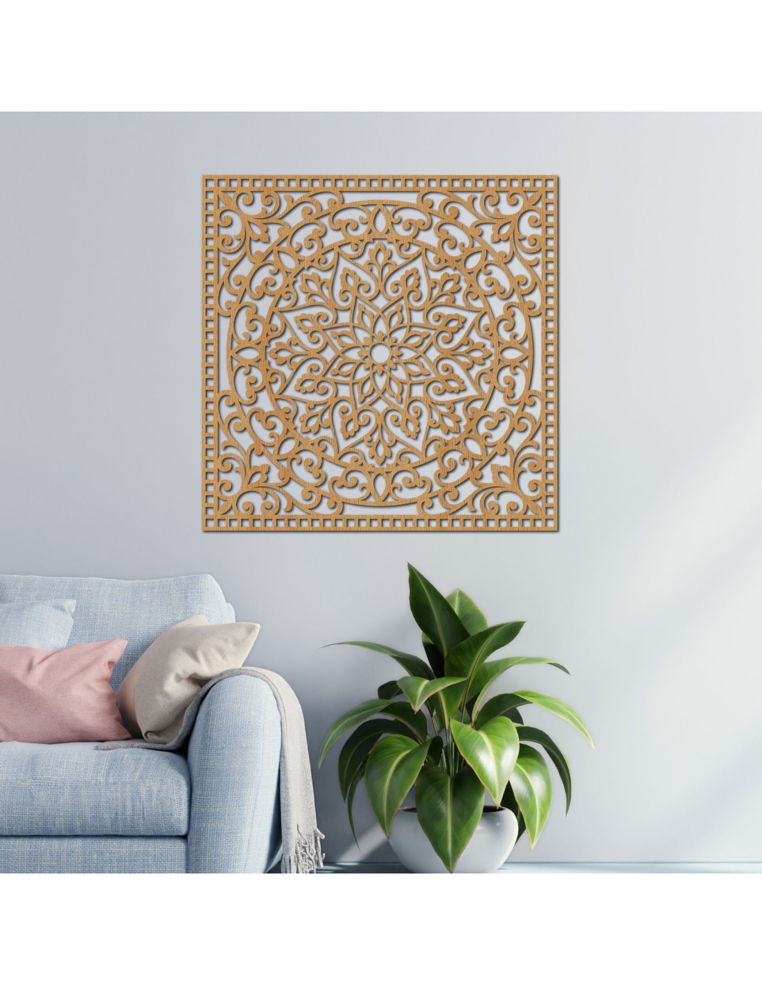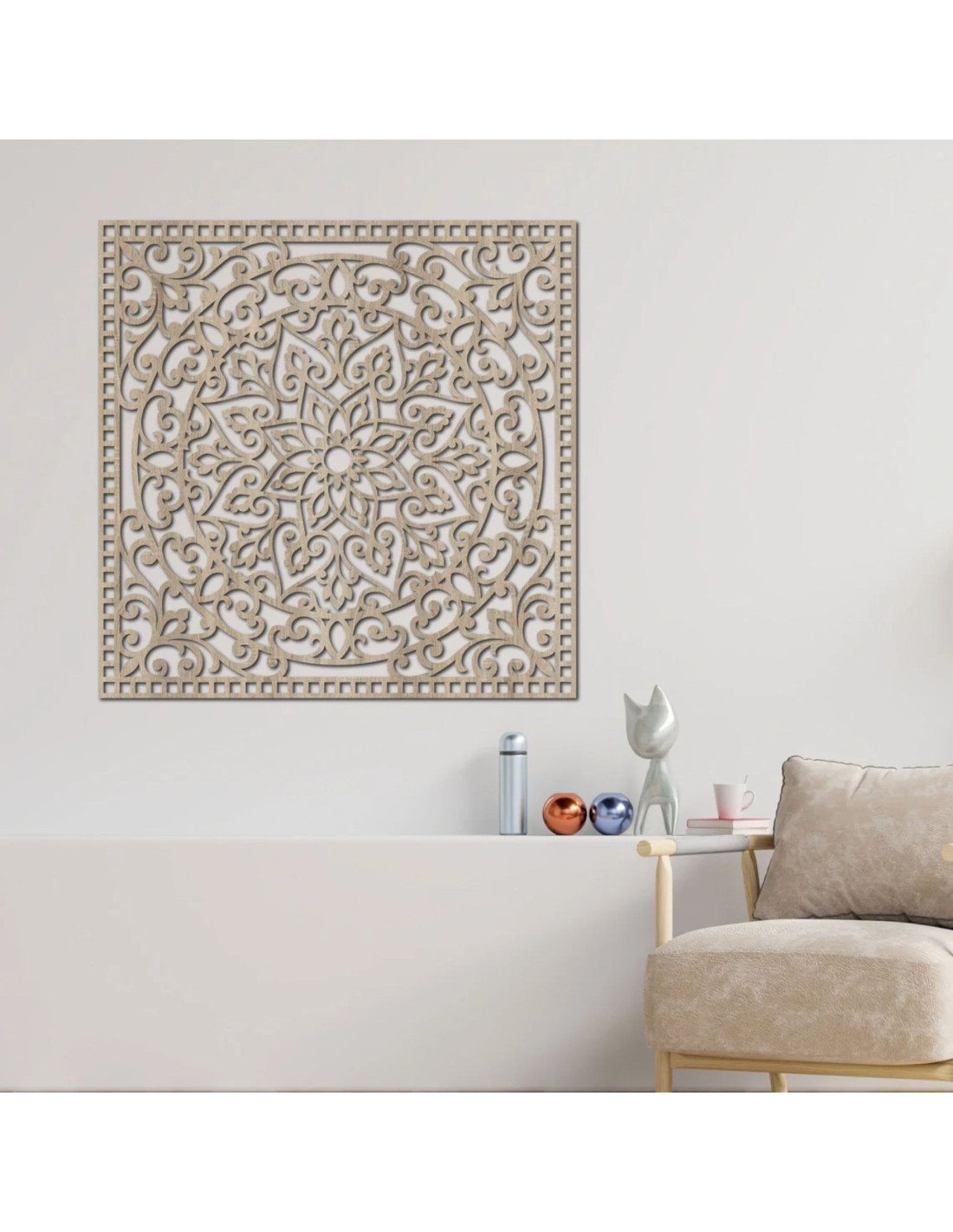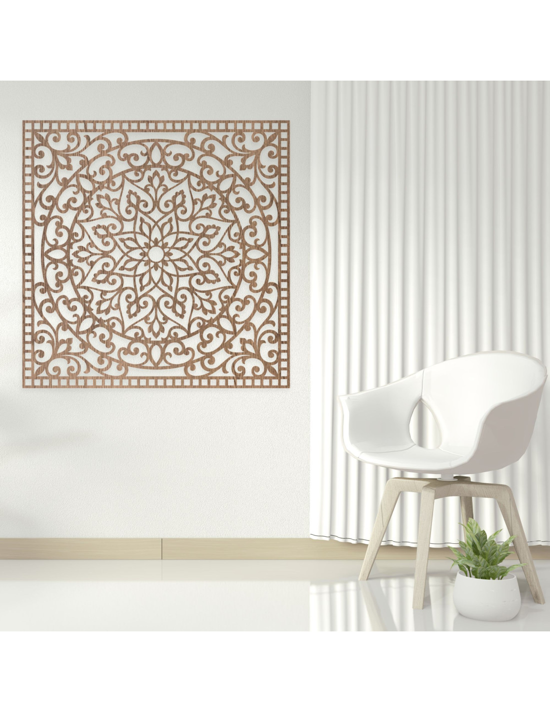 Drevený obraz štvorec orientálna mandala - KVIDO