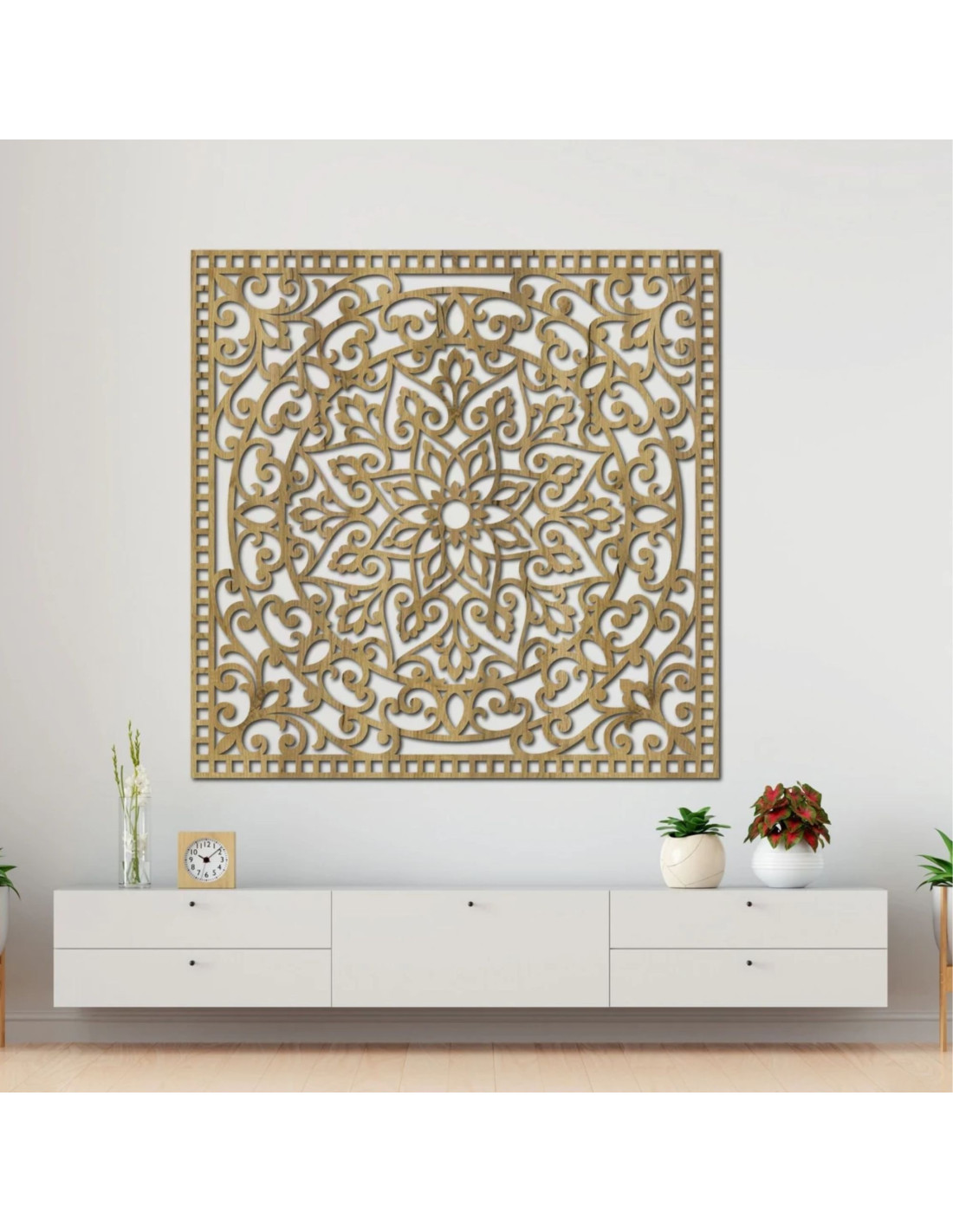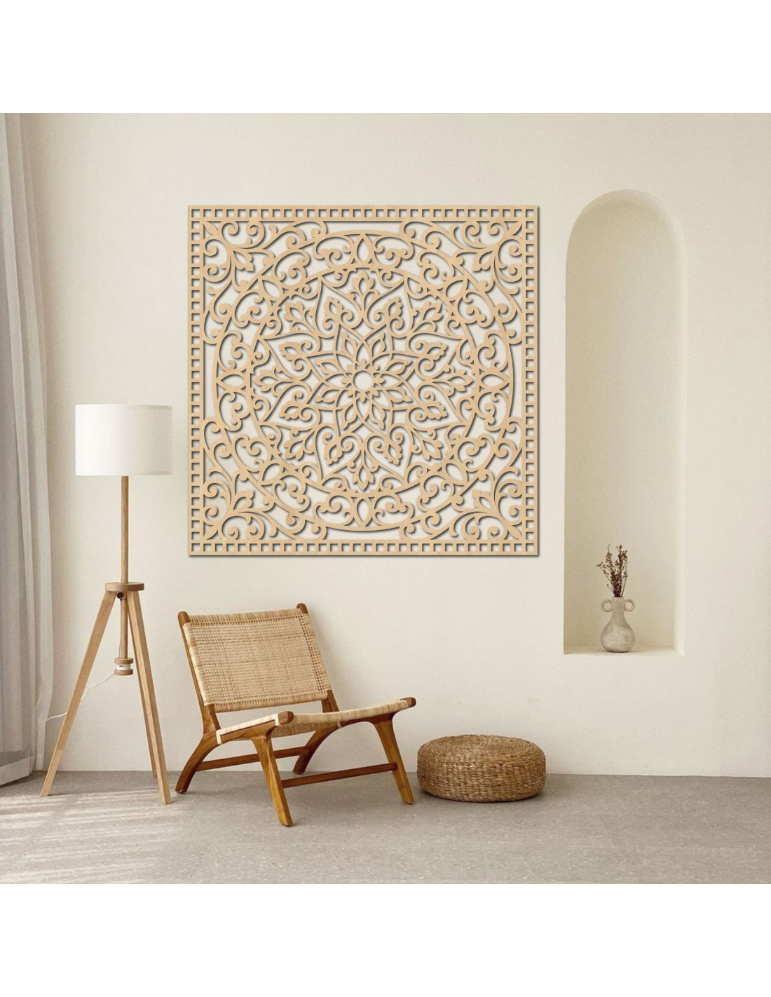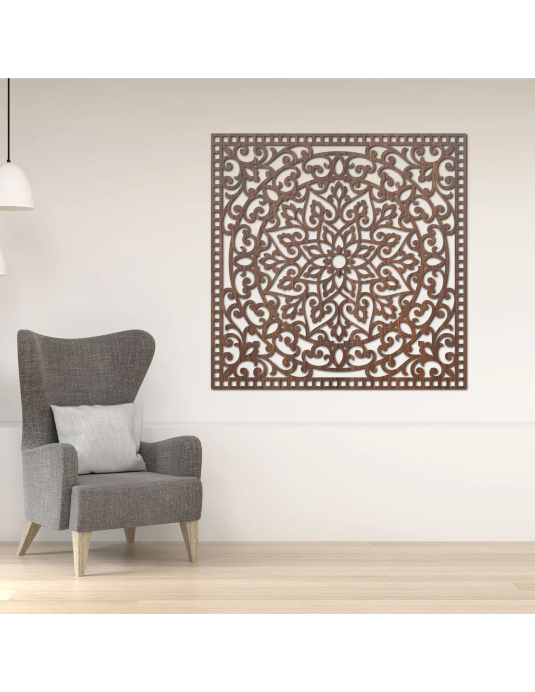 Drevený obraz štvorec orientálna mandala - KVIDO