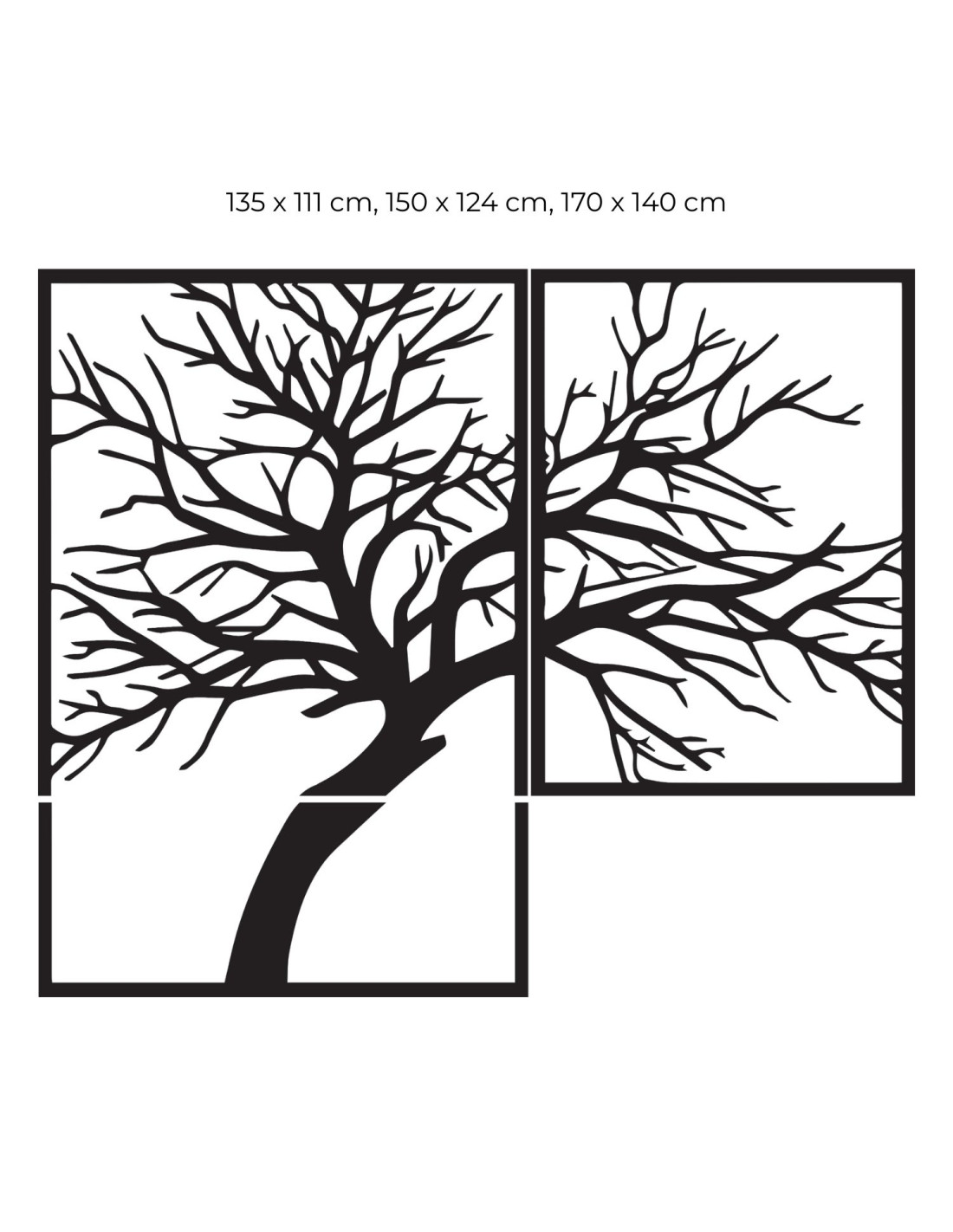 Dvojdielny obraz zobrazuje elegantný strom s detailne vyrezávanými vetvami, vytvorený v teplých drevených tónoch.
