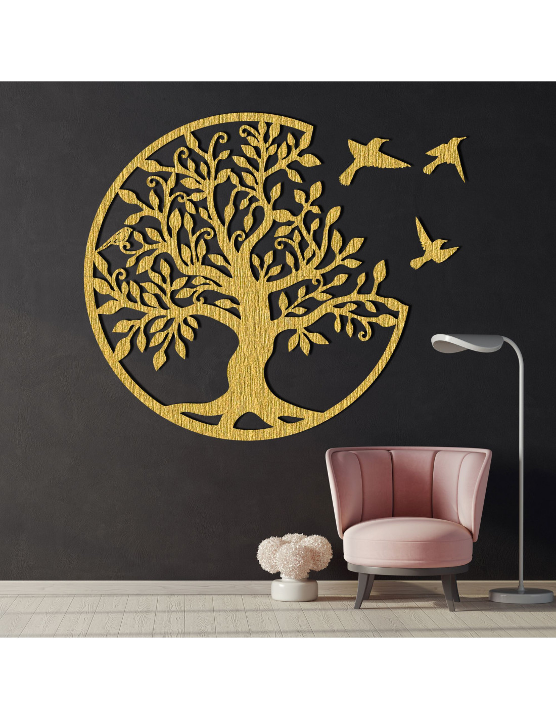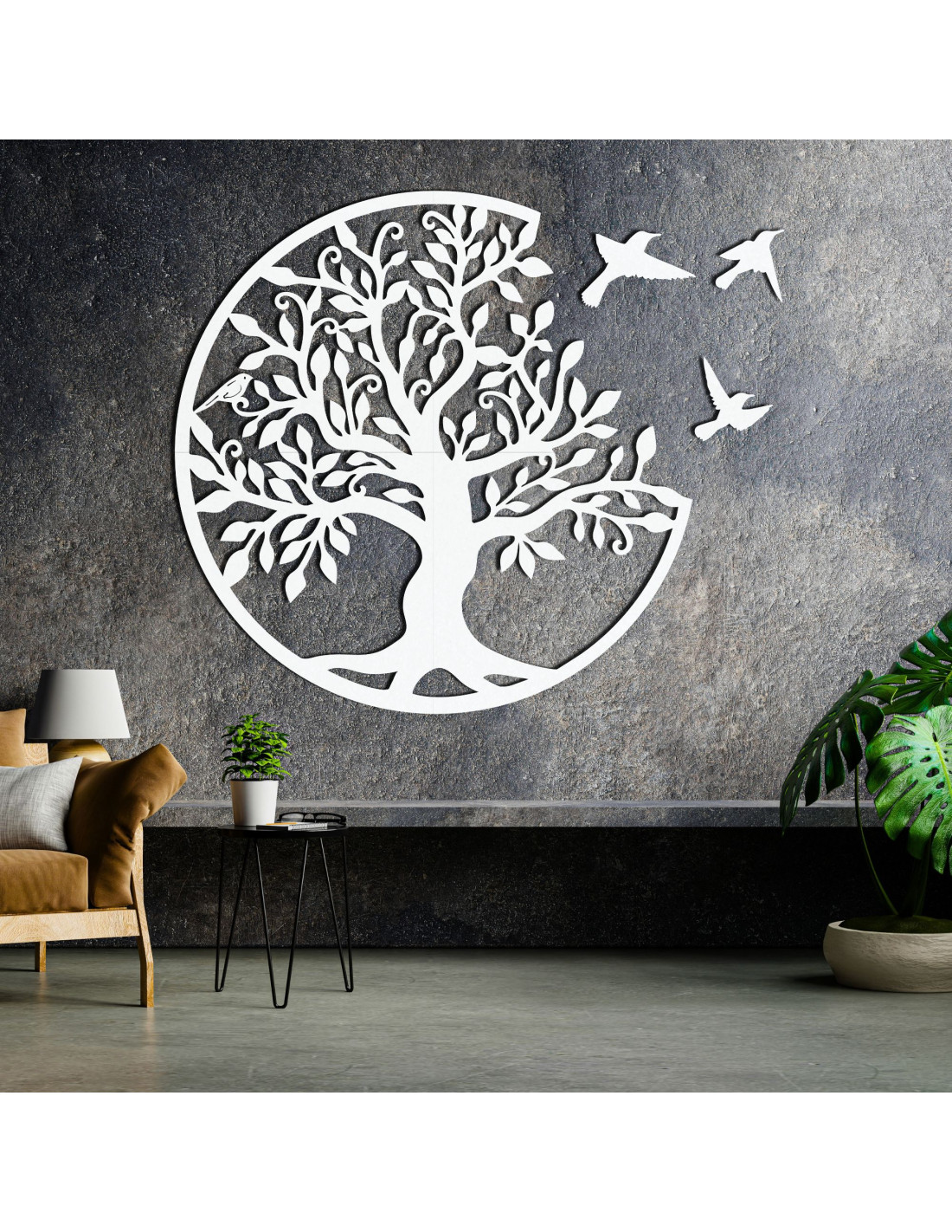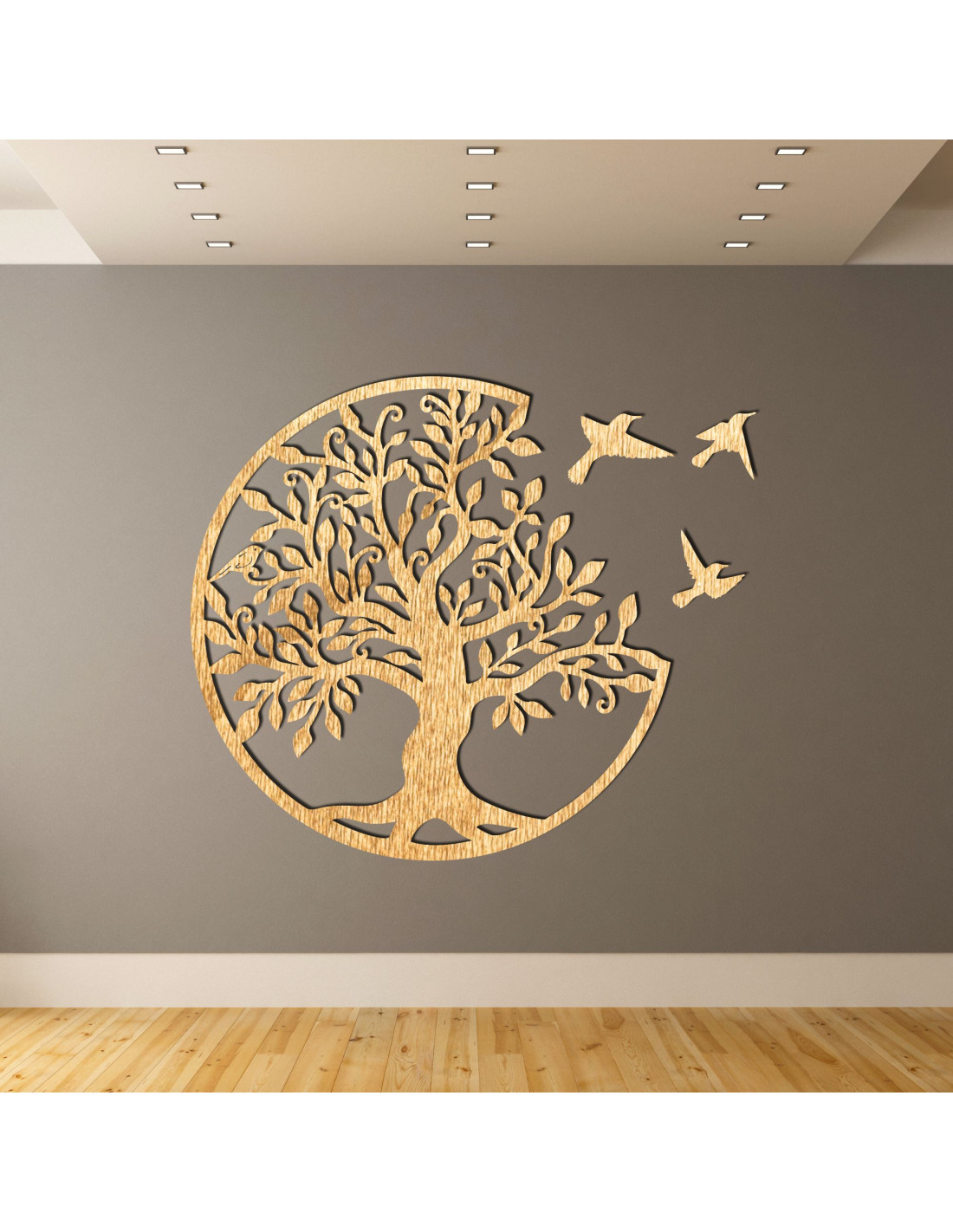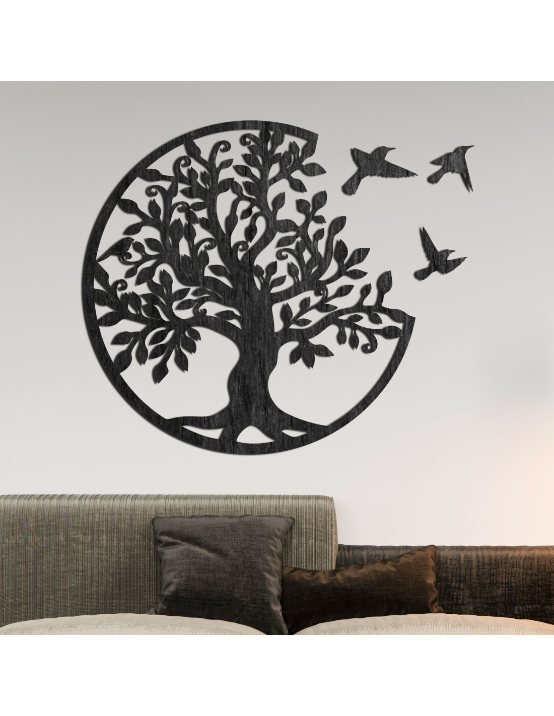 Drevený strom života s tromi vtákmi letiacimi doprava je elegantnou dekoráciou na stenu, ktorá prinesie vášmu interiéru štýl a harmóniu. Táto jedinečná dekorácia je precízne vyrezávaná laserom, aby vynikli jemné detaily, a následne ručne upravená pre dokonalý vzhľad a autenticitu.