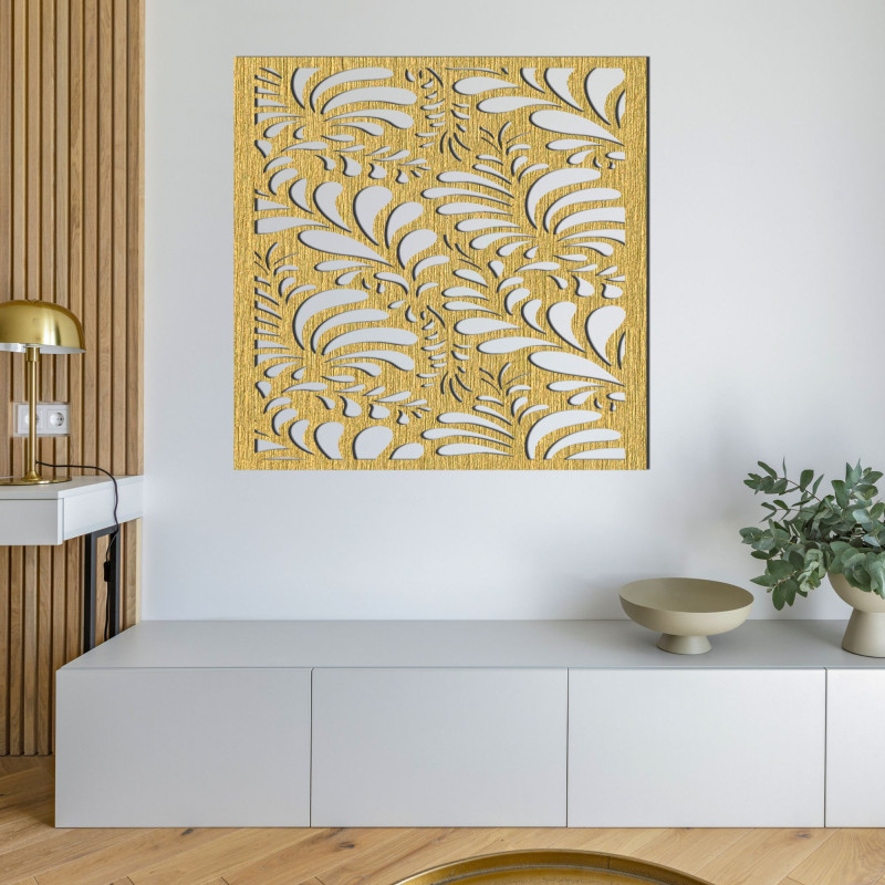Tento nádherný drevený obraz stelesňuje jemnosť a krásu prírodných tvarov. Dynamické línie pripomínajú kvety v plnom rozkvete, ktoré symbolizujú život, rast a obnovu. Tento obraz vzniká kombináciou precíznej laserovej technológie, ktorá zaisťuje dokonalé detaily, a ručného dokončenia, ktoré mu dodáva jedinečný charakter a originálny vzhľad.