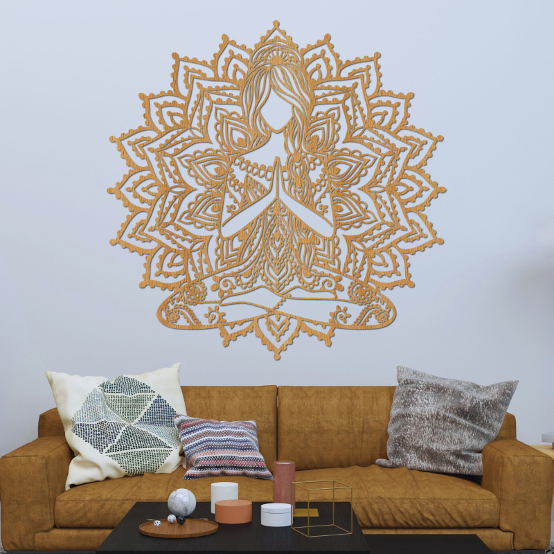Mandala Serenitas – Pokojná myseľ je unikátny drevený symbol harmónie, ktorý prináša do vášho priestoru pocit pokoja a vnútorného vyrovnania. V jej strede je vyobrazená postava v meditačnej pozícii, obklopená precízne vyrezávanými vzormi mandaly, ktoré symbolizujú rovnováhu a nekonečný tok pozitívnej energie. Táto dekorácia je nielen estetickým doplnkom, ale aj pripomienkou dôležitosti vnútorného pokoja.
