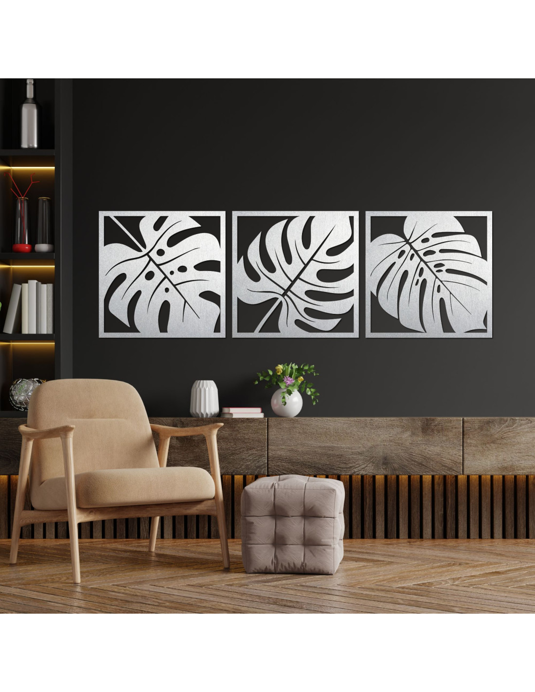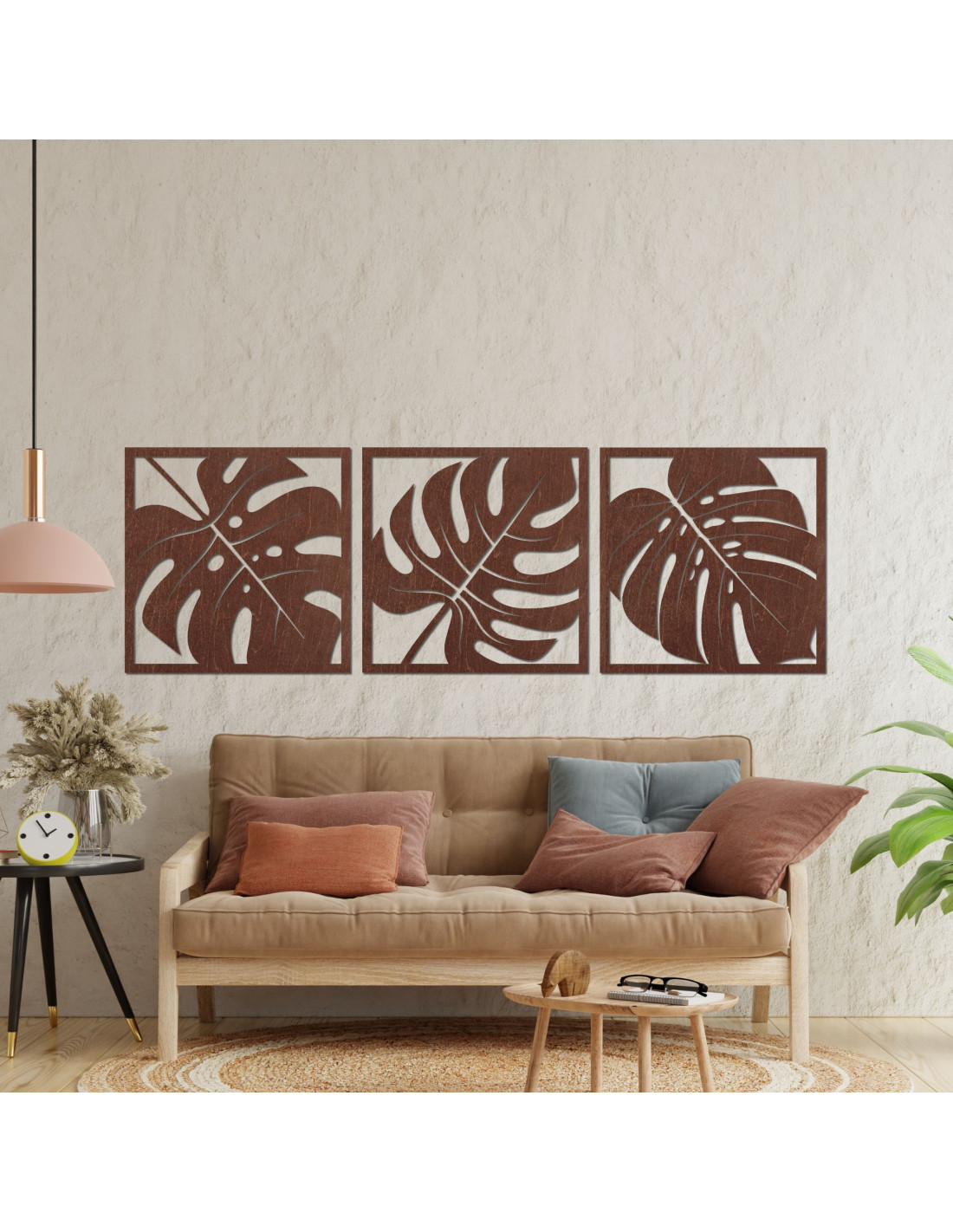 Precízne vyrezávané línie zachytávajú prirodzenú krásu listov Monstery a dodávajú priestoru moderný a jedinečný charakter.