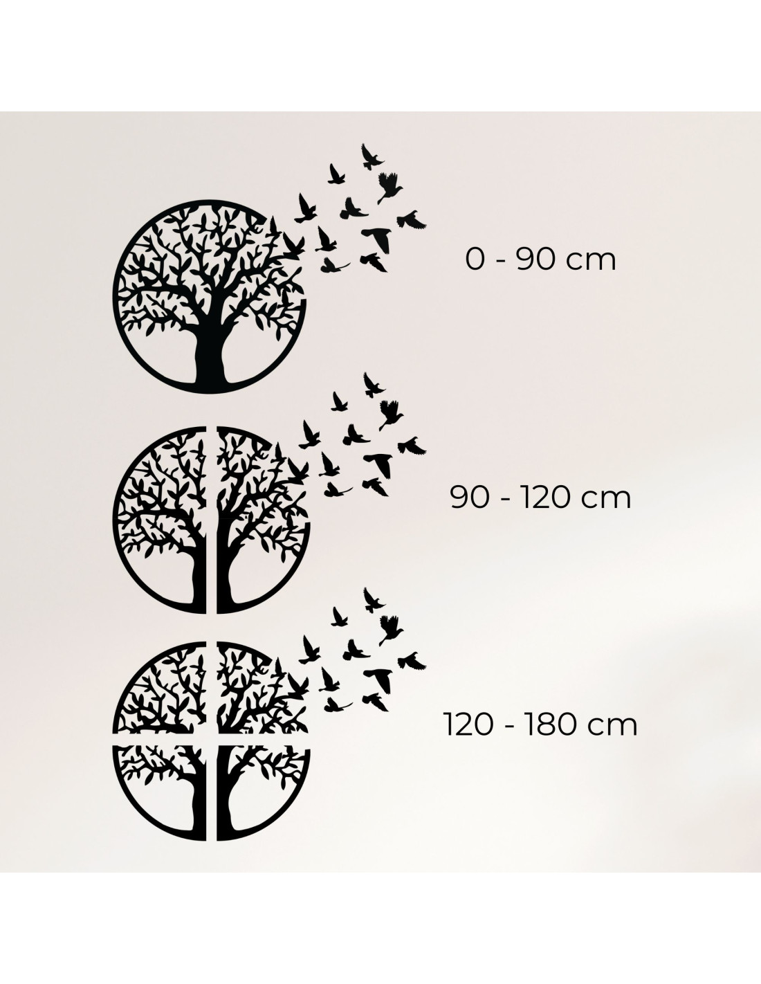 Elegantný dizajn, rafinovaná silueta stromu a vtákov tvorí fascinujúci vizuálny prvok, ktorý stojí za pozornosť. Univerzálne využitie, ideálne pre detské izby, obývačky, spálne či kancelárie, dodáva útulnosť a charakter.