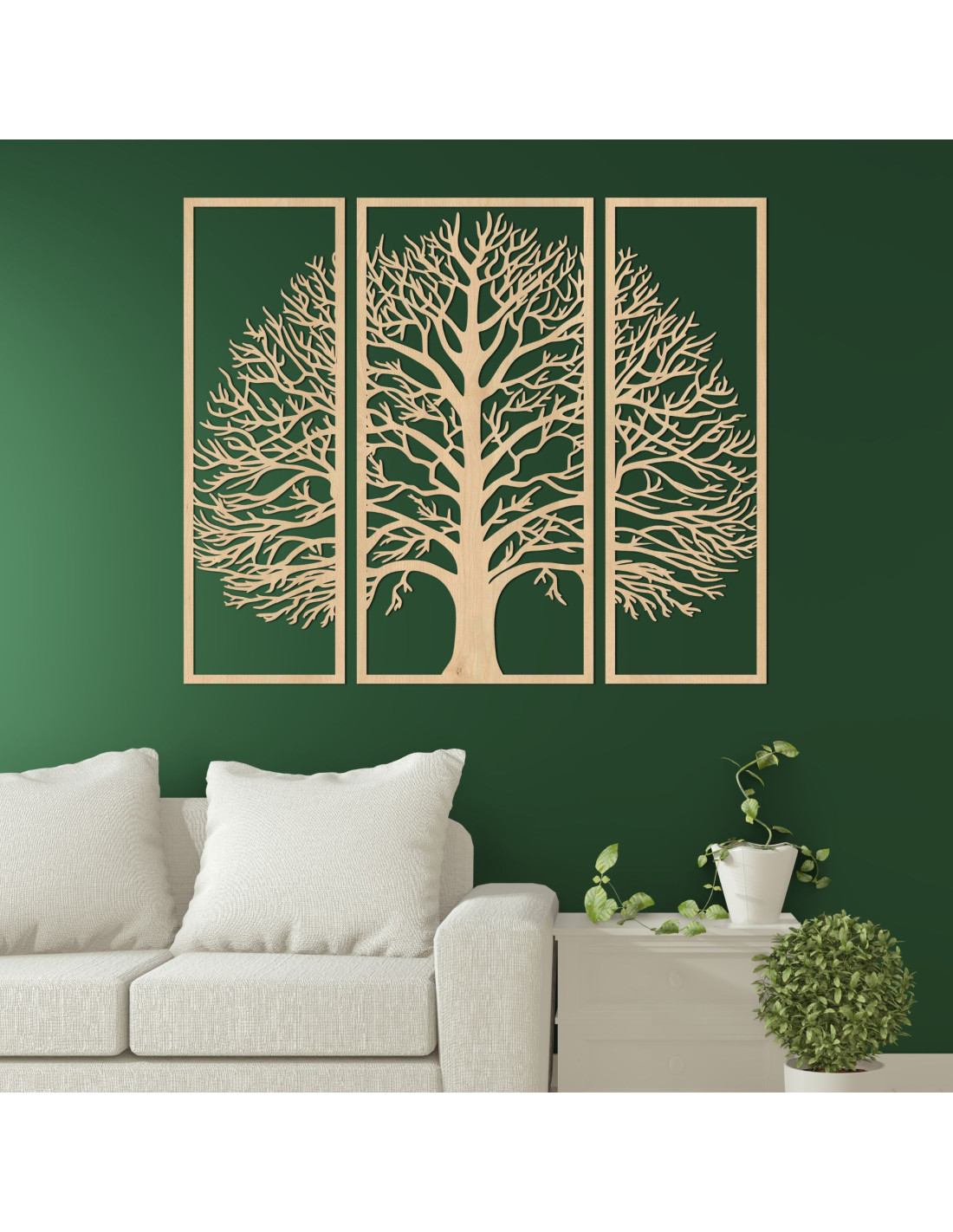 Trojdielna drevená dekorácia na stenu exkluzívny strom života - DIVISA