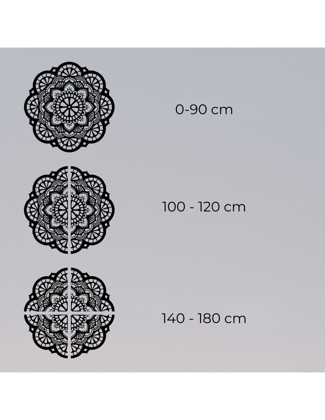 - Od 140 cm do 180 cm - dekorácia je rozrezaná na štyri časti (alebo viac)
