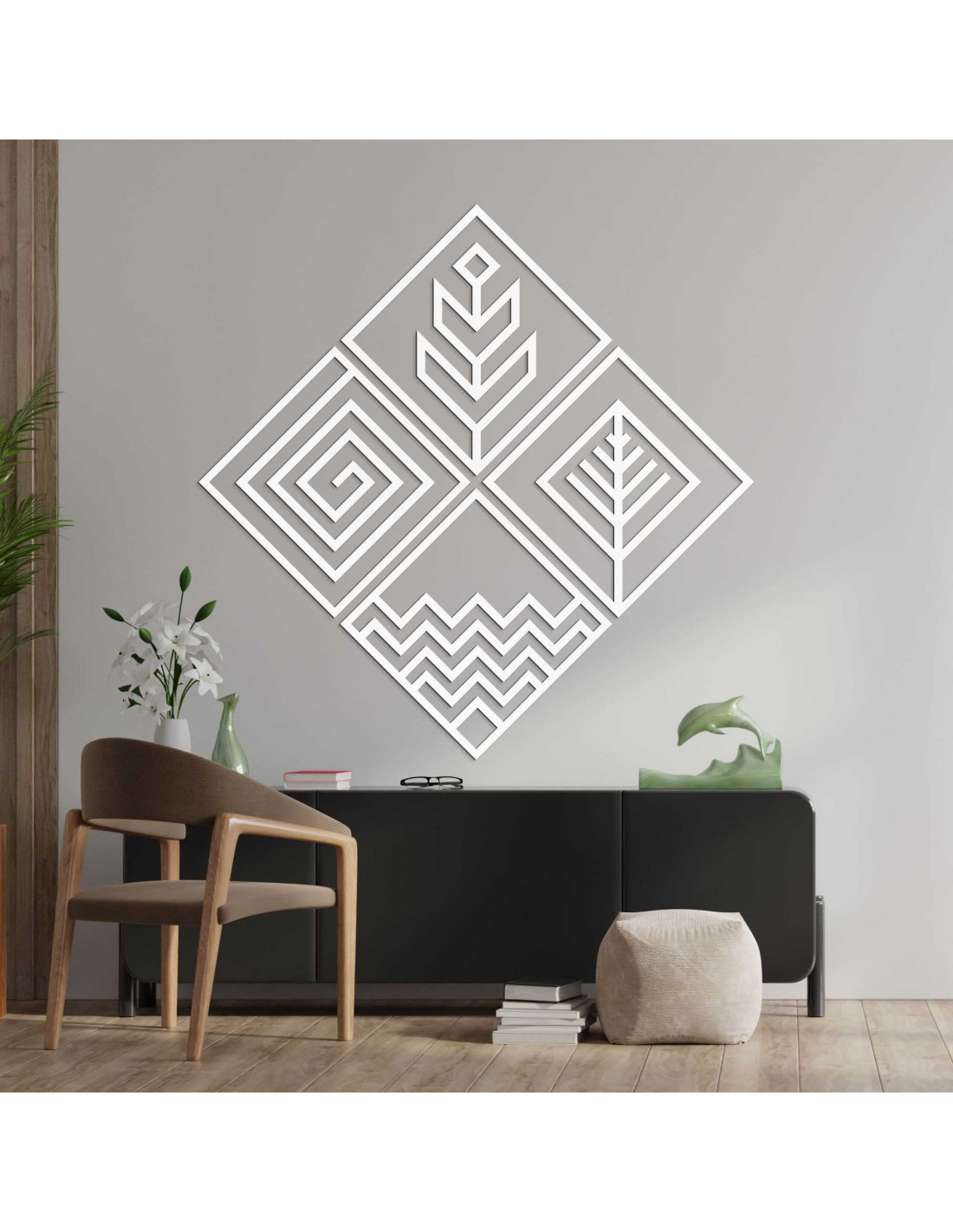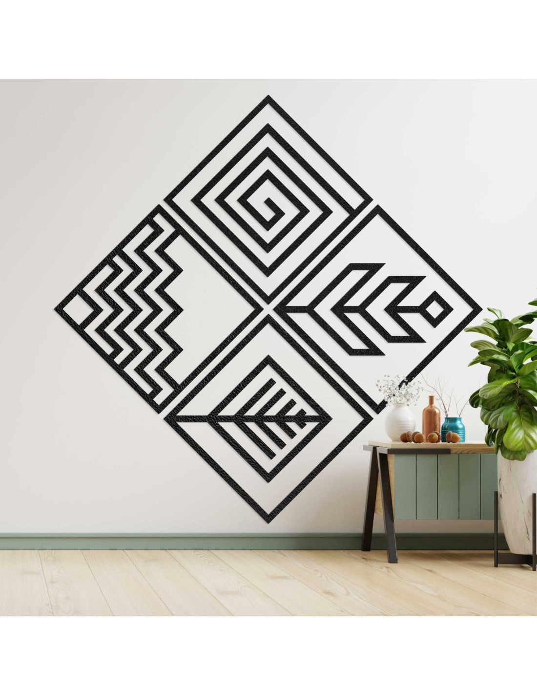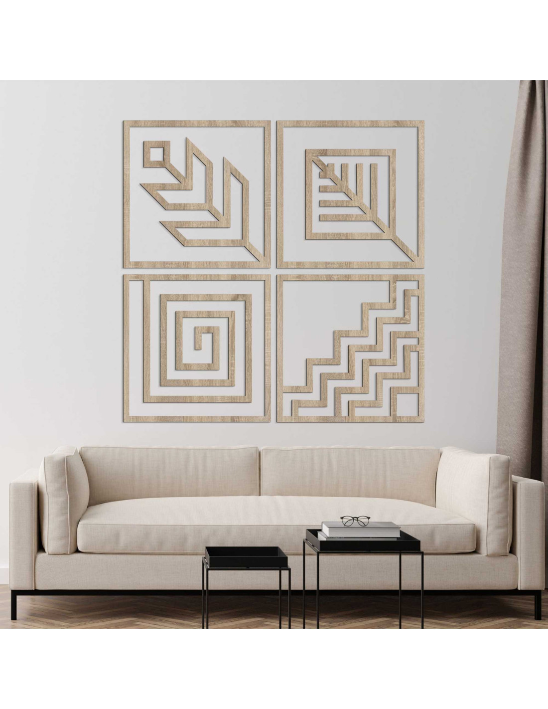 SentopVýrazná hra tvarov prináša silný vizuálny zážitok z obrazu a pozdvihuje atmosféru celého priestoru. Dizajn obrazu vychádza z kombinácie symetrie a moderného minimalizmu, čím osloví milovníkov nadčasovej estetiky. Každý zo štyroch dielov si zachováva vlastnú identitu, no spolu vytvárajú ucelený vizuálny prvok. Výsledkom je dekorácia, ktorá pôsobí sebaisto a elegantne.