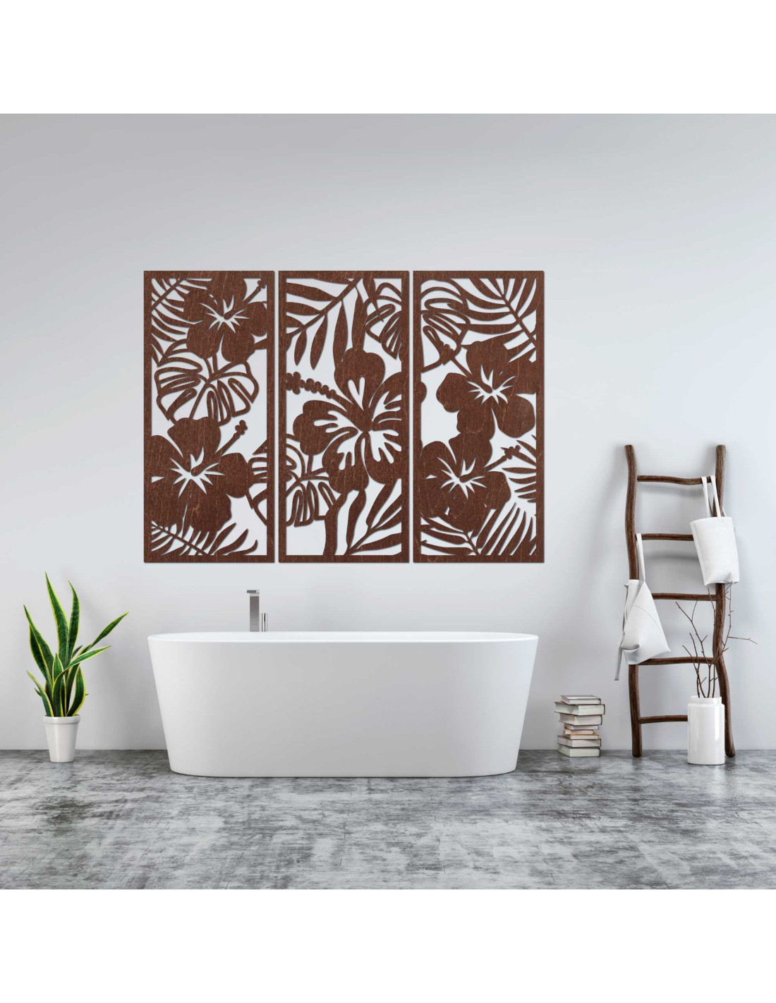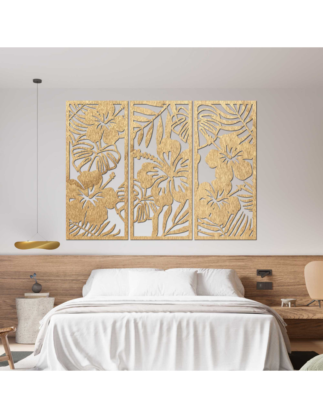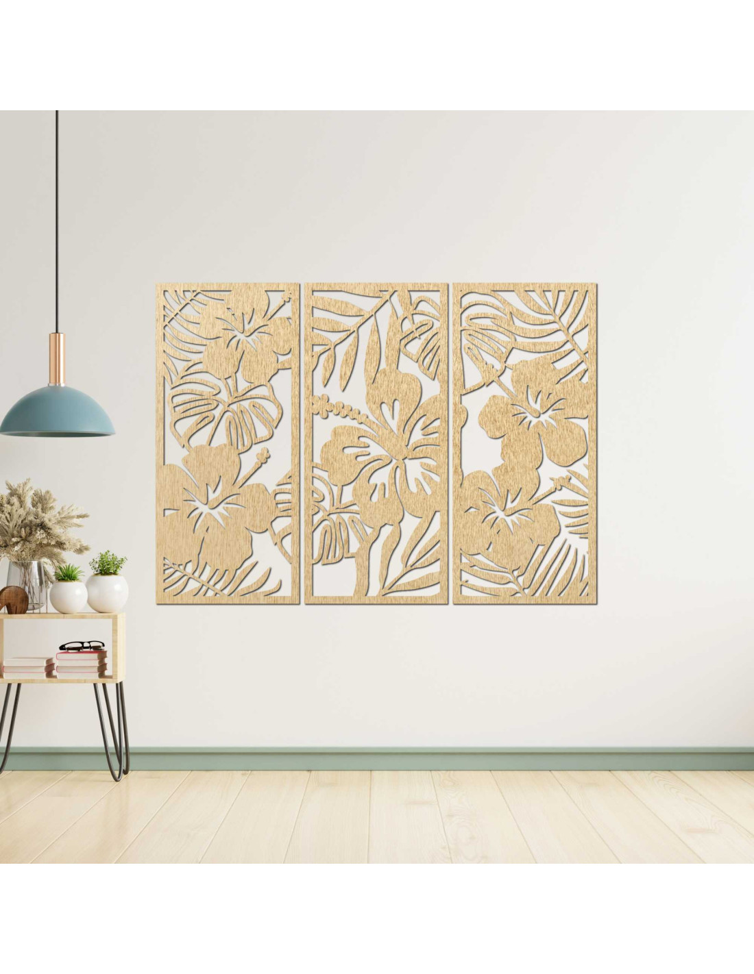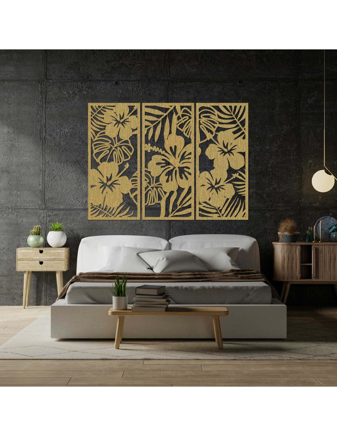 3-dielny drevený obraz Kvet Ibištek - DROBERE