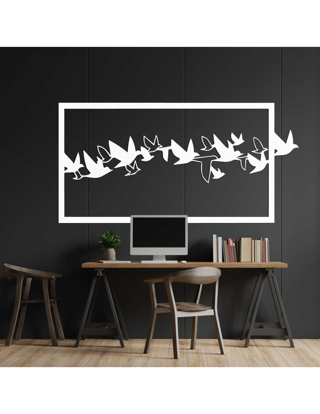 Kompozícia skupiny letiacich vtákov vytvára vizuálnu metaforu jednoty a smerovania. Dizajn sa opiera o kontrast a rytmus, čo mu dodáva výnimočný charakter. Pohyb sa tu stáva centrálnym prvkom, ktorý vťahuje diváka do deja. Čistá forma vyzdvihuje esenciu myšlienky bez vizuálneho rušenia.