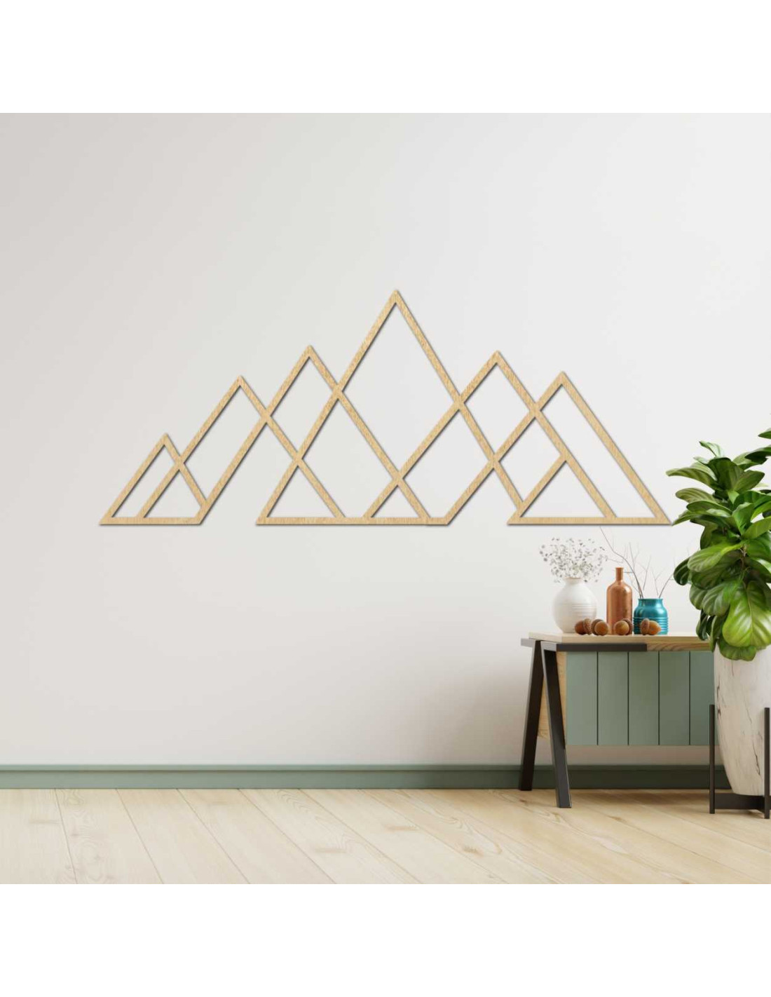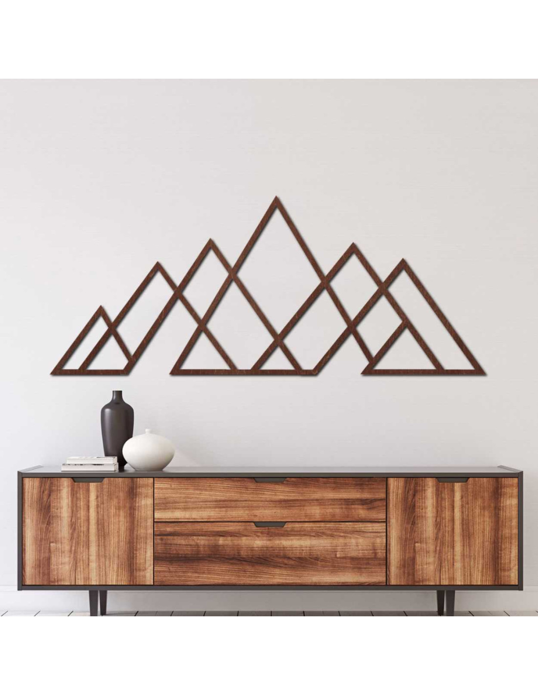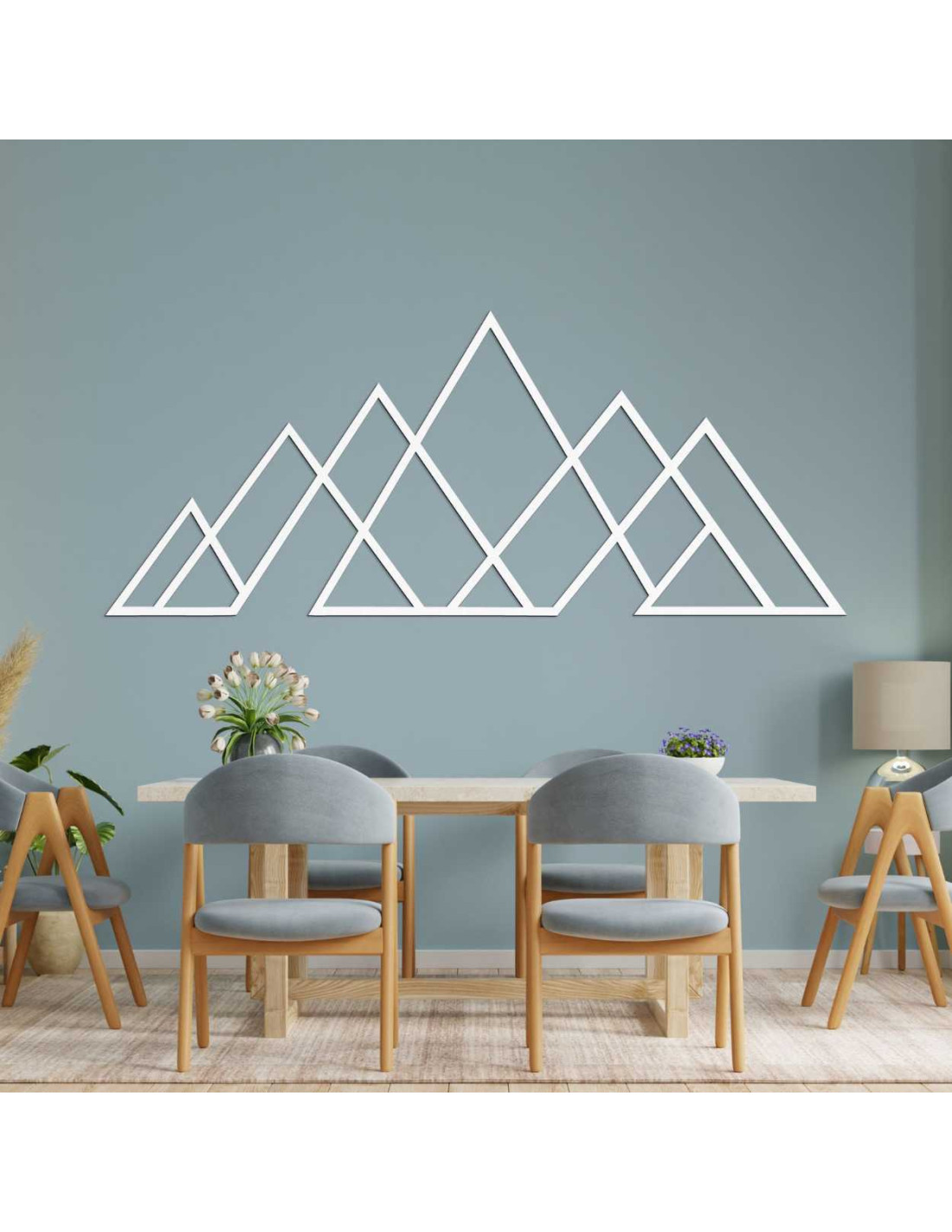 Čisté línie trojuholníkov vytvárajú harmonický horský panoramatický obraz s dôrazom na jednoduchosť.