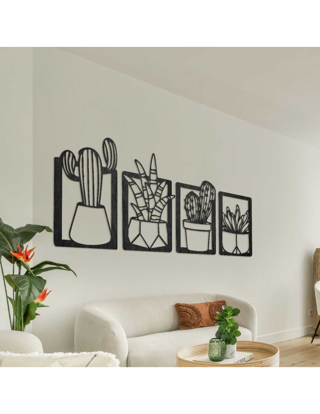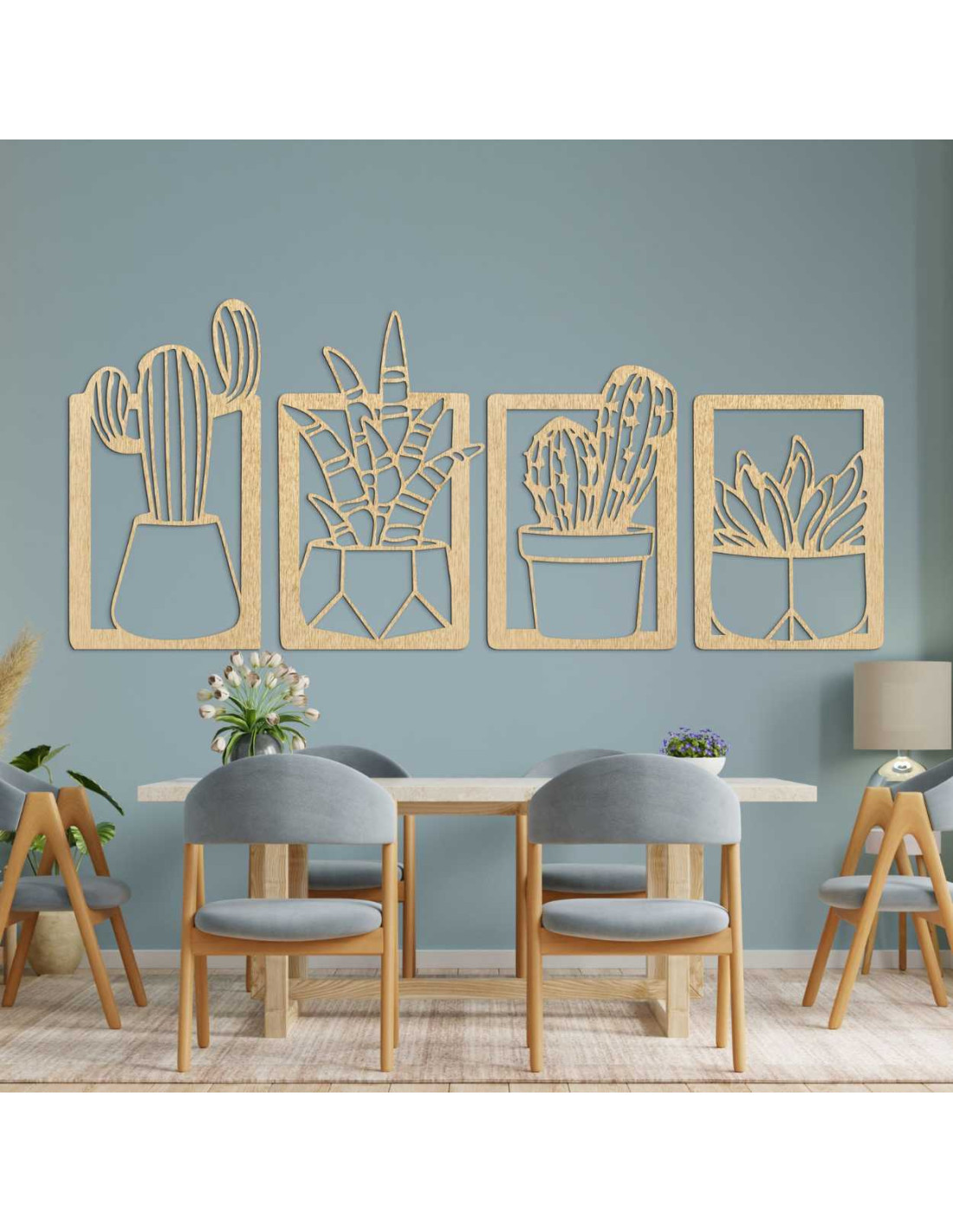 Drevená nástenná dekorácia so vzorom kaktusov a sukulentov oživí každú miestnosť svojím originálnym motívom rastlín.