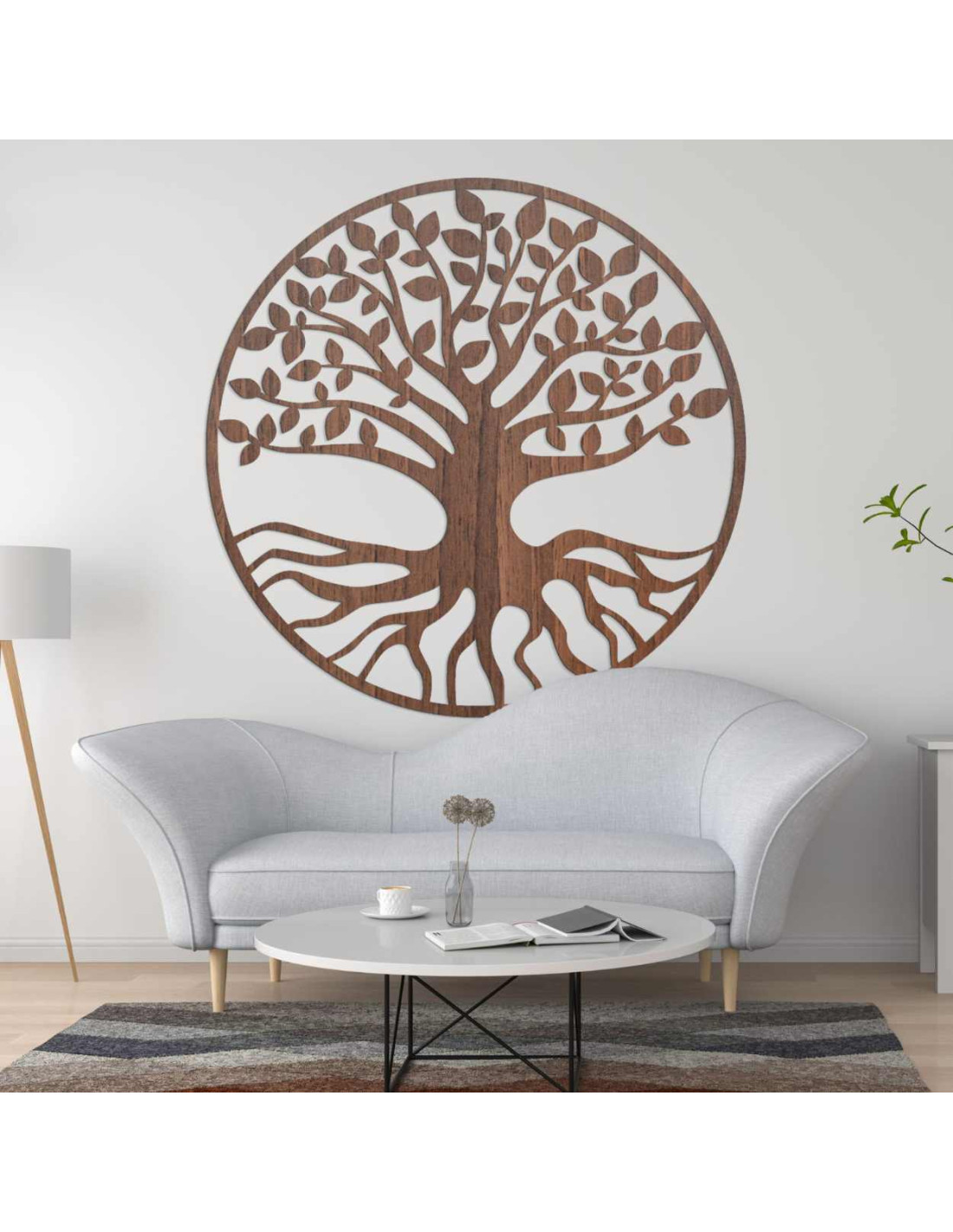 Drevený obraz so stromom života symbolizuje stabilitu, rast a prepojenie s prírodou.