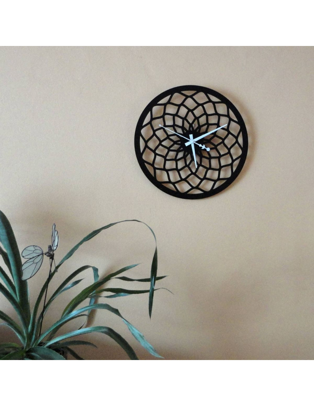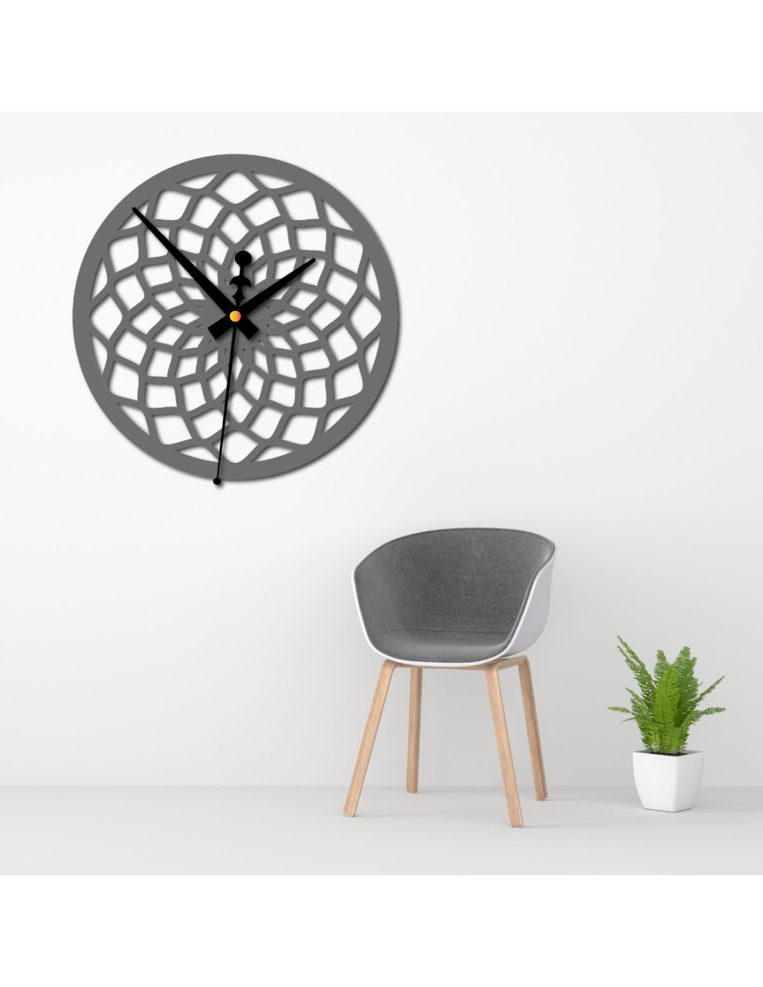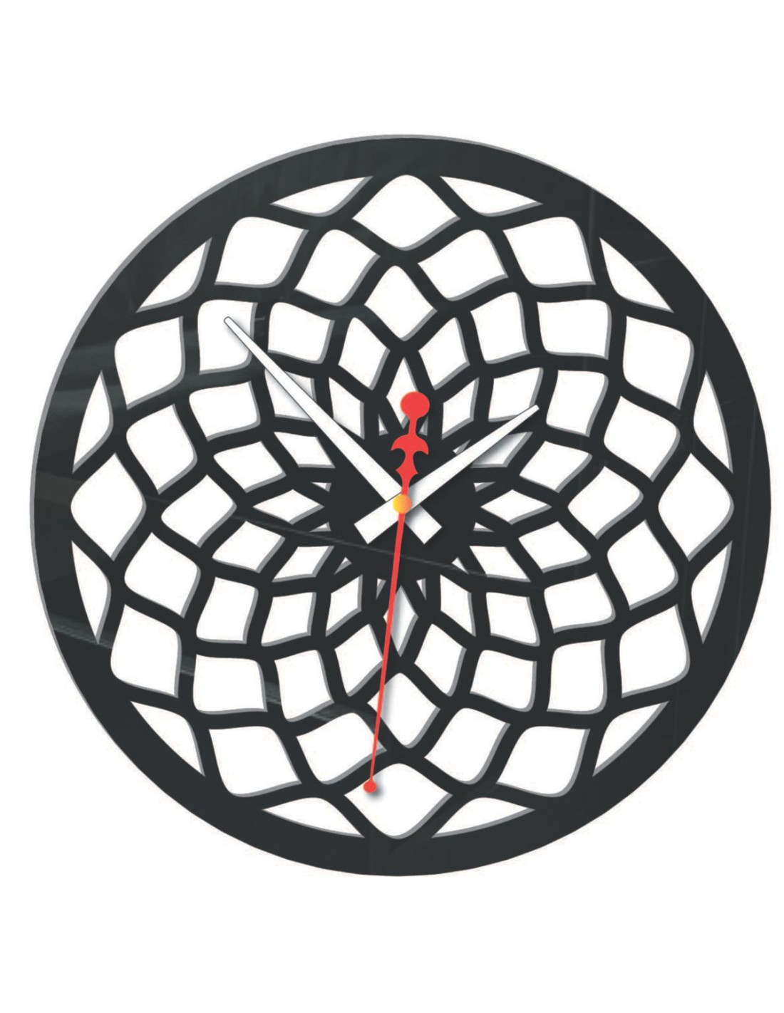 Hodiny majú výrazný vzor, ktorý pripomína abstraktnú mriežku alebo tvarované lúče, čím sa stávajú výrazným dekoratívnym prvkom v každom interiéri.