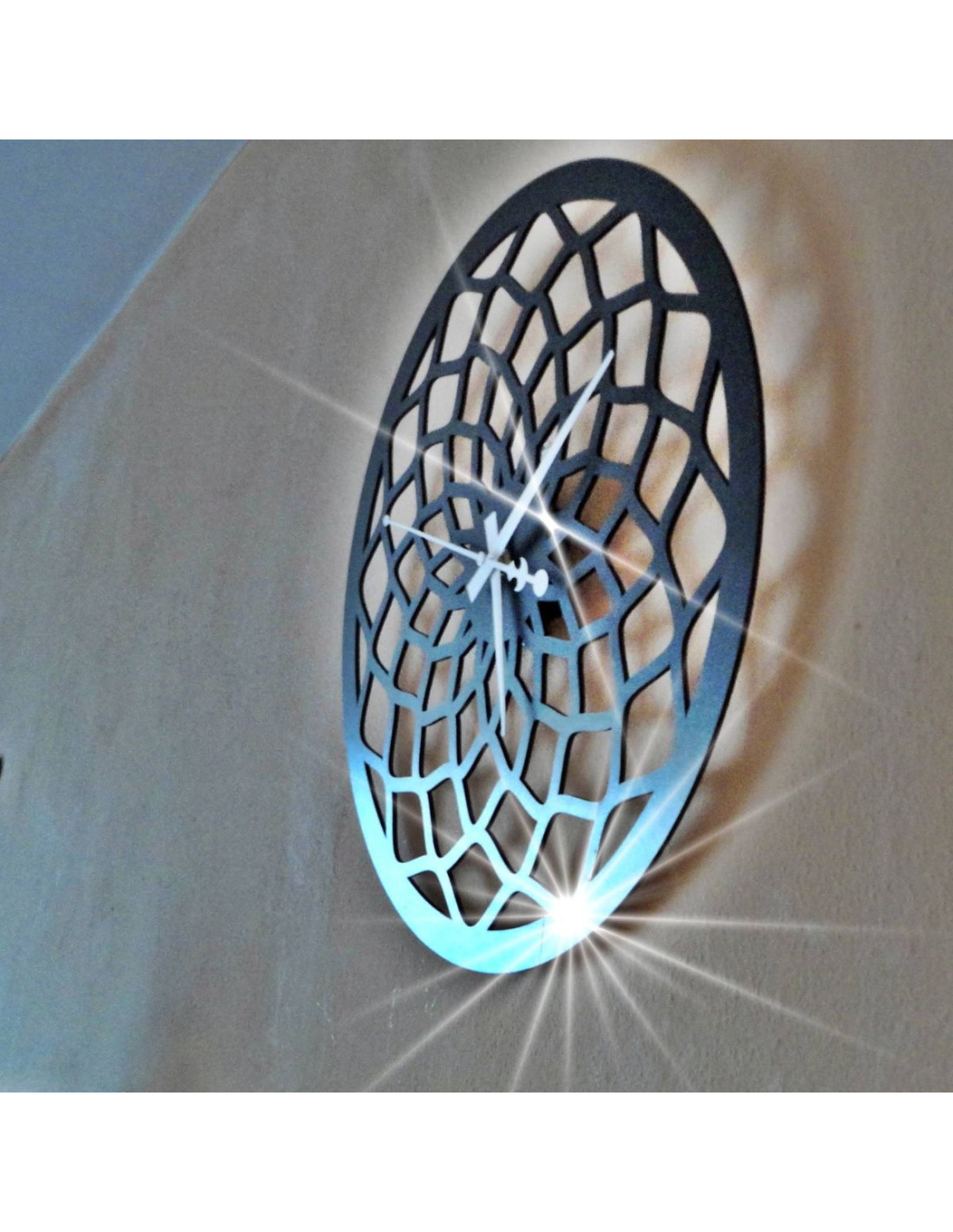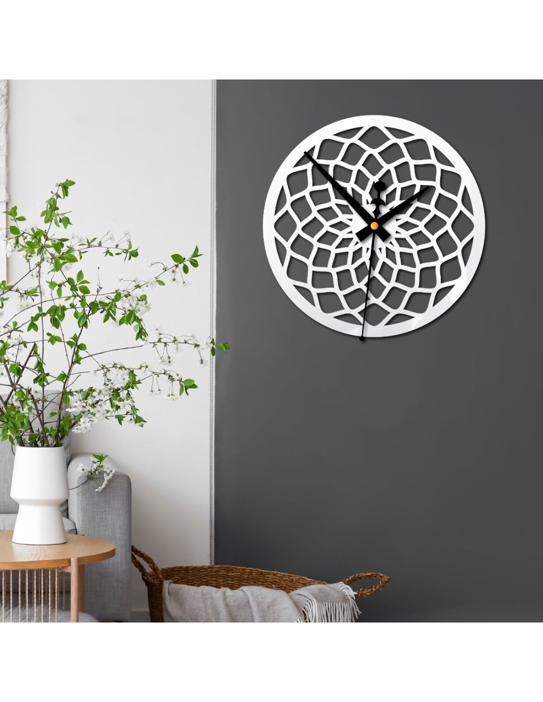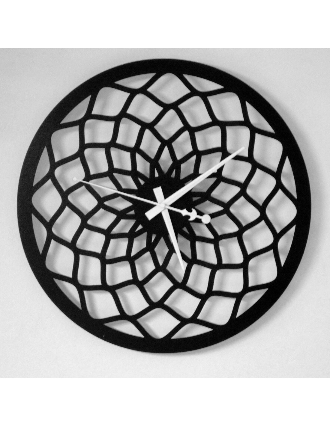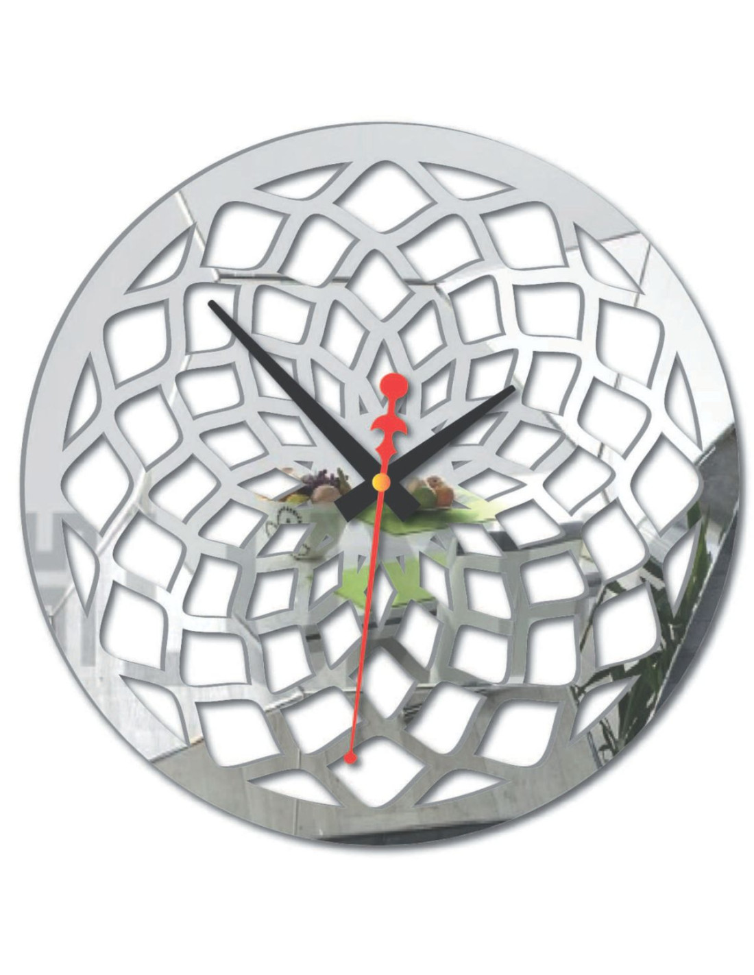 Hodiny majú výrazný vzor, ktorý pripomína abstraktnú mriežku alebo tvarované lúče, čím sa stávajú výrazným dekoratívnym prvkom v každom interiéri.