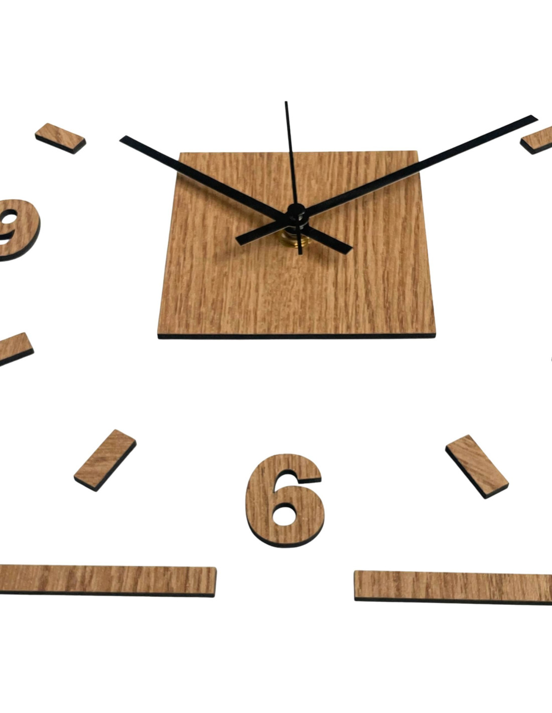 Stred hodín zvýrazňuje dubový štvorec, z ktorého vychádzajú čierne, alebo strieborné ručičky pre dokonalý kontrast a čitateľnosť.